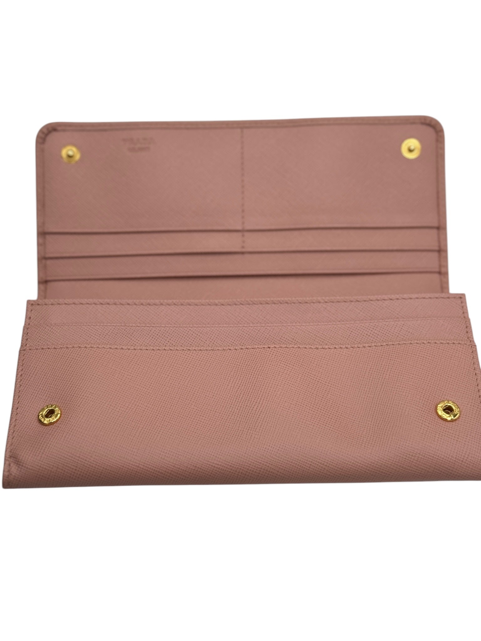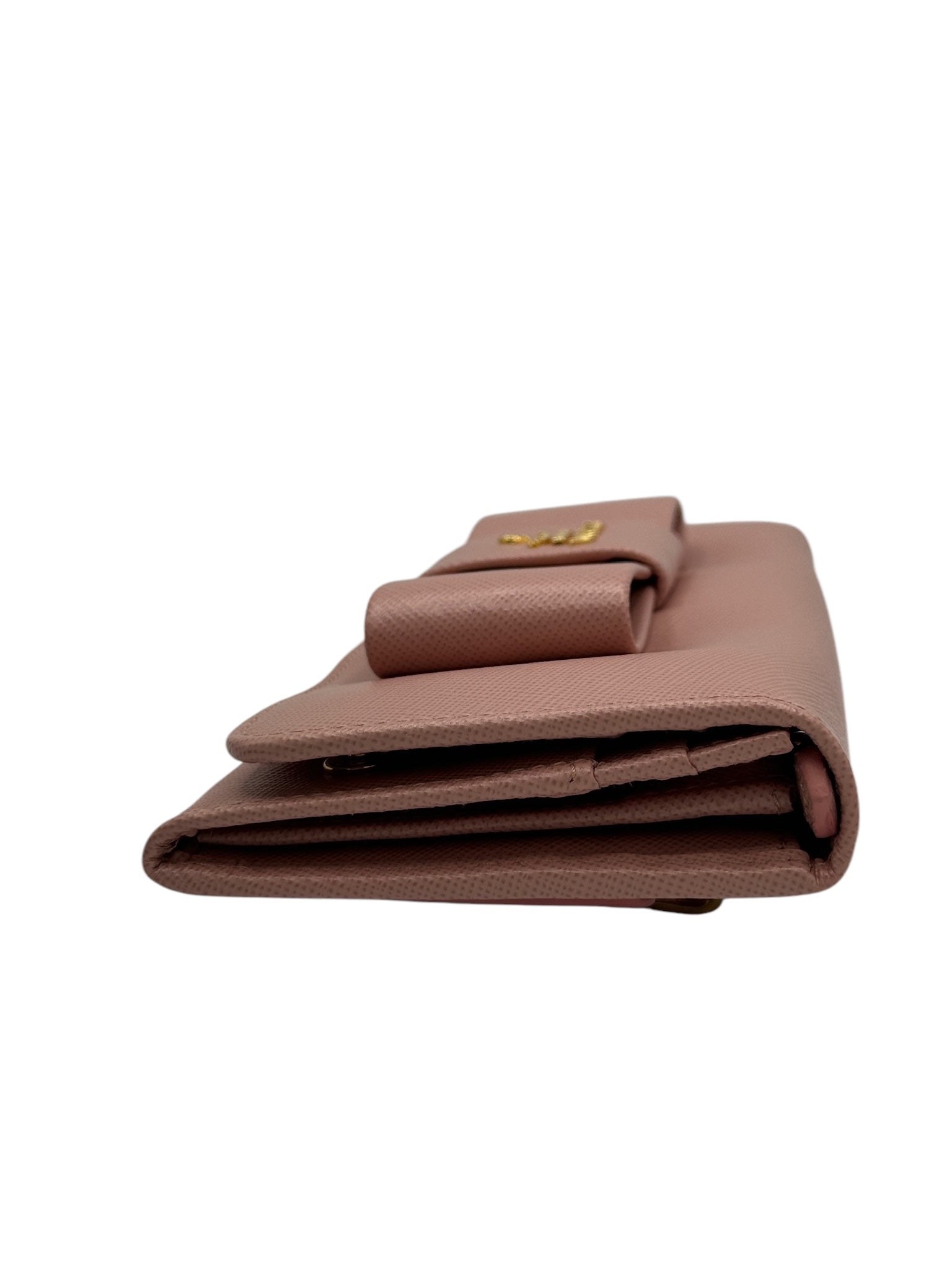 PRE-OWNED Pink Saffiano Bow Continental Wallet
