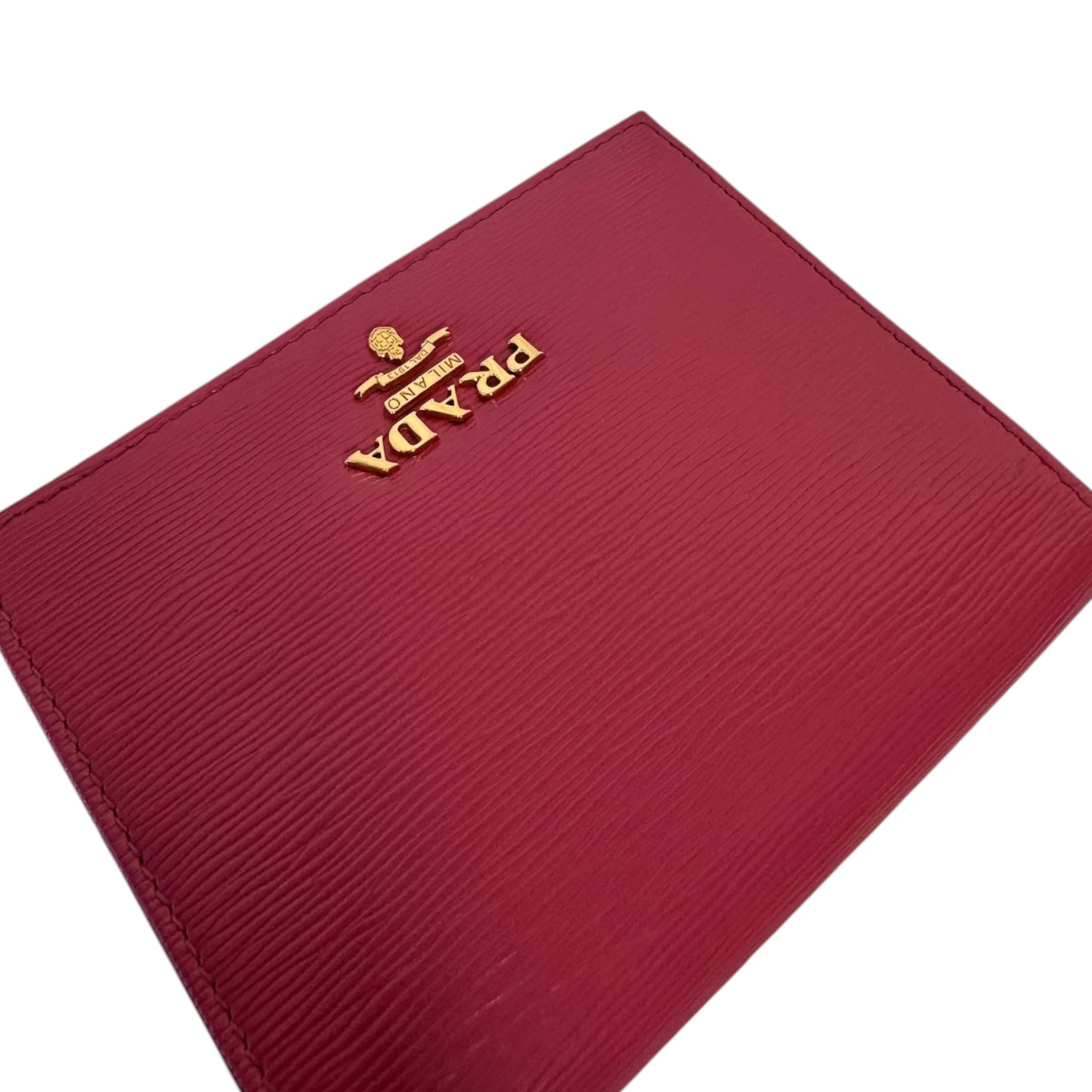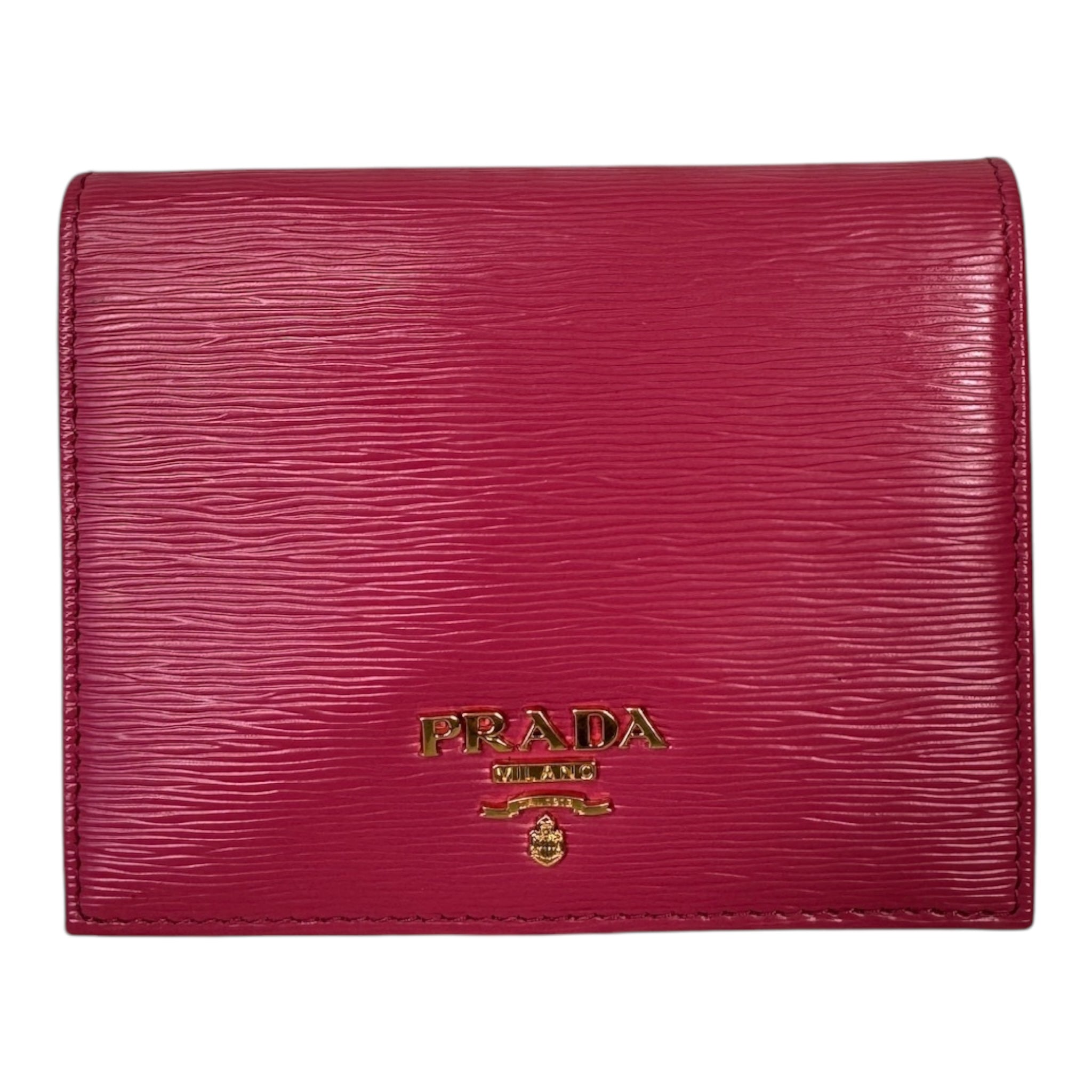 Elevate your accessory game with the PRADA Pink Saffiano Leather Bi-Fold Wallet, where luxury meets functionality.