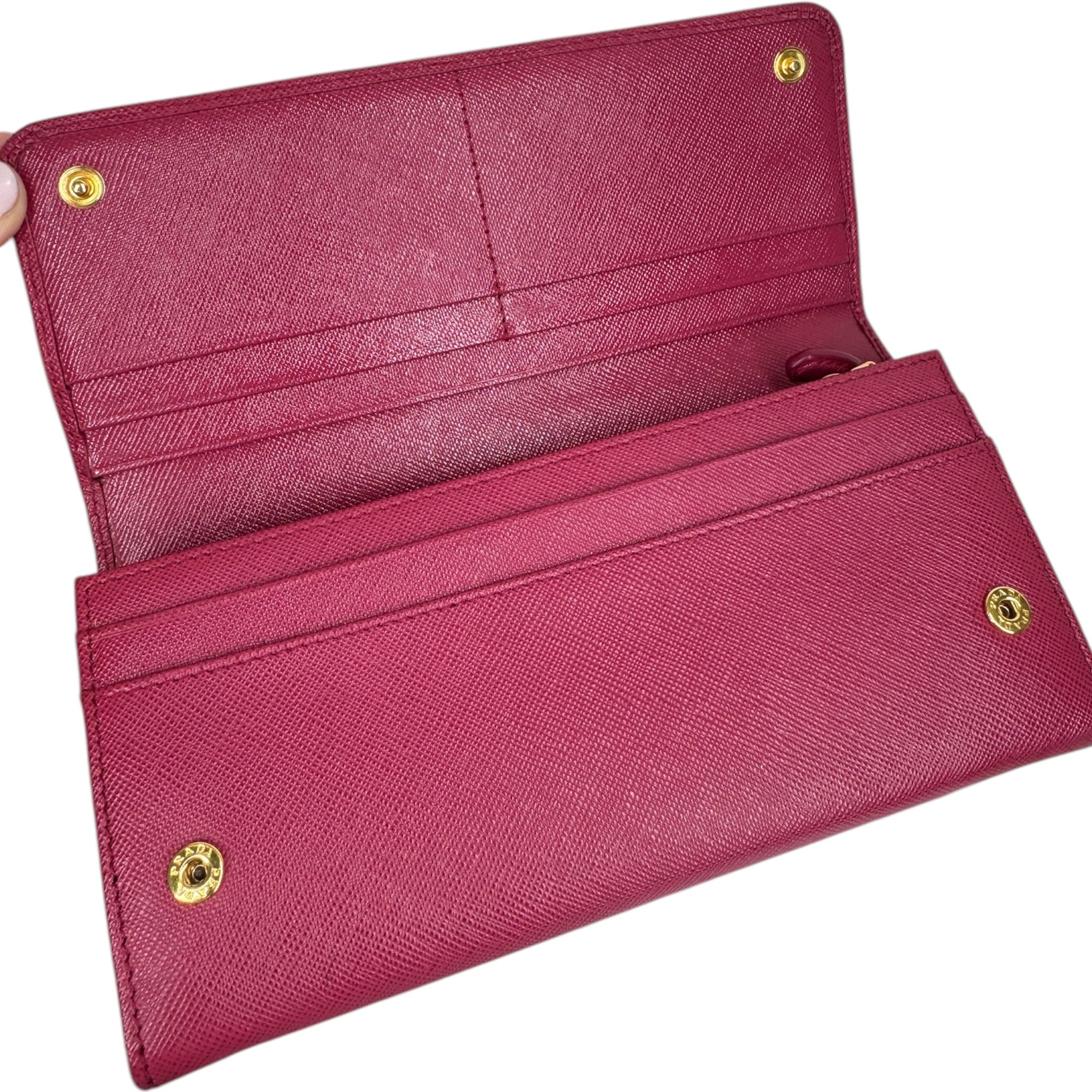 - Premium Leather Material: Crafted from high-quality pink Saffiano leather, this wallet offers a luxurious feel and a sophisticated look.