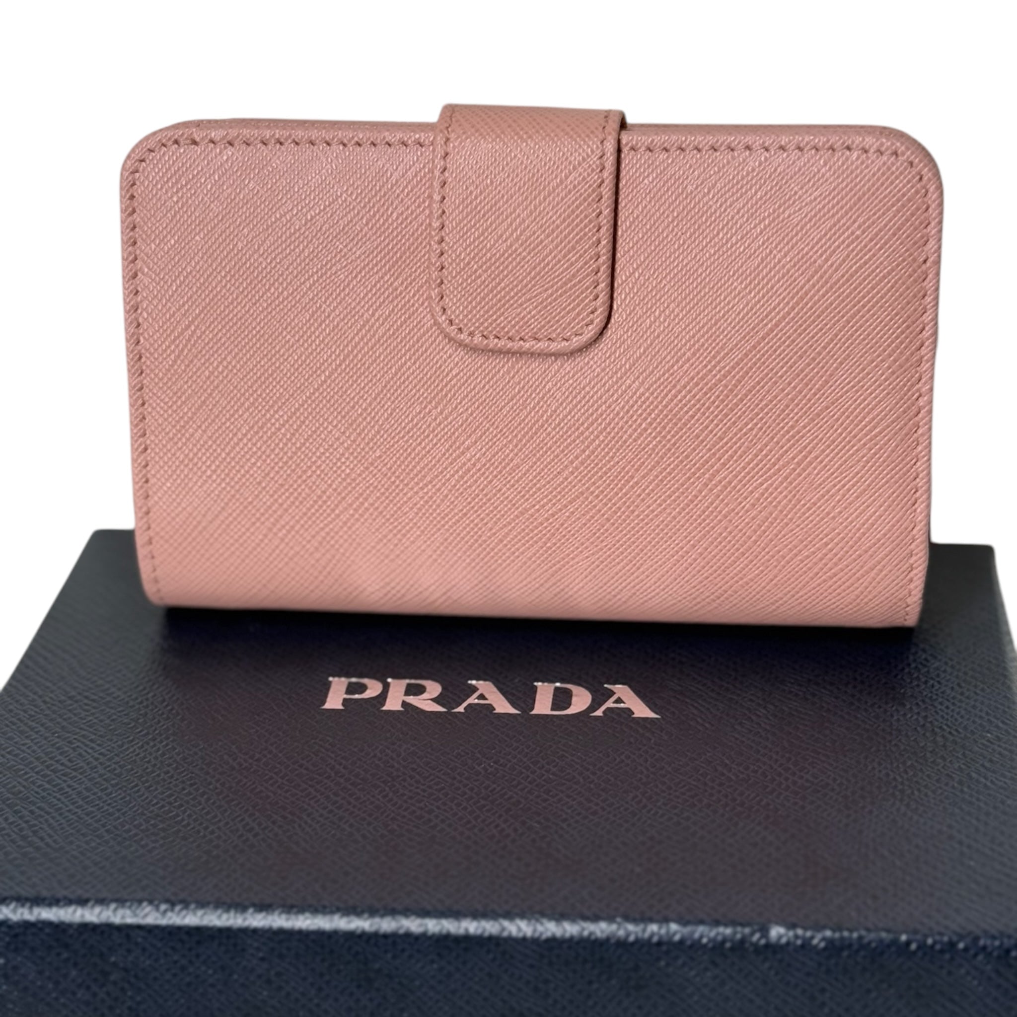 PRE-OWNED Pink Saffiano Leather Short Wallet