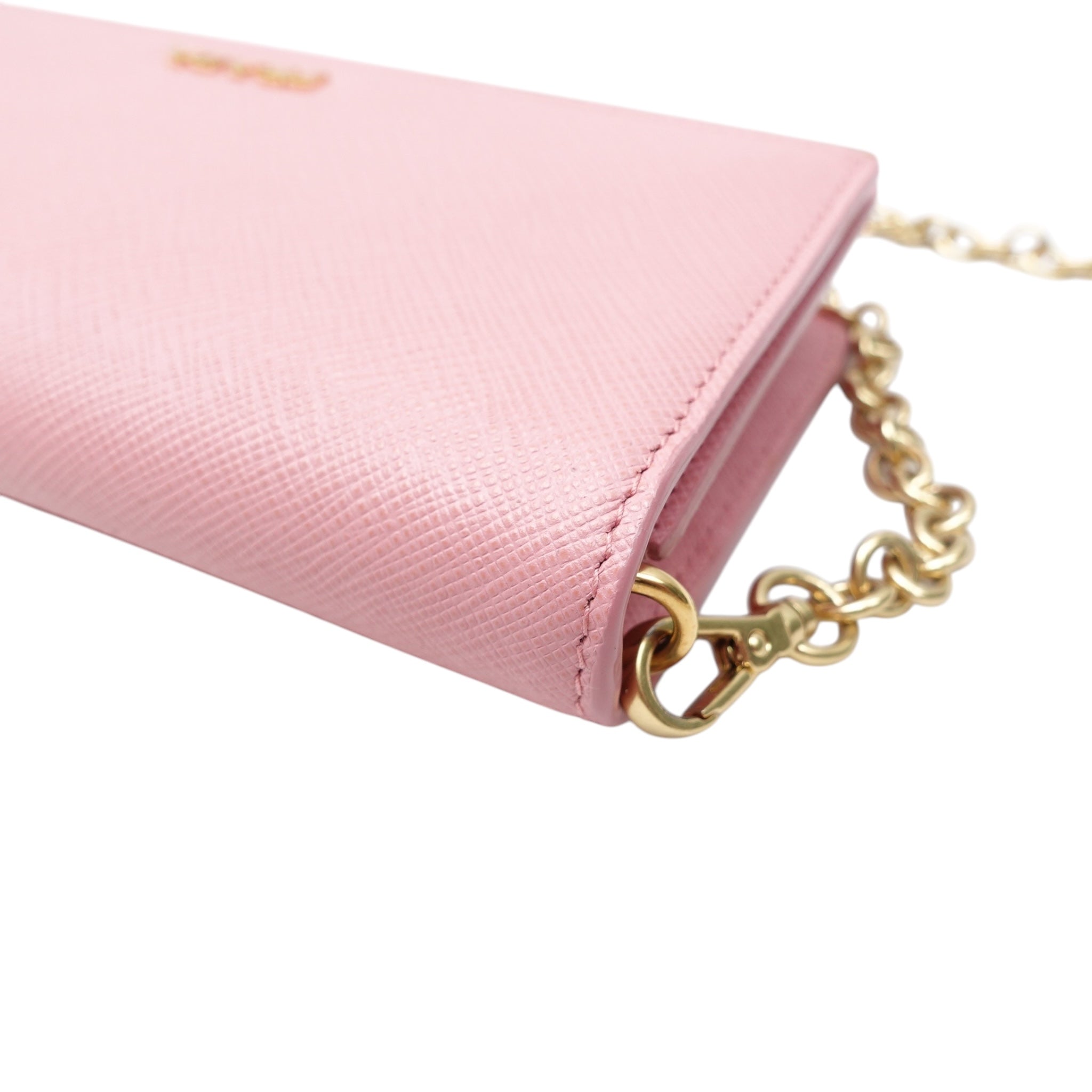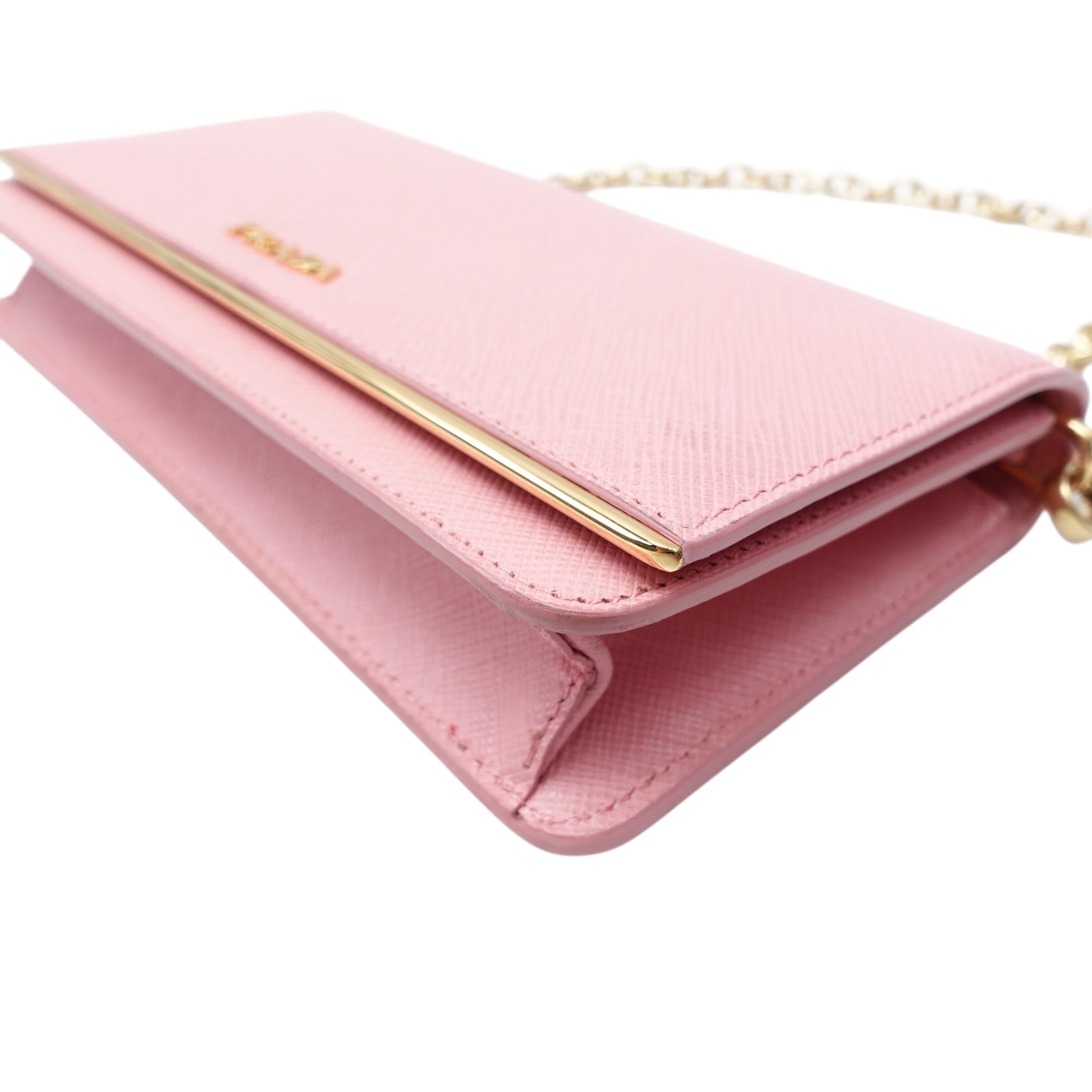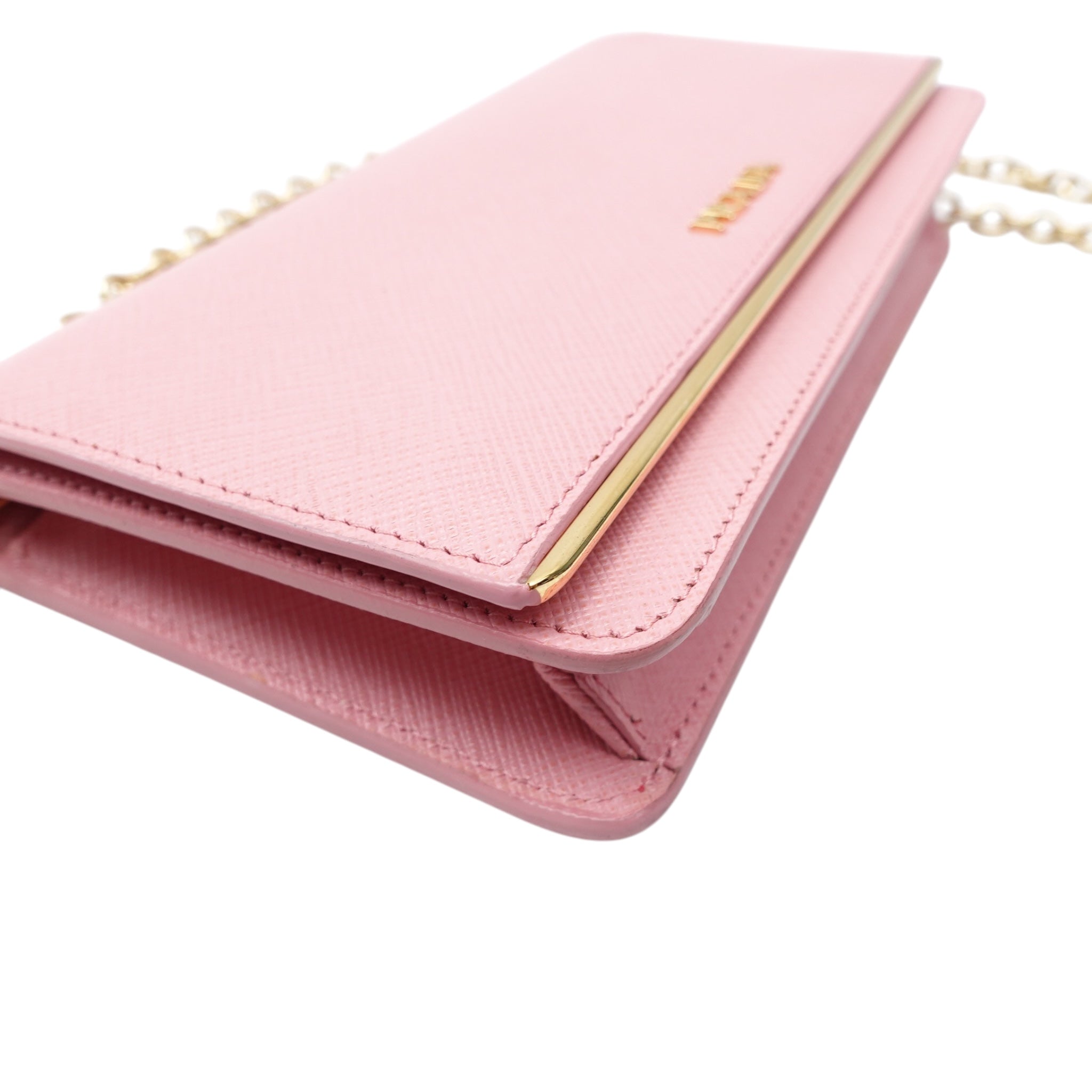 Elevate your accessory game with the PRADA Pink Saffiano Leather Wallet on Chain, where style meets functionality.
