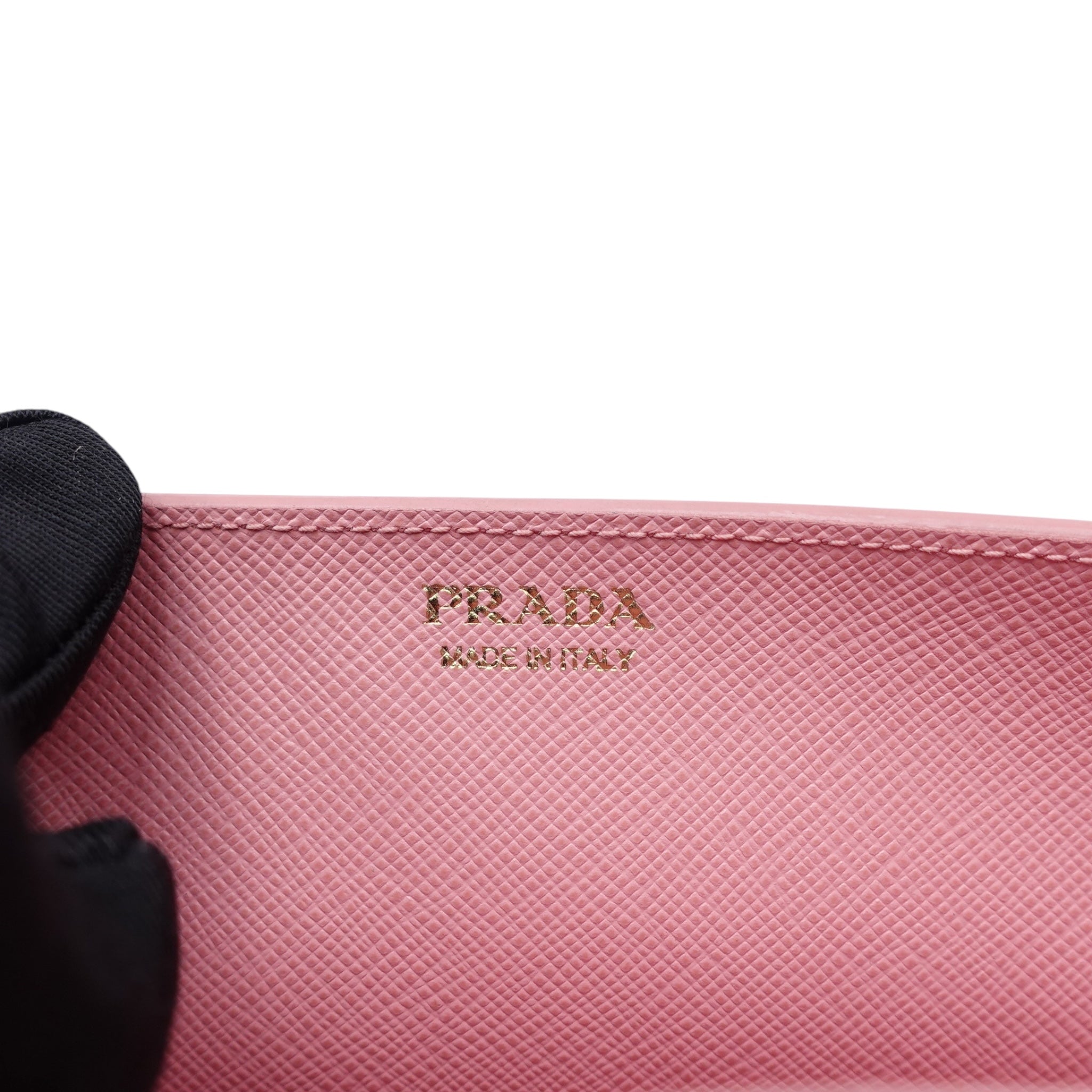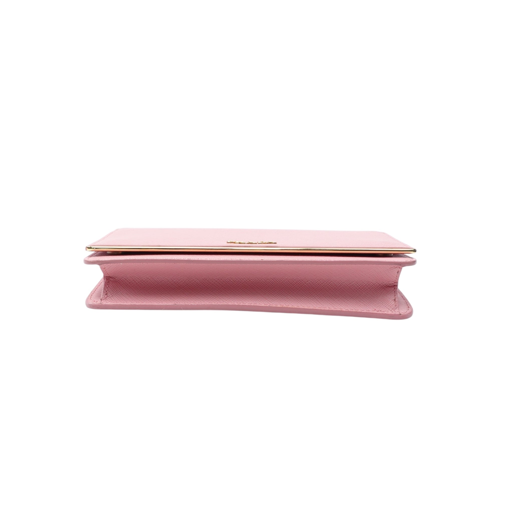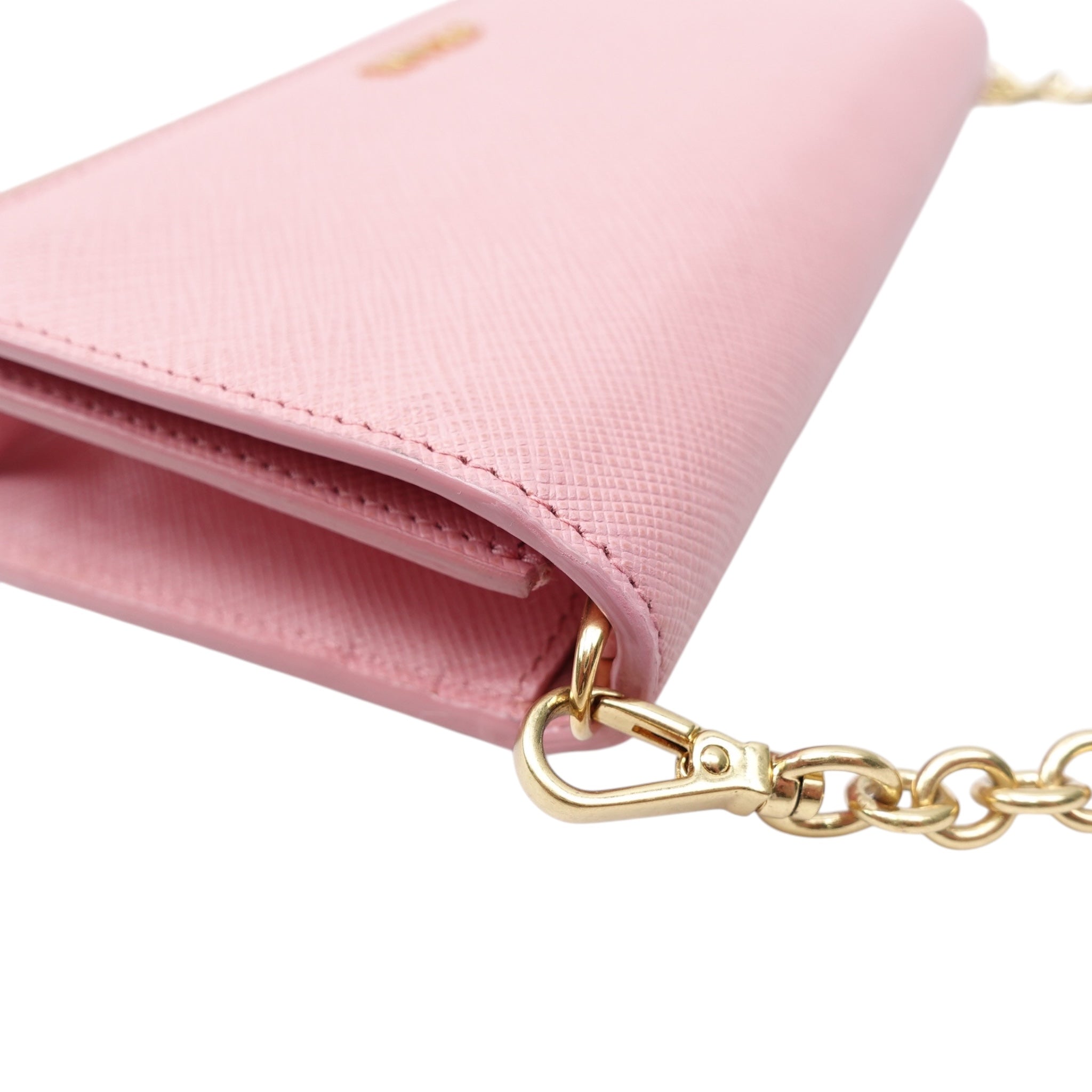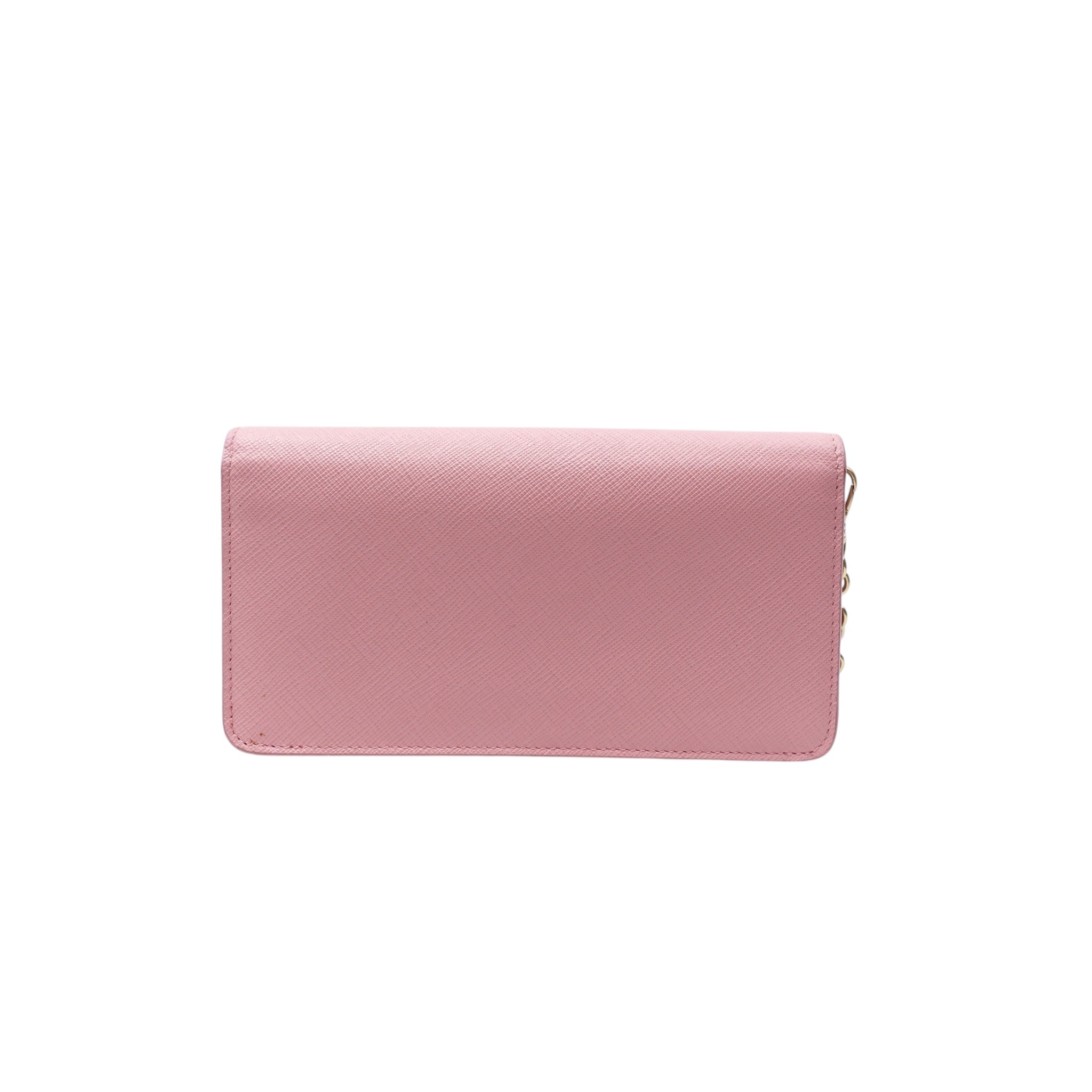 PRE-OWNED Pink Saffiano Leather Wallet on Chain