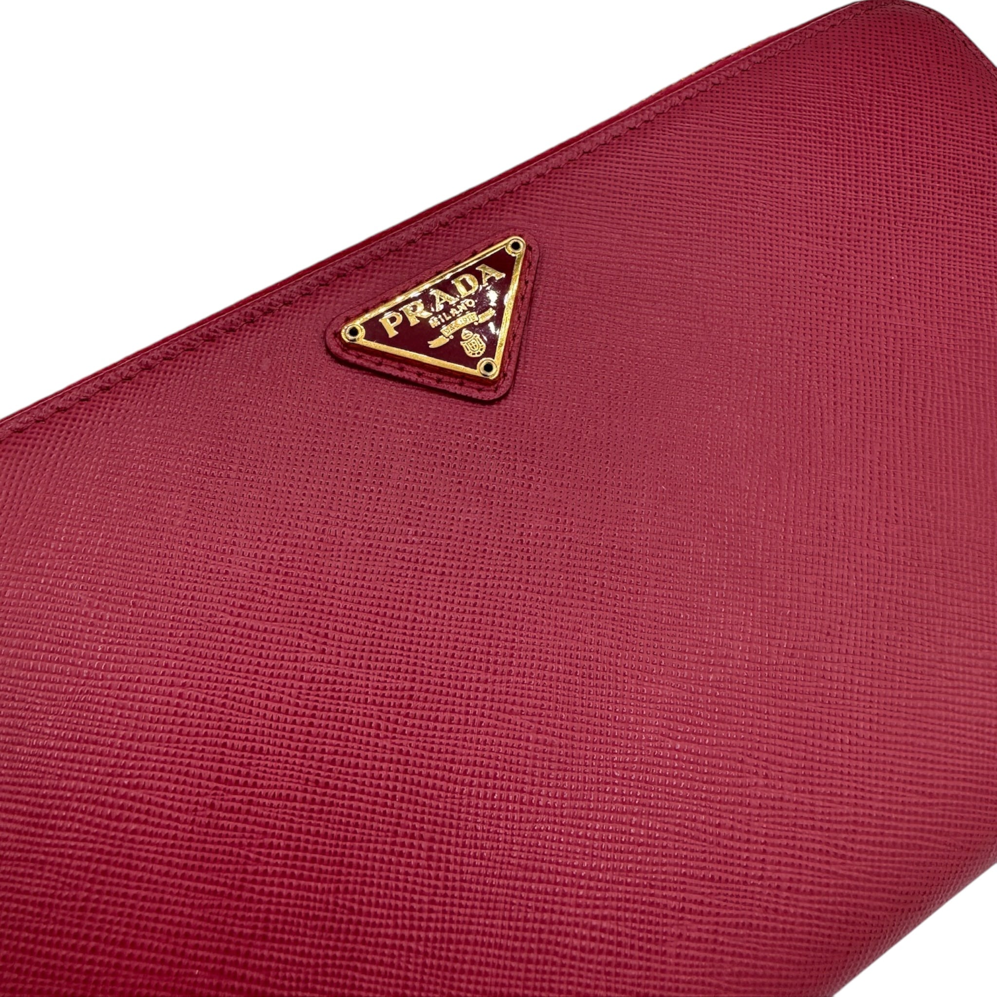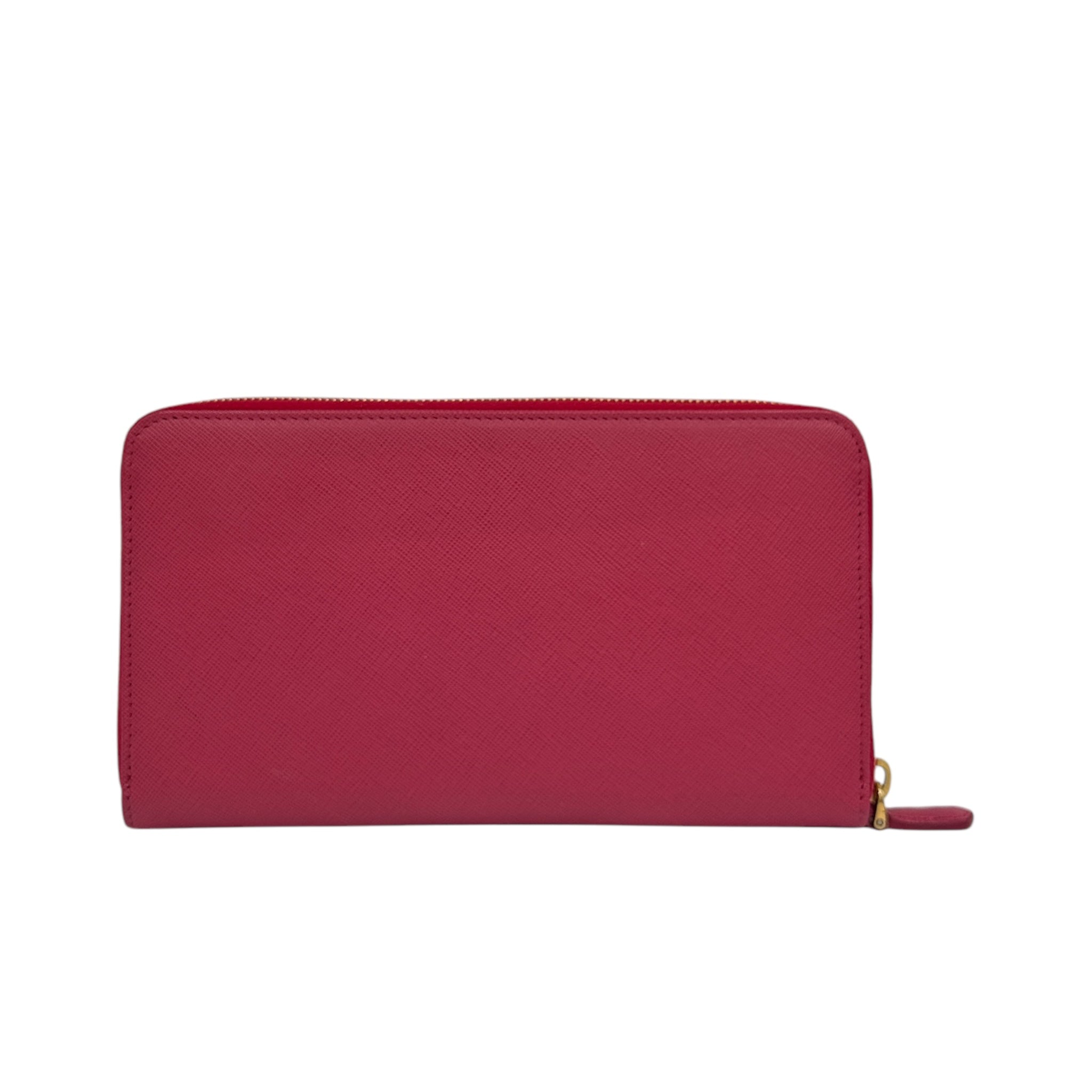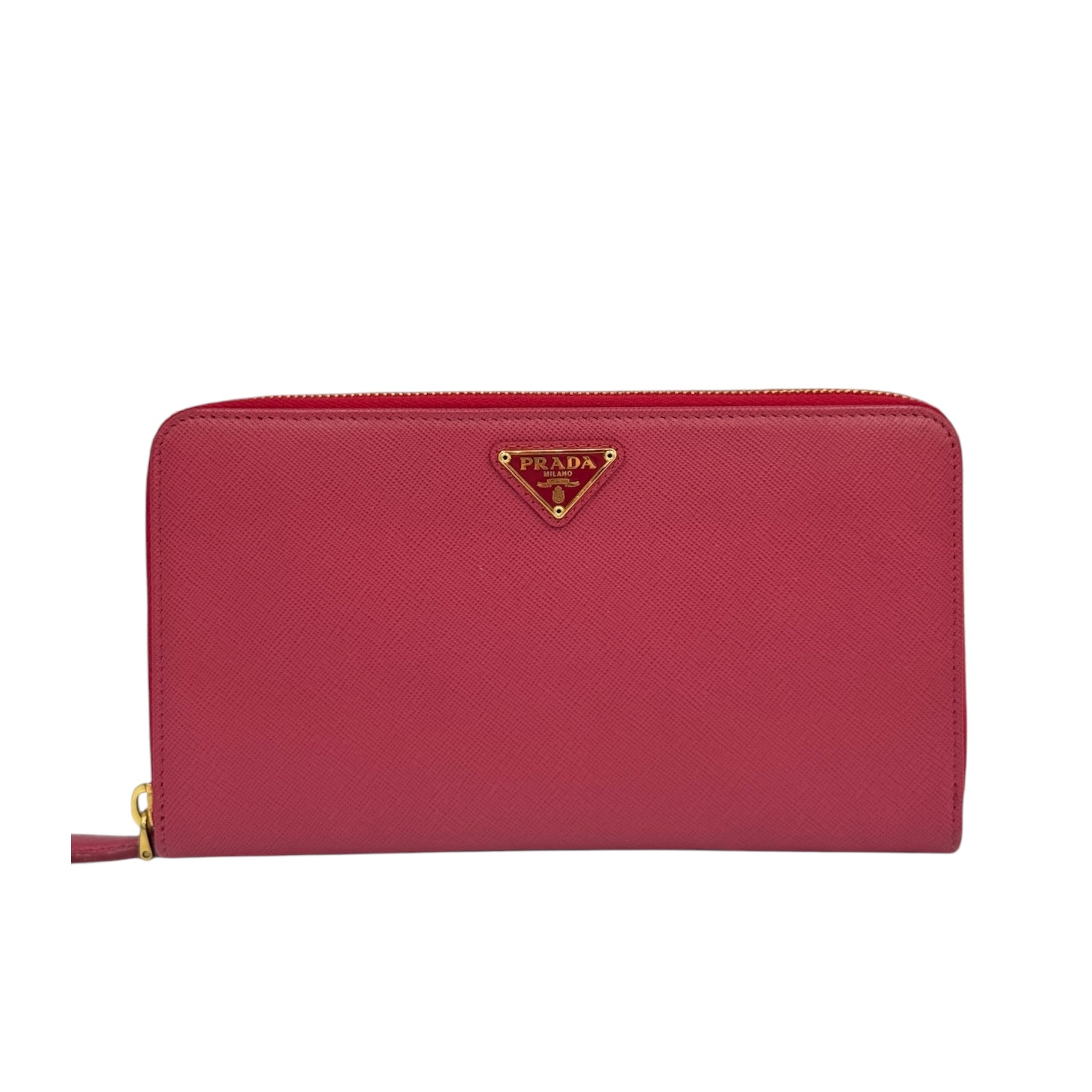 Elevate your accessory game with the PRADA Pink Safiiano Zippy Long Wallet, a must-have for any fashion-forward individual.