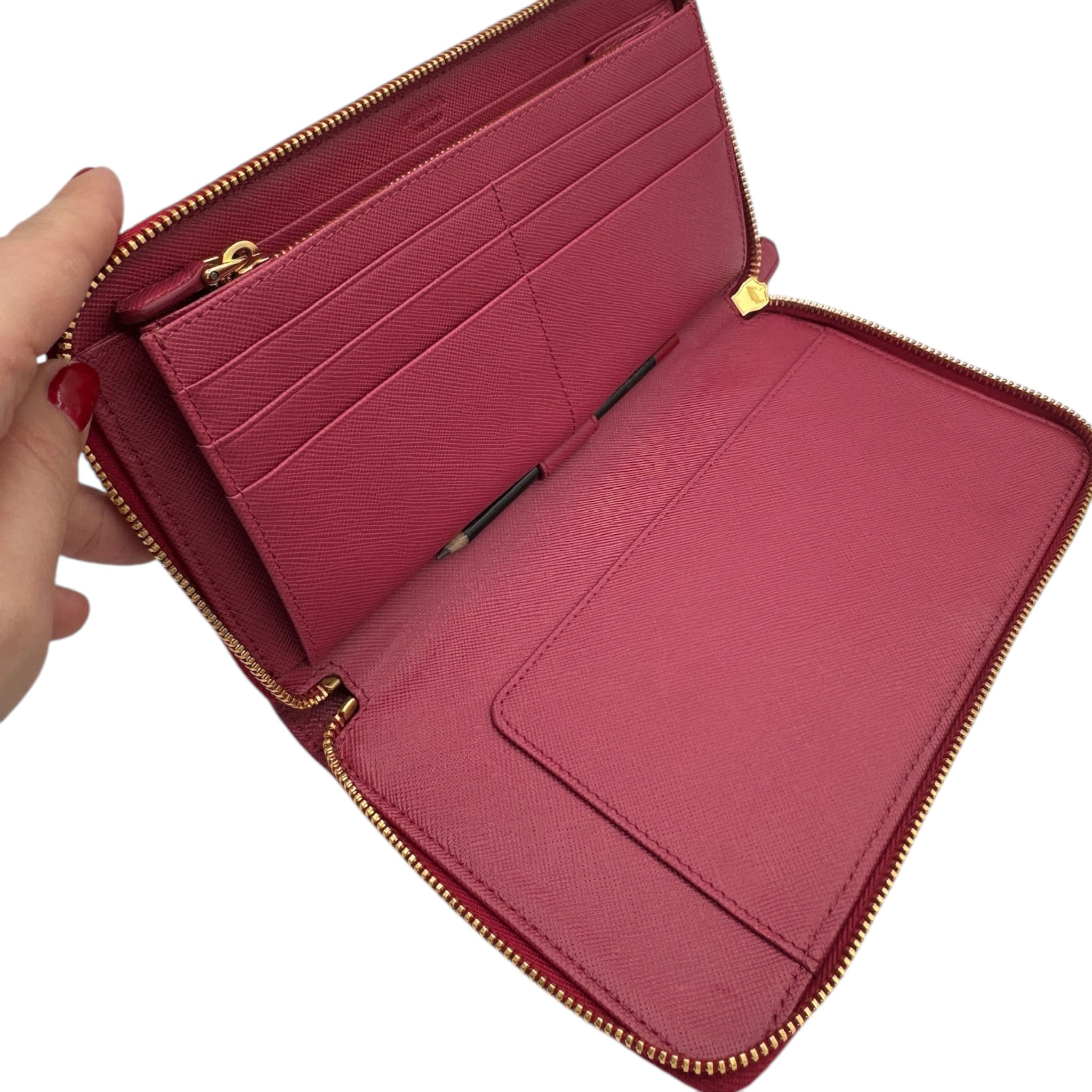 PRE-OWNED Pink Saffiano Zippy Organizer Long Wallet
