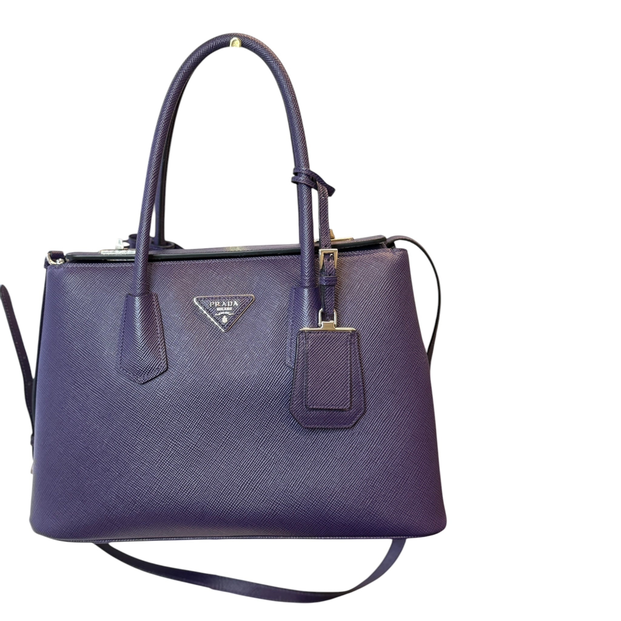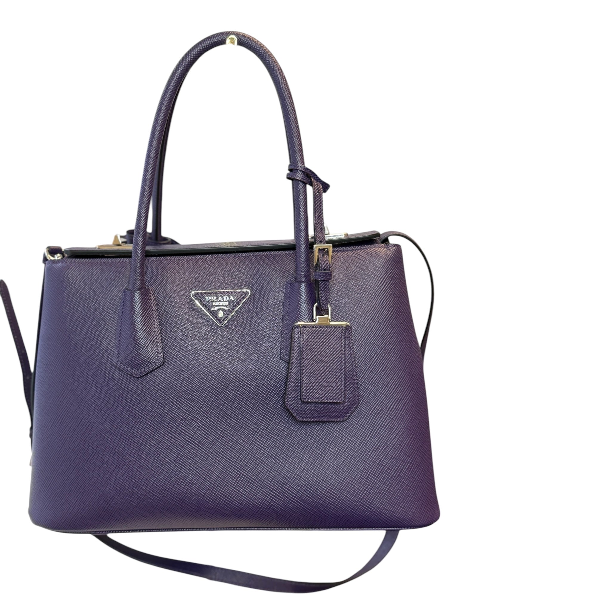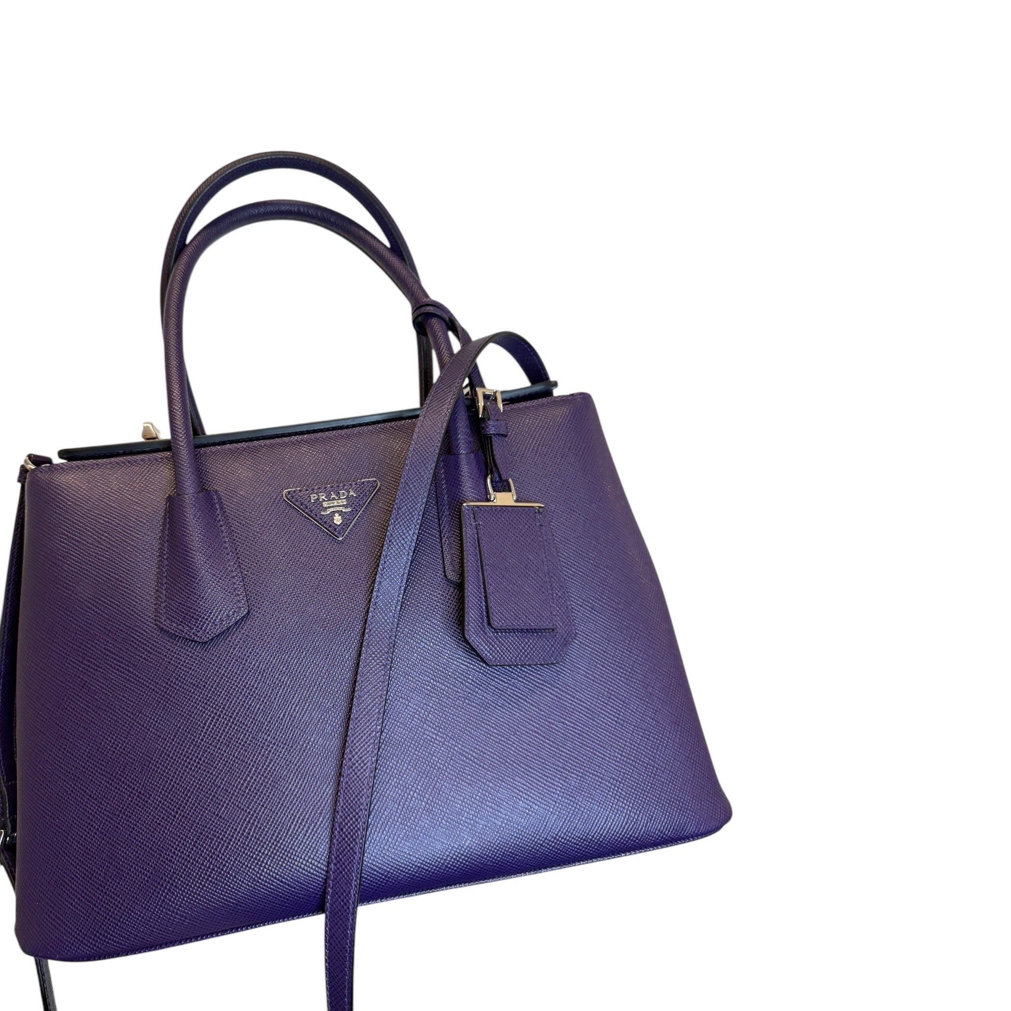 Elevate your style with our PRE-OWNED Purple Saffianno Cuir Tote, complete with sleek silver toned hardware. Perfect for any occasion, this bag adds a touch of glamour and sophistication to any outfit. Make a statement with this luxurious accessory!