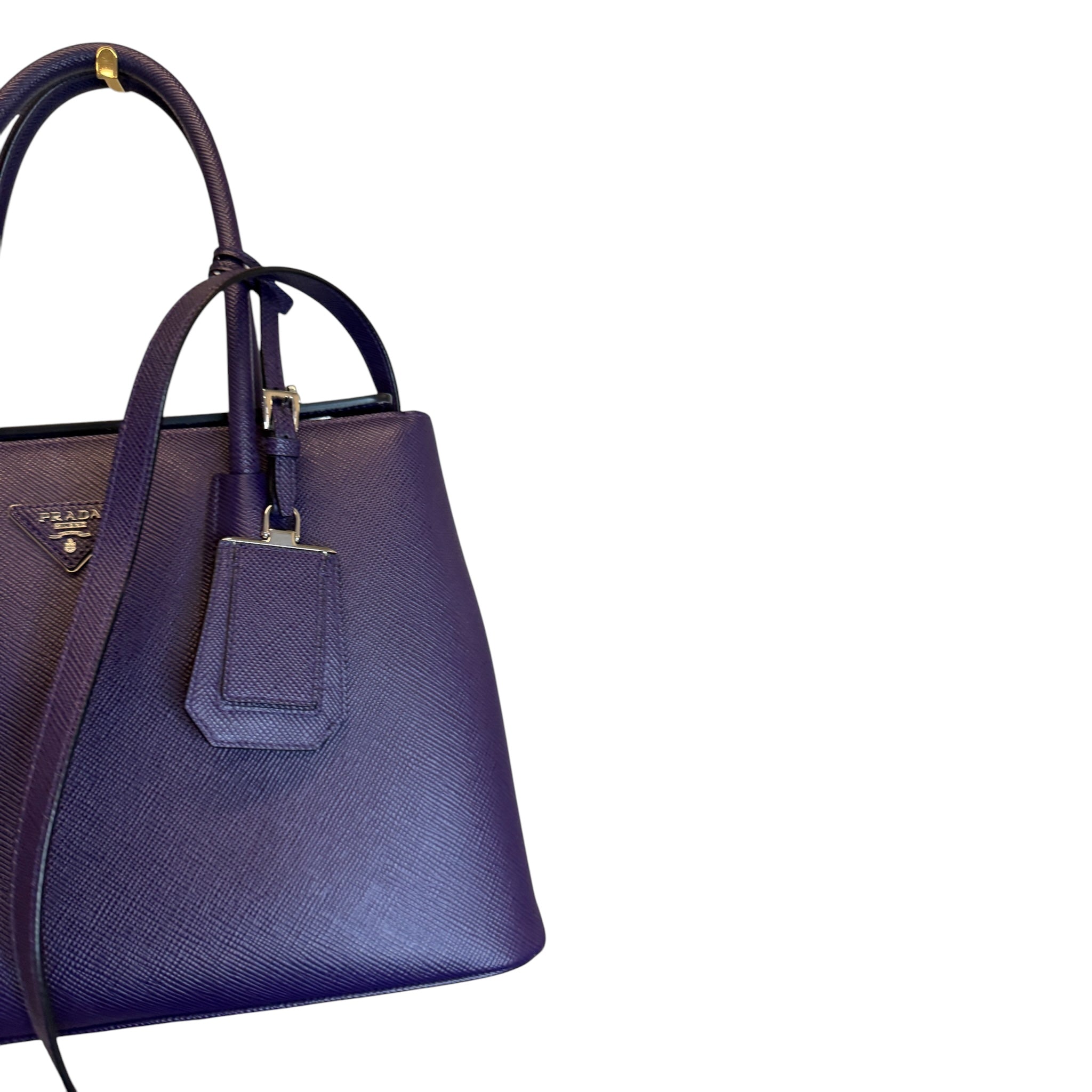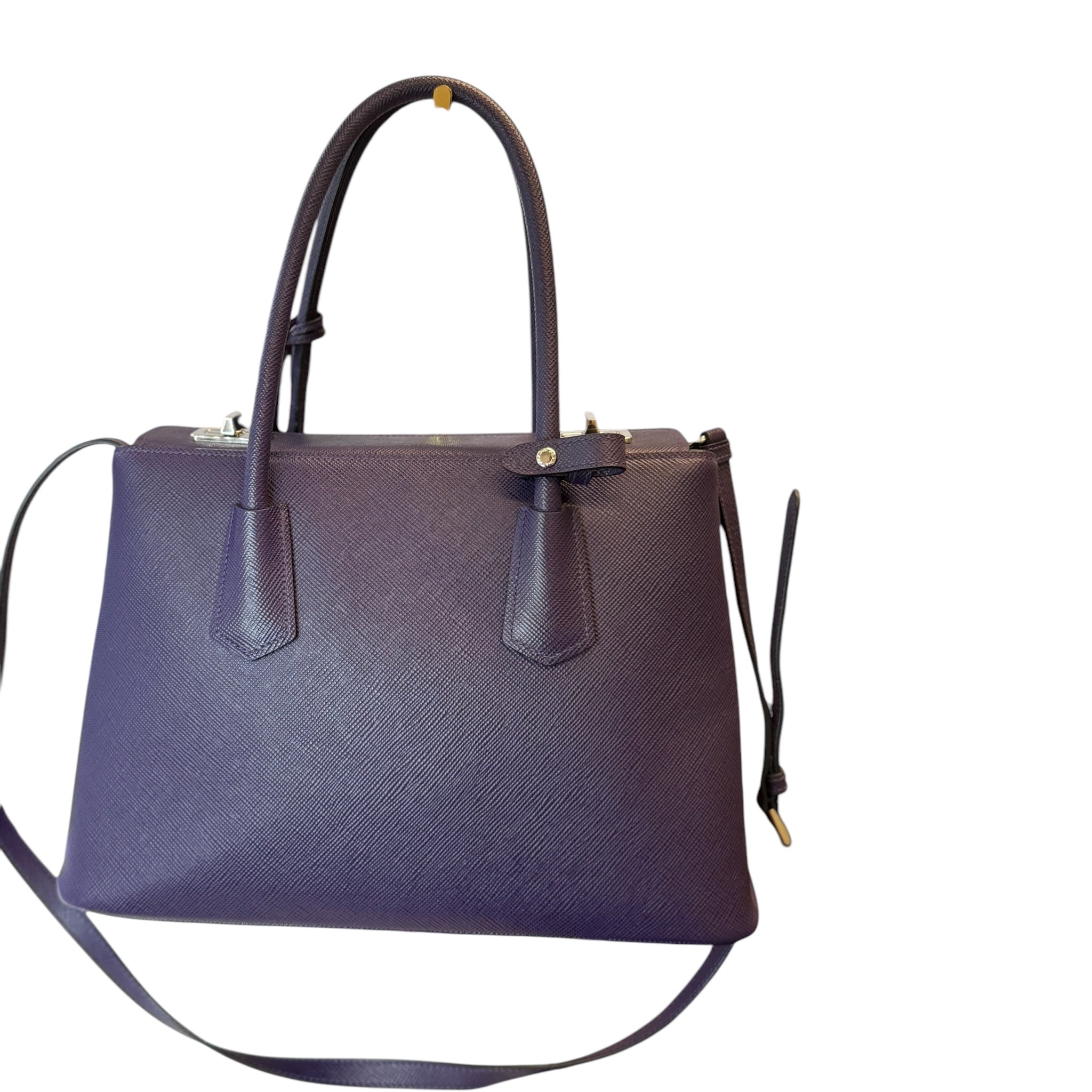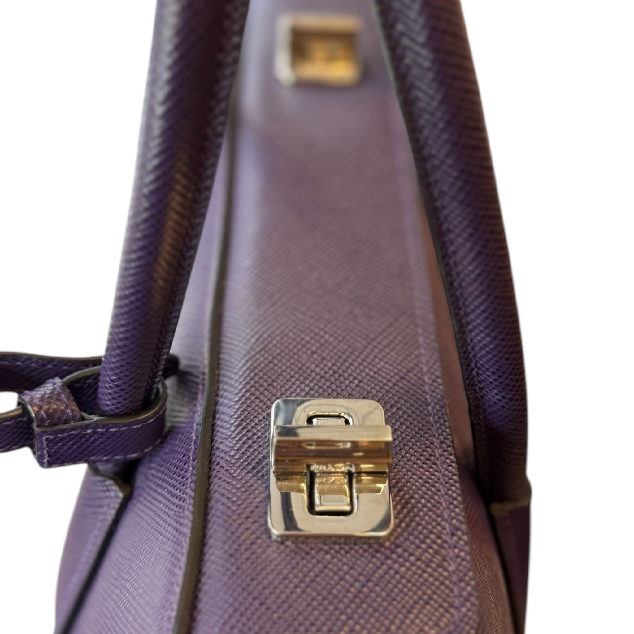 Elevate your style with our PRE-OWNED Purple Saffianno Cuir Tote, complete with sleek silver toned hardware. Perfect for any occasion, this bag adds a touch of glamour and sophistication to any outfit. Make a statement with this luxurious accessory!