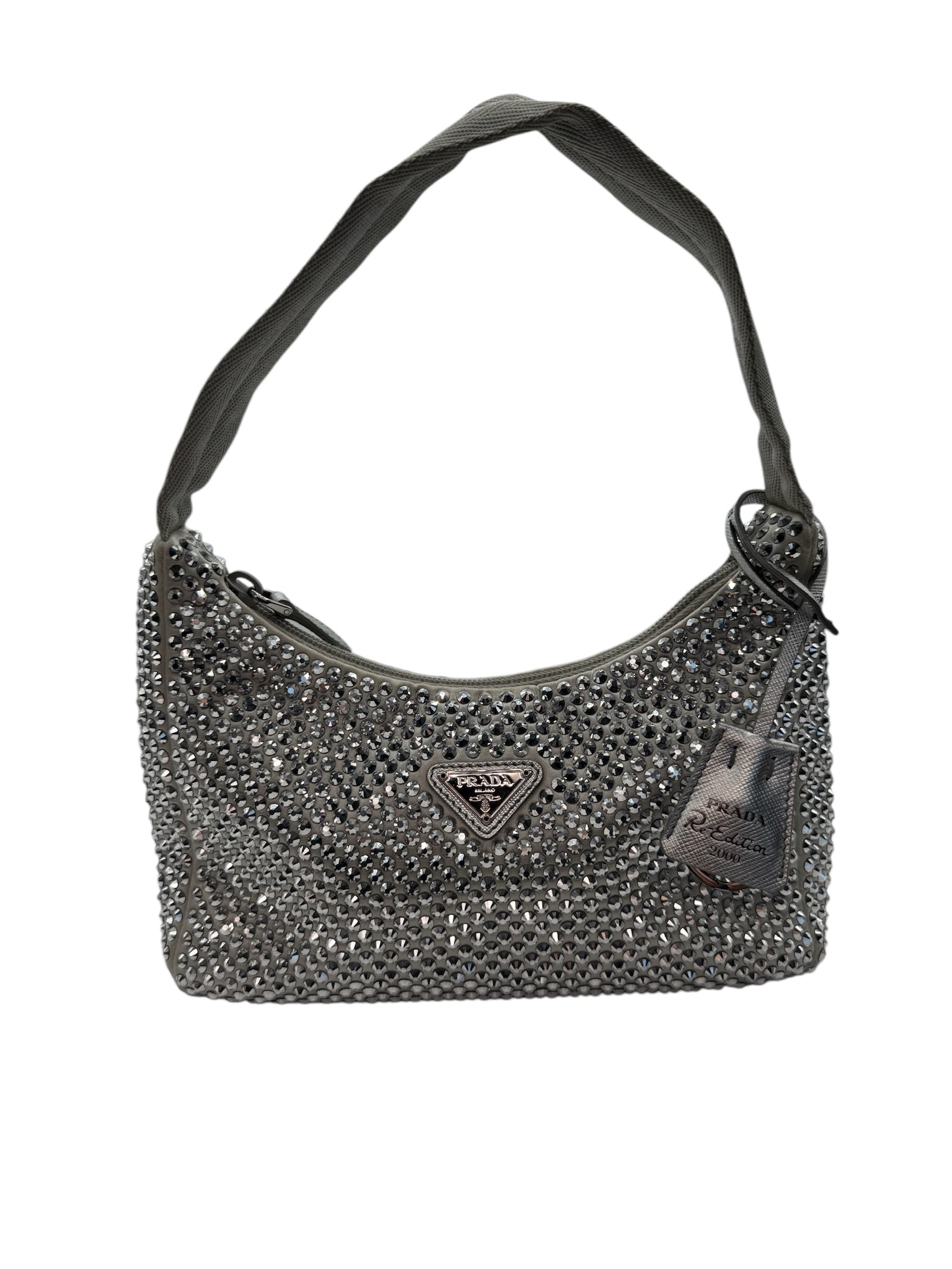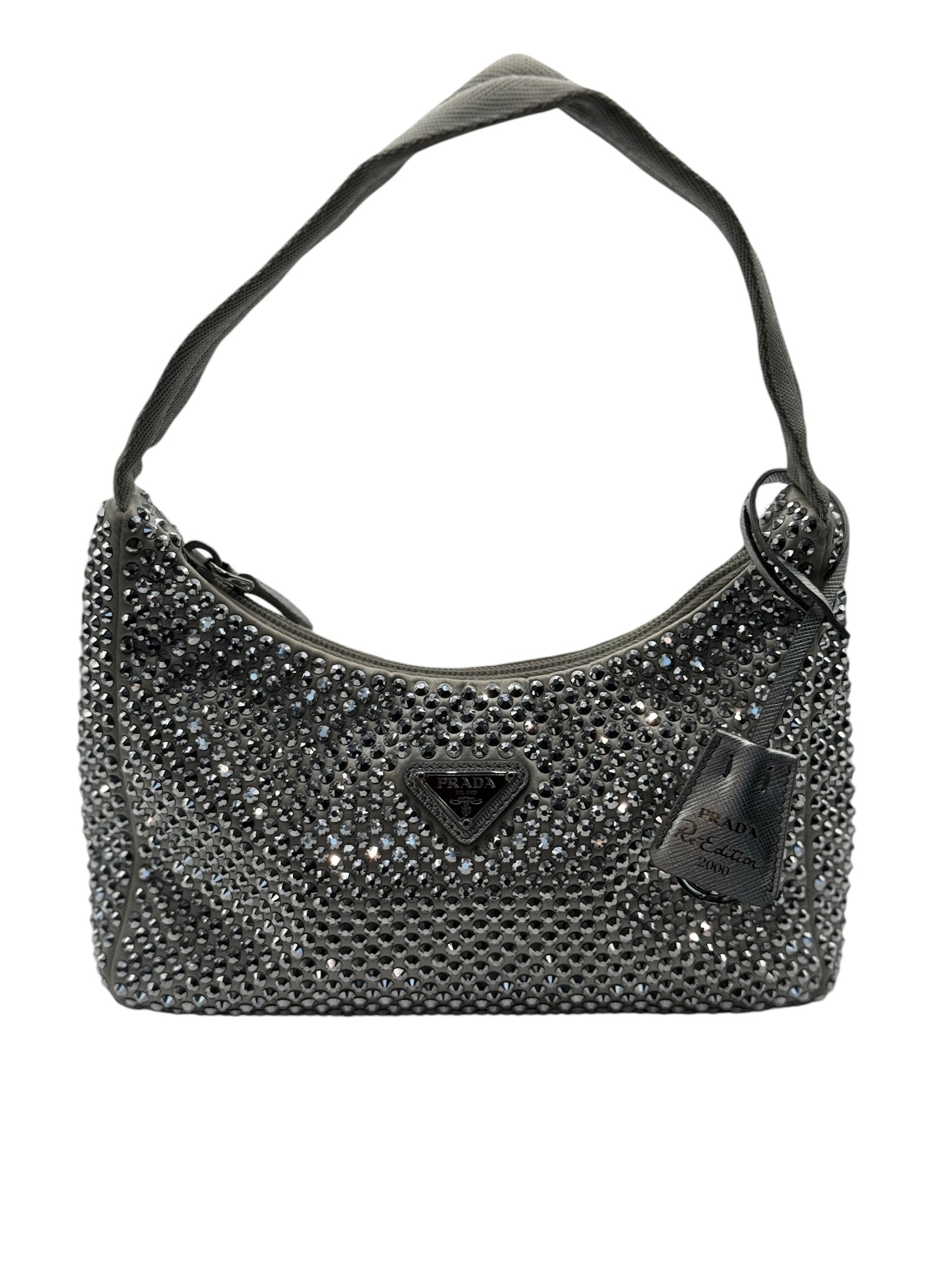 PRE-OWNED Re-Edition Grey Cristals Hobo Shoulder Bag