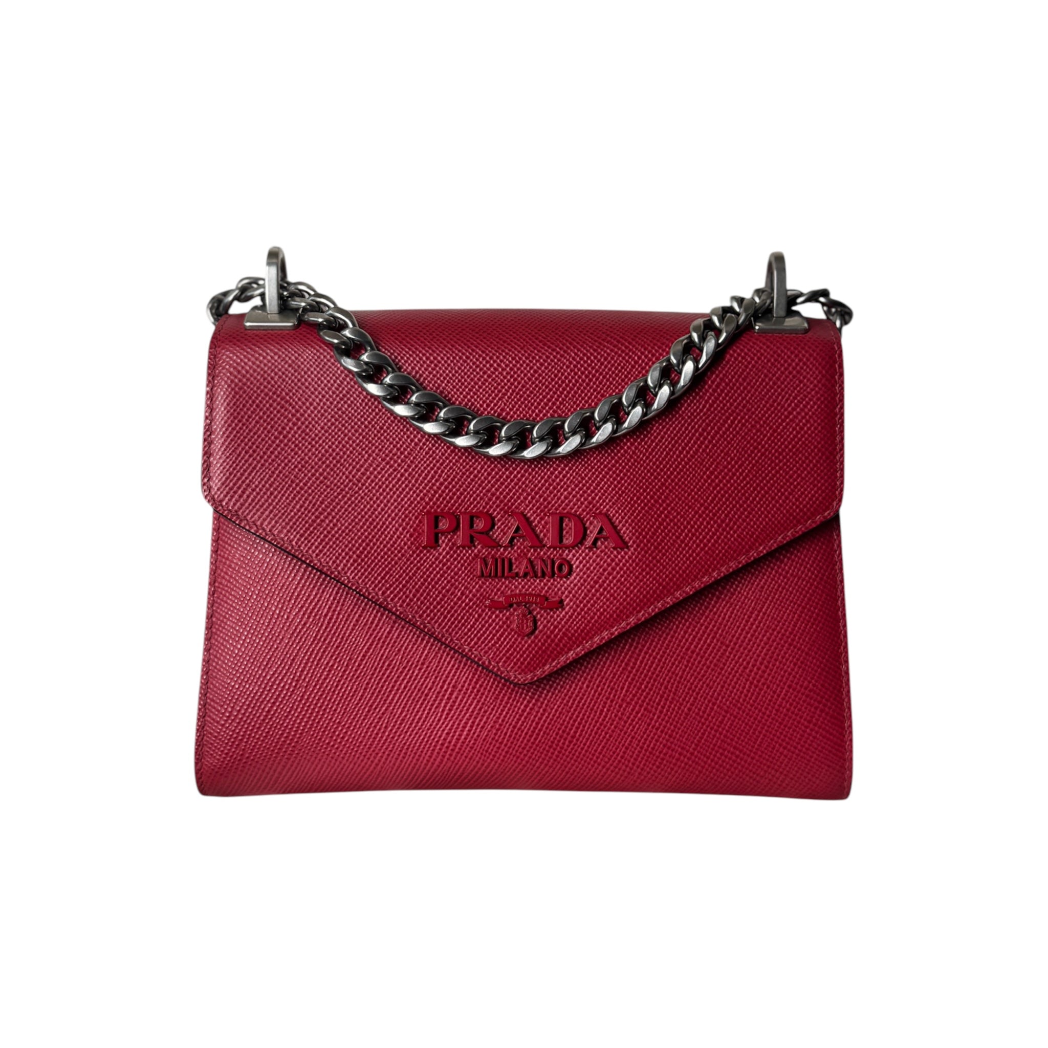 PRADA - Red Monochrome Saffiano Leather Shoulder Bag