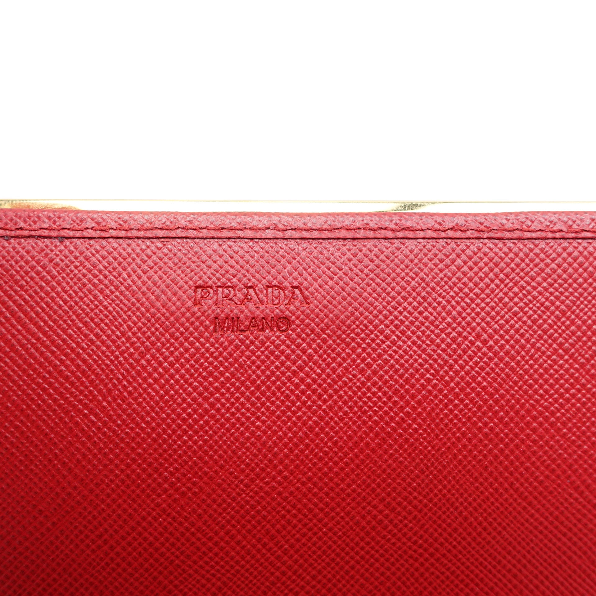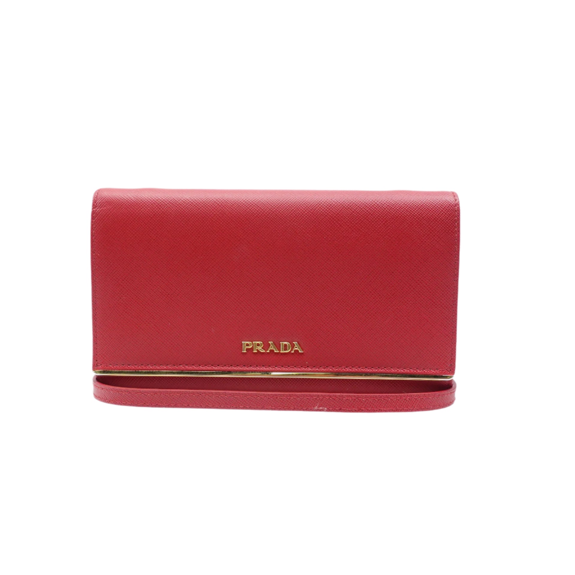 PRADA Red Saffiano Leather Fuoco Wallet on a Chain Crossbody Bag
