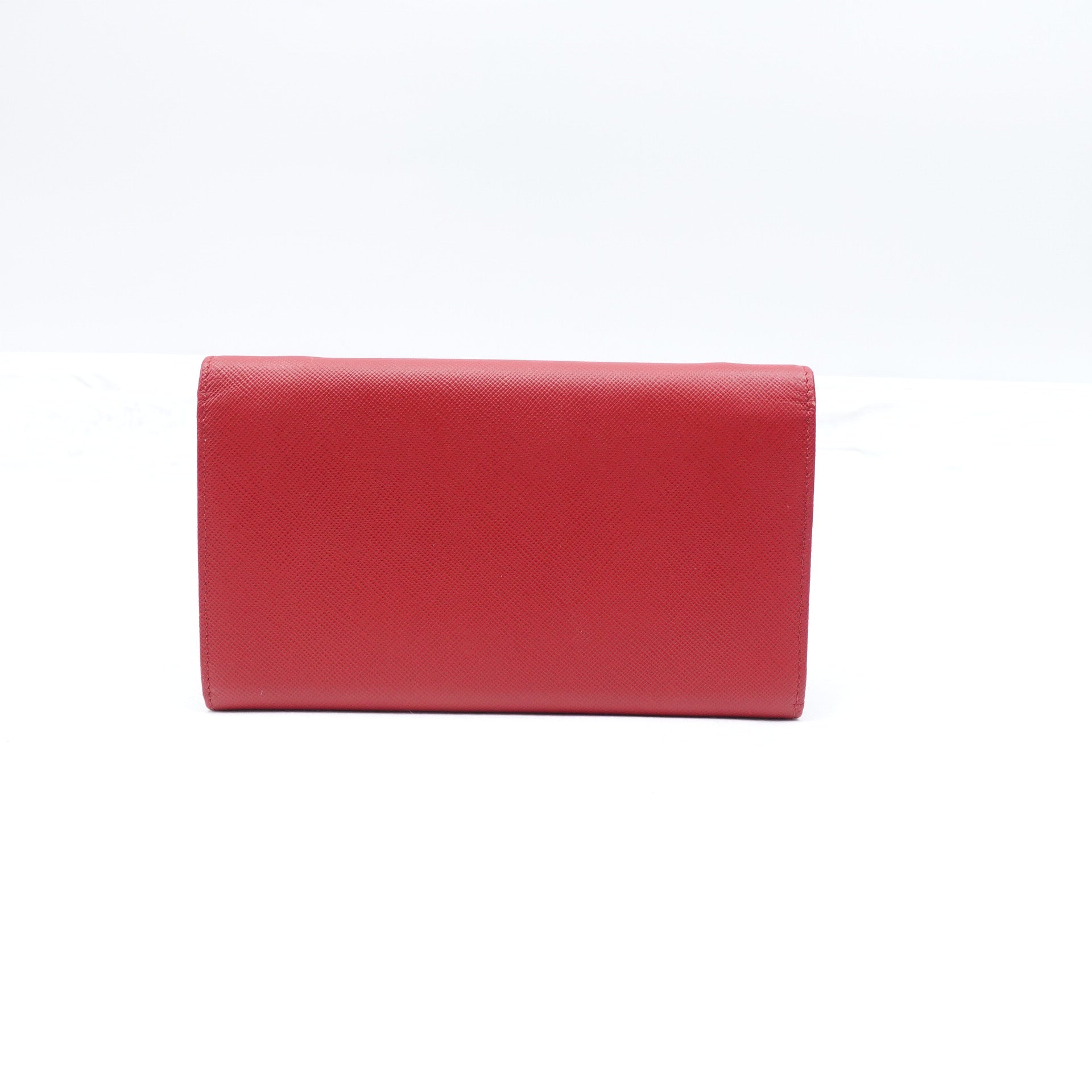 PRE-OWNED Red Saffiano Leather Fuoco Wallet on a Chain Crossbody Bag