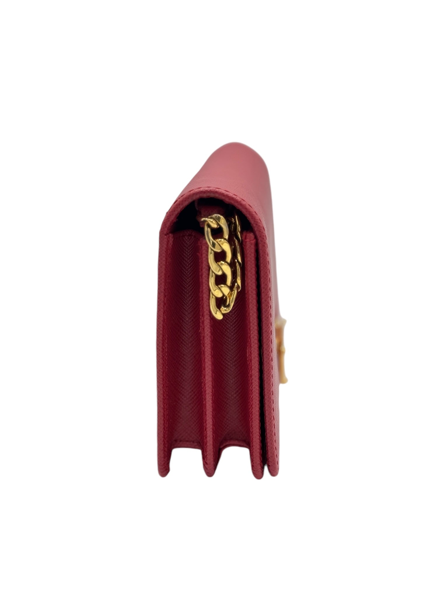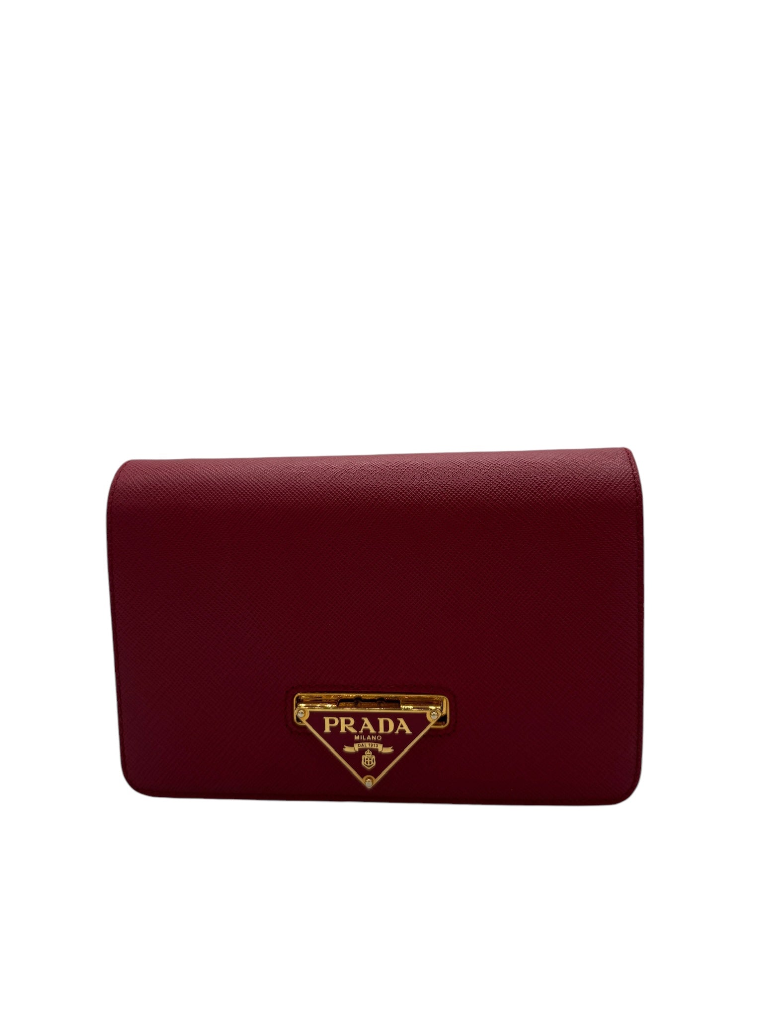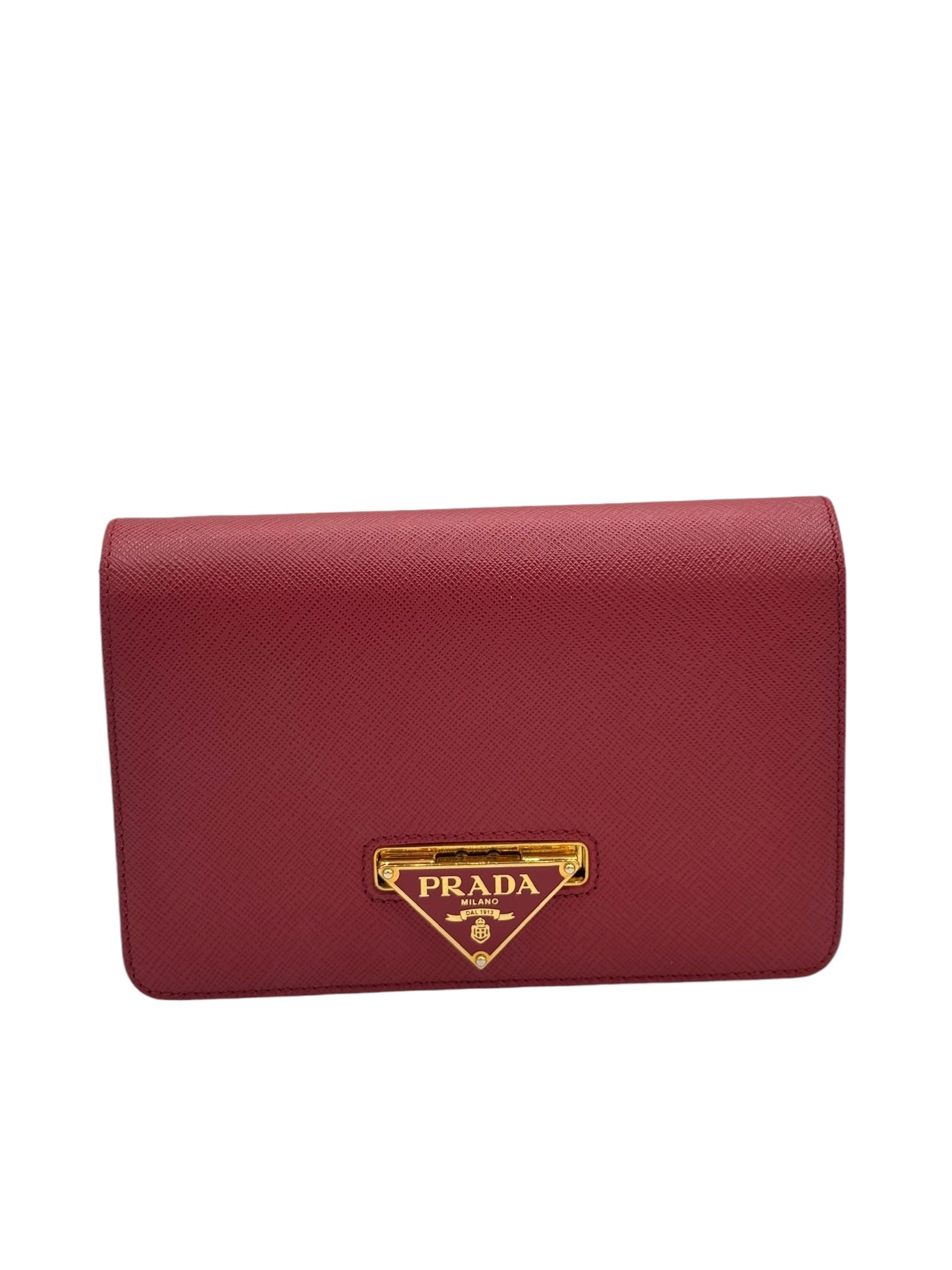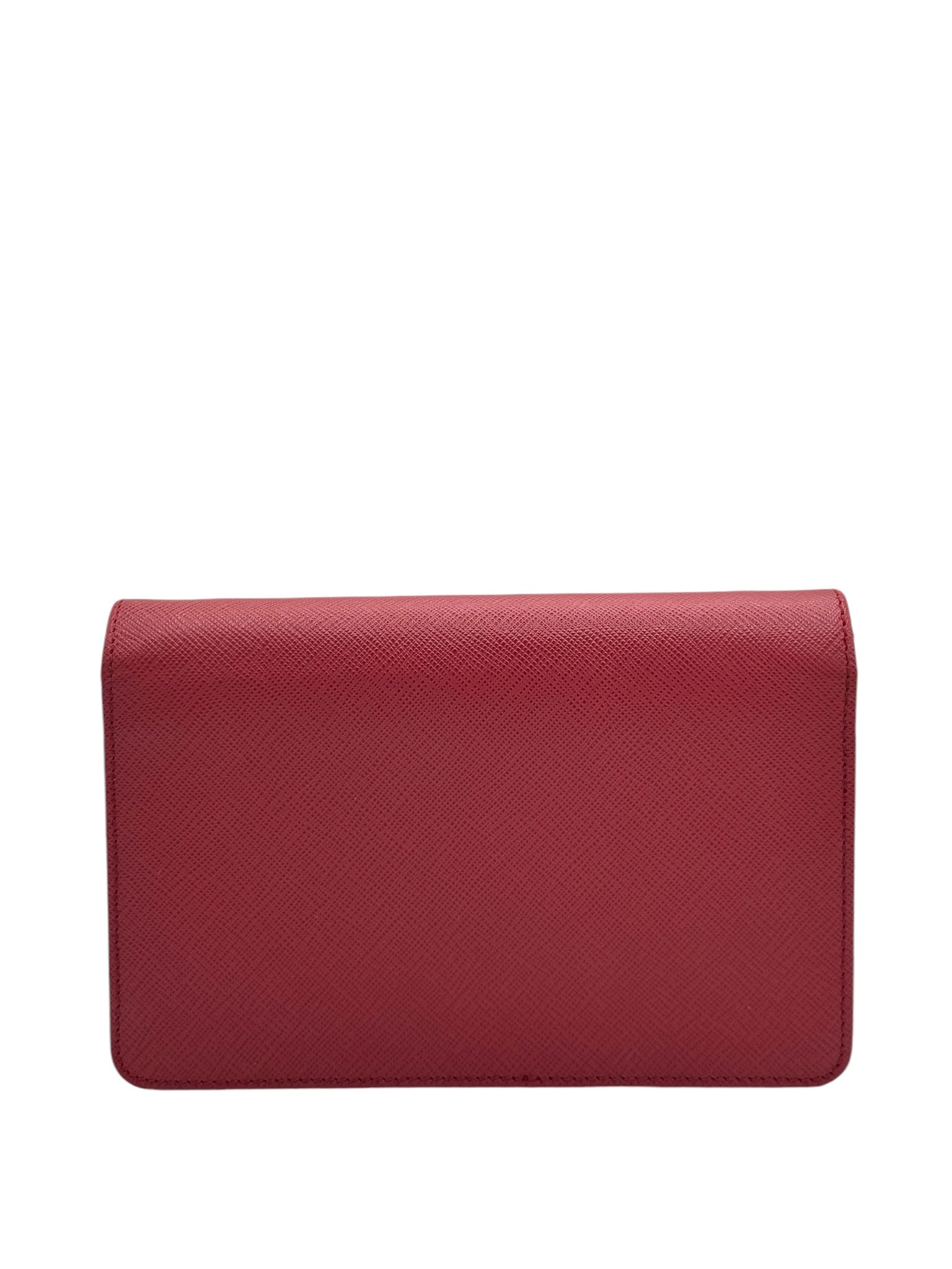 PRE-OWNED Red Saffiano Lux Fuoco Wallet on a Chain Crossbody Bag