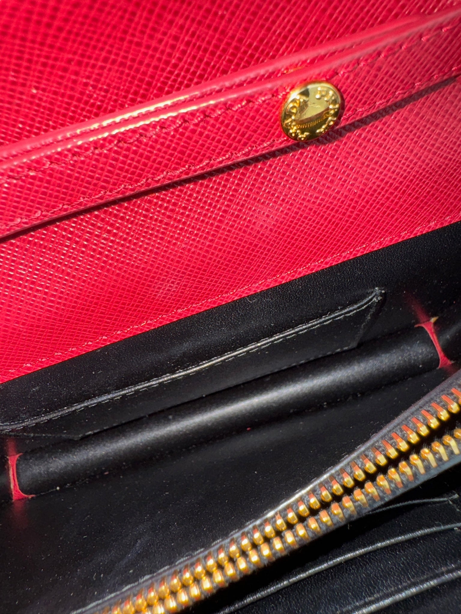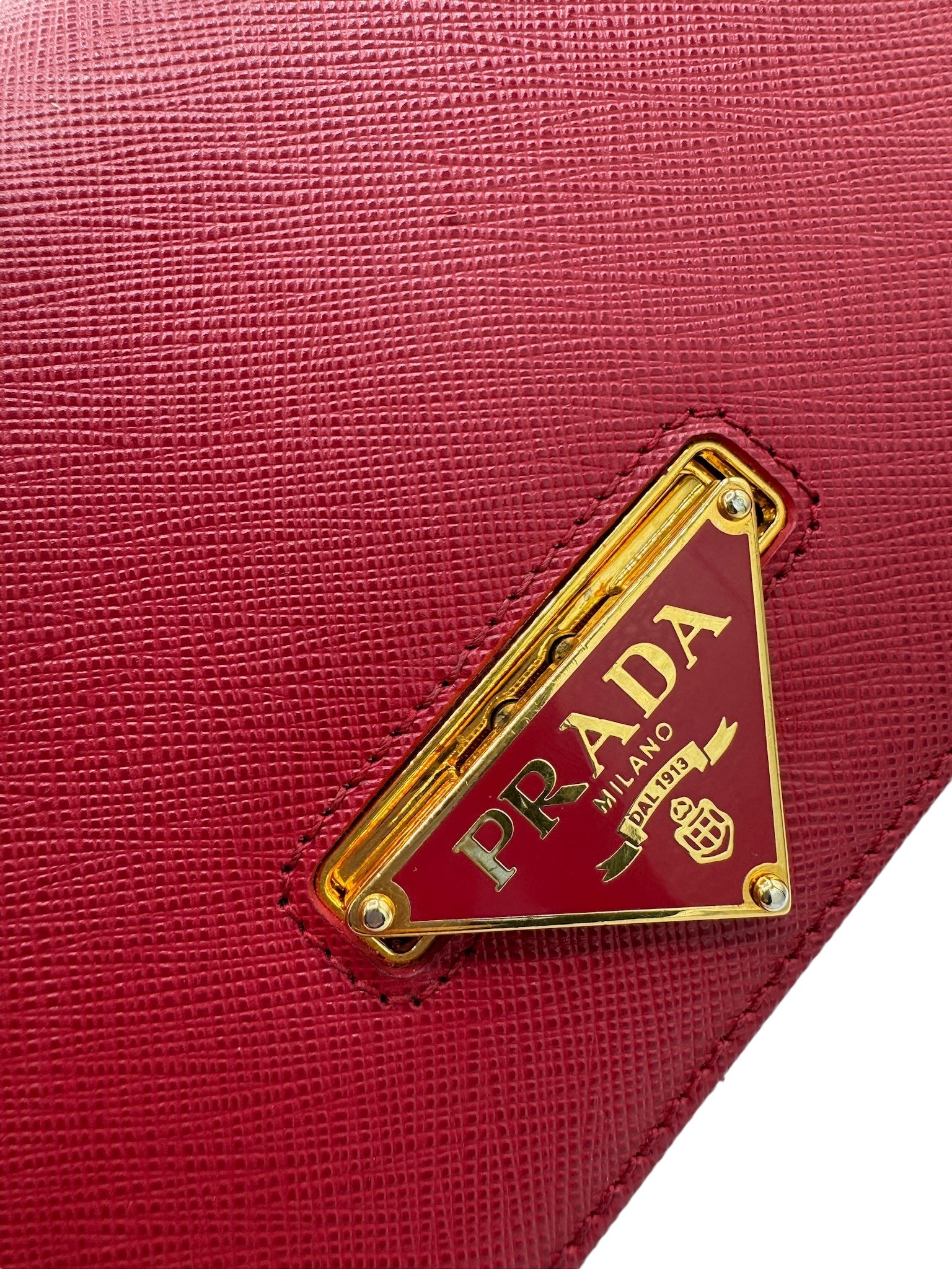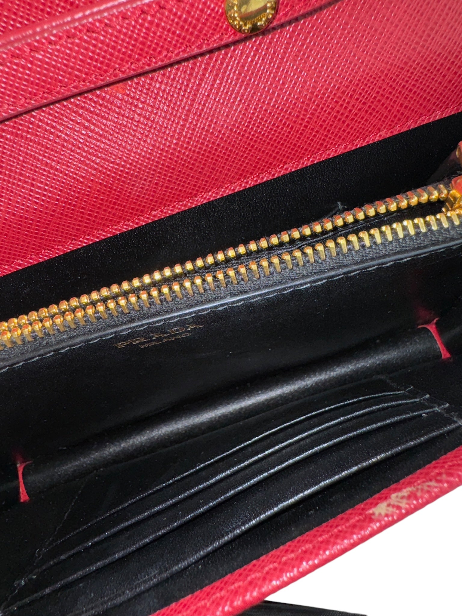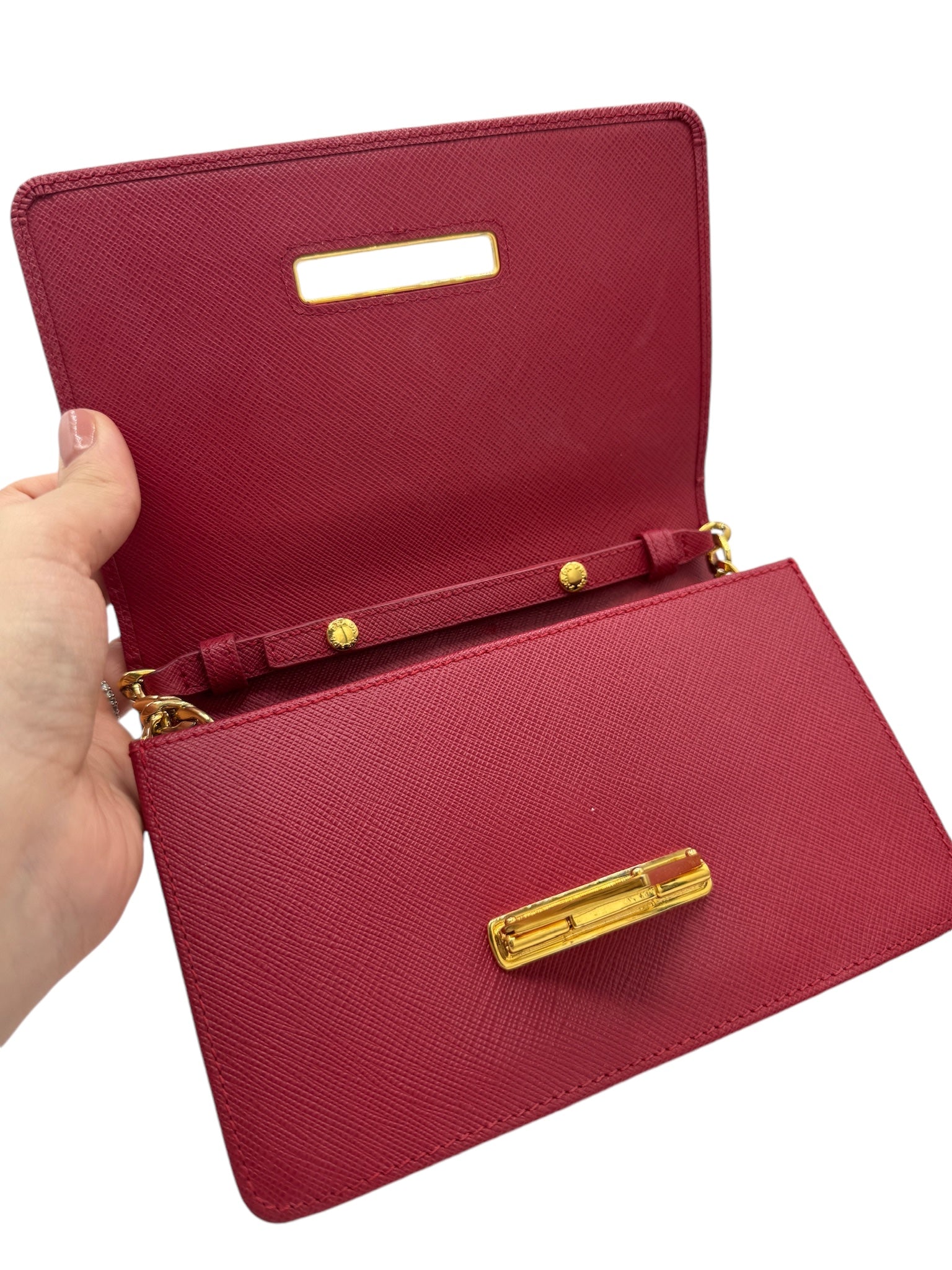 PRE-OWNED Red Saffiano Lux Fuoco Wallet on a Chain Crossbody Bag