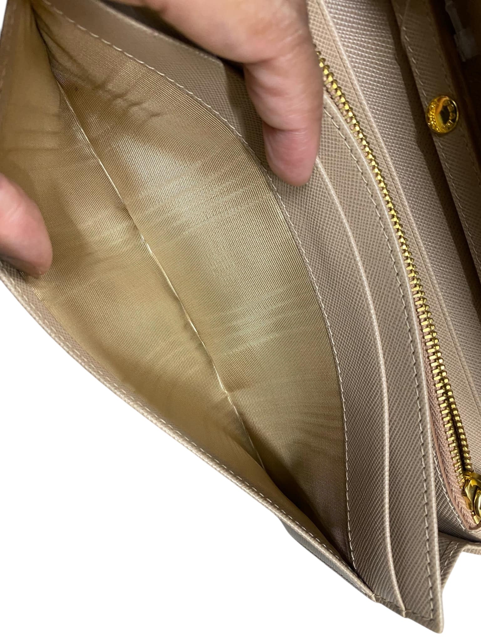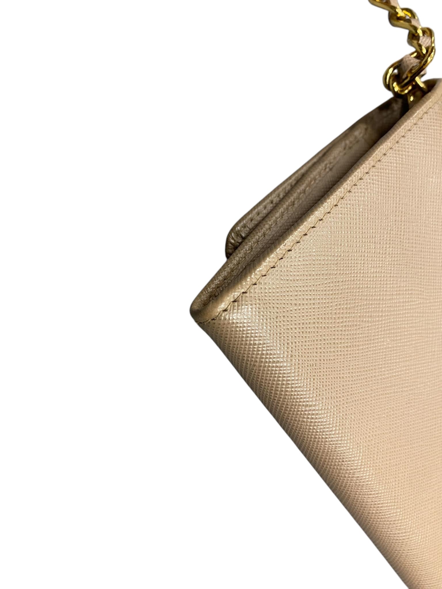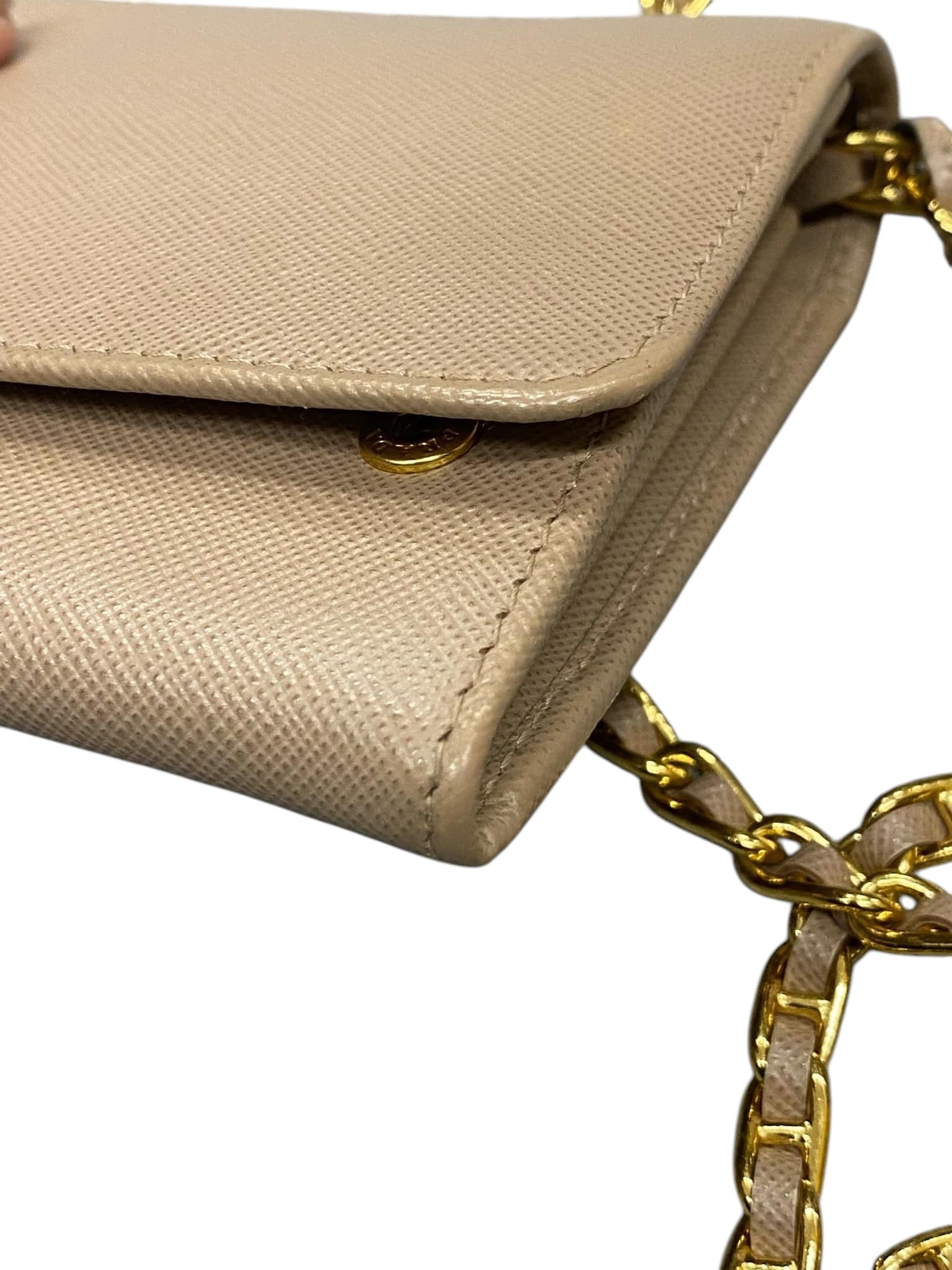 PRE-OWNED Saffiano Metal Oro Wallet on a Chain Cammeo Crossbody Bag