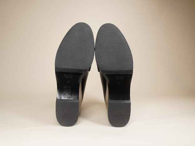 PRE-OWNED Horsebit Leather Platform Loafers Black