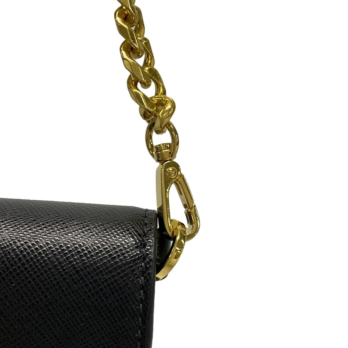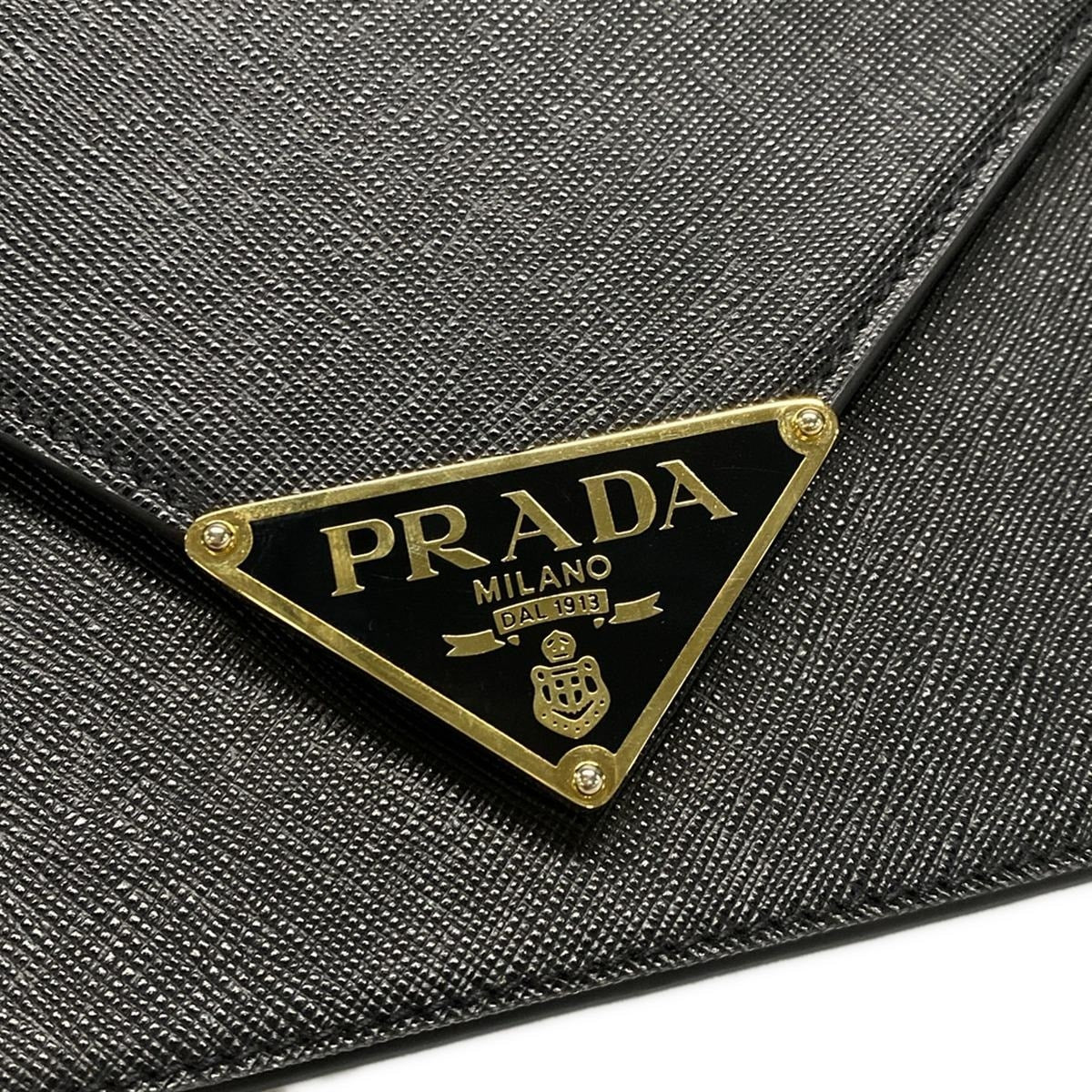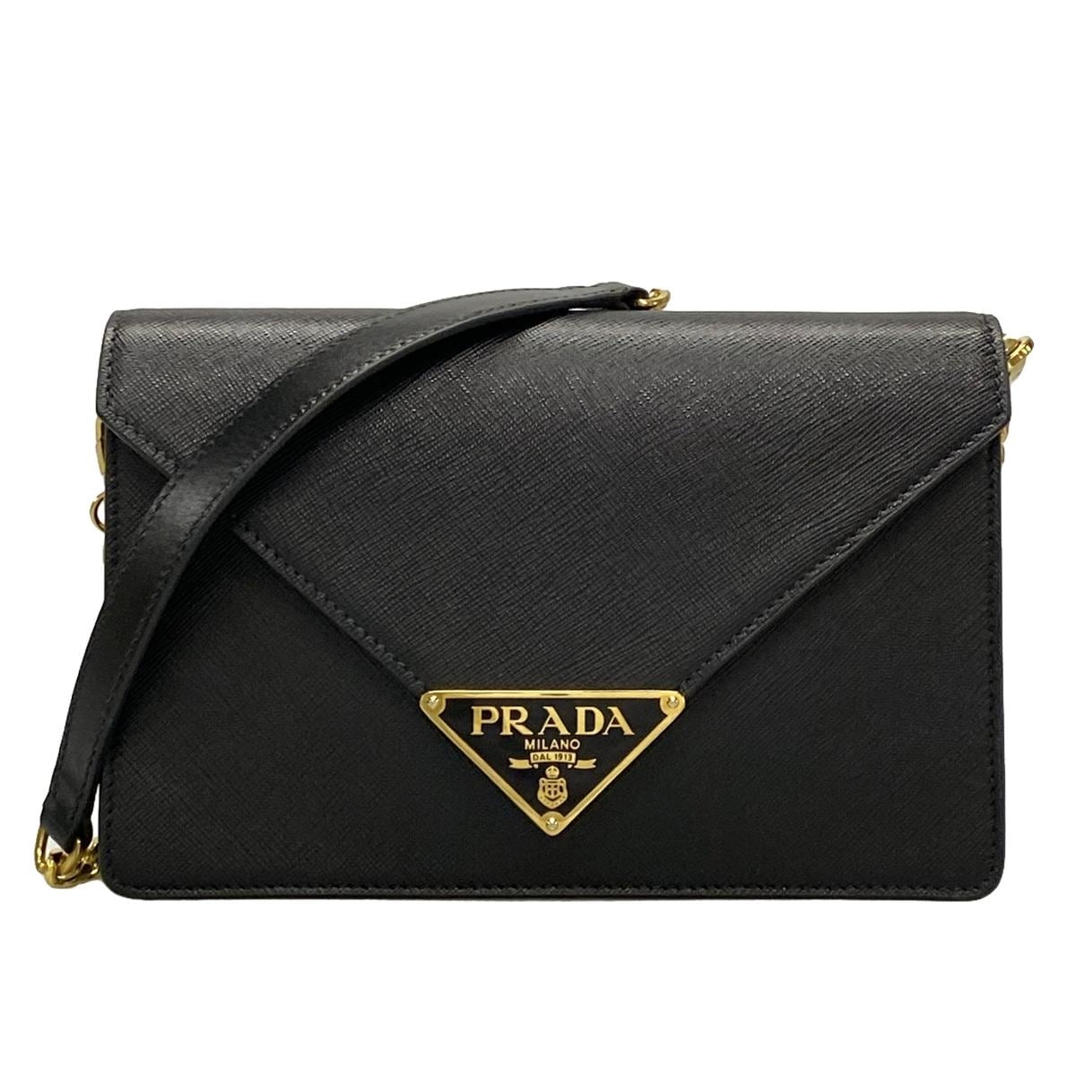 This pre-owned PRADA Triangle Gold Black Leather Shoulder Bag is a luxurious addition to your collection. With a unique triangle shape and gold accents, this bag is both stylish and versatile.