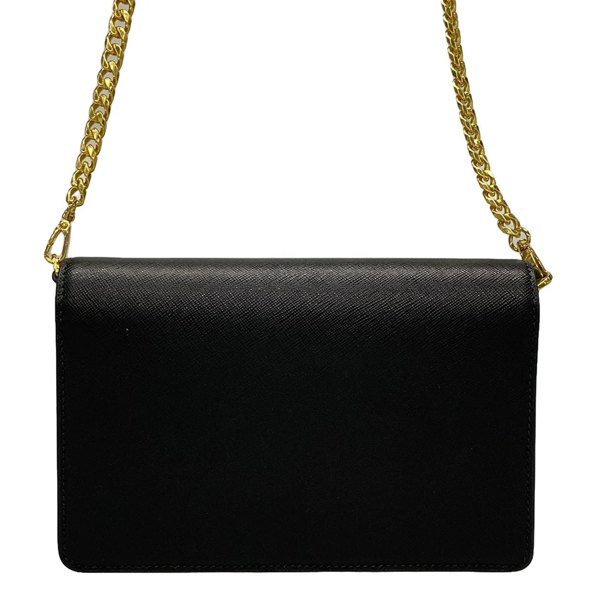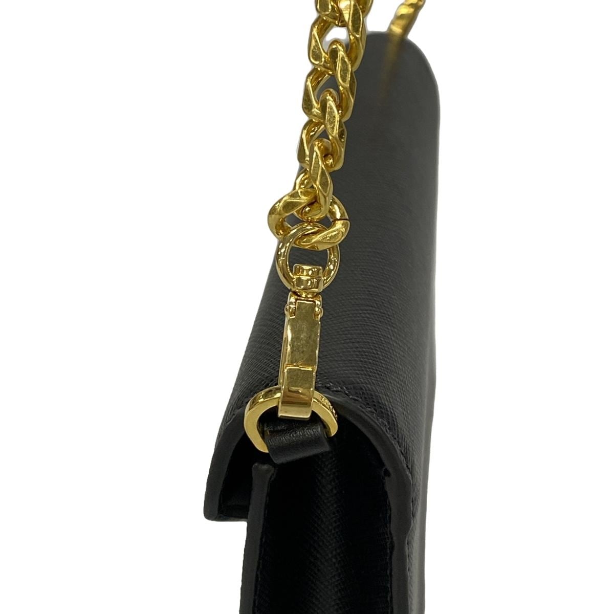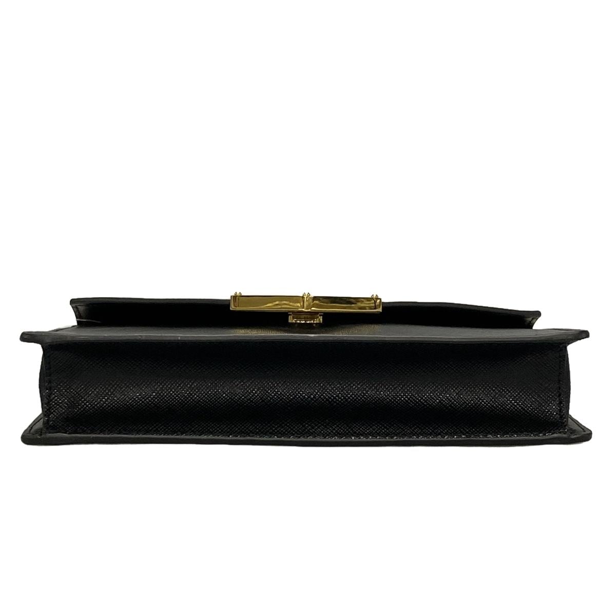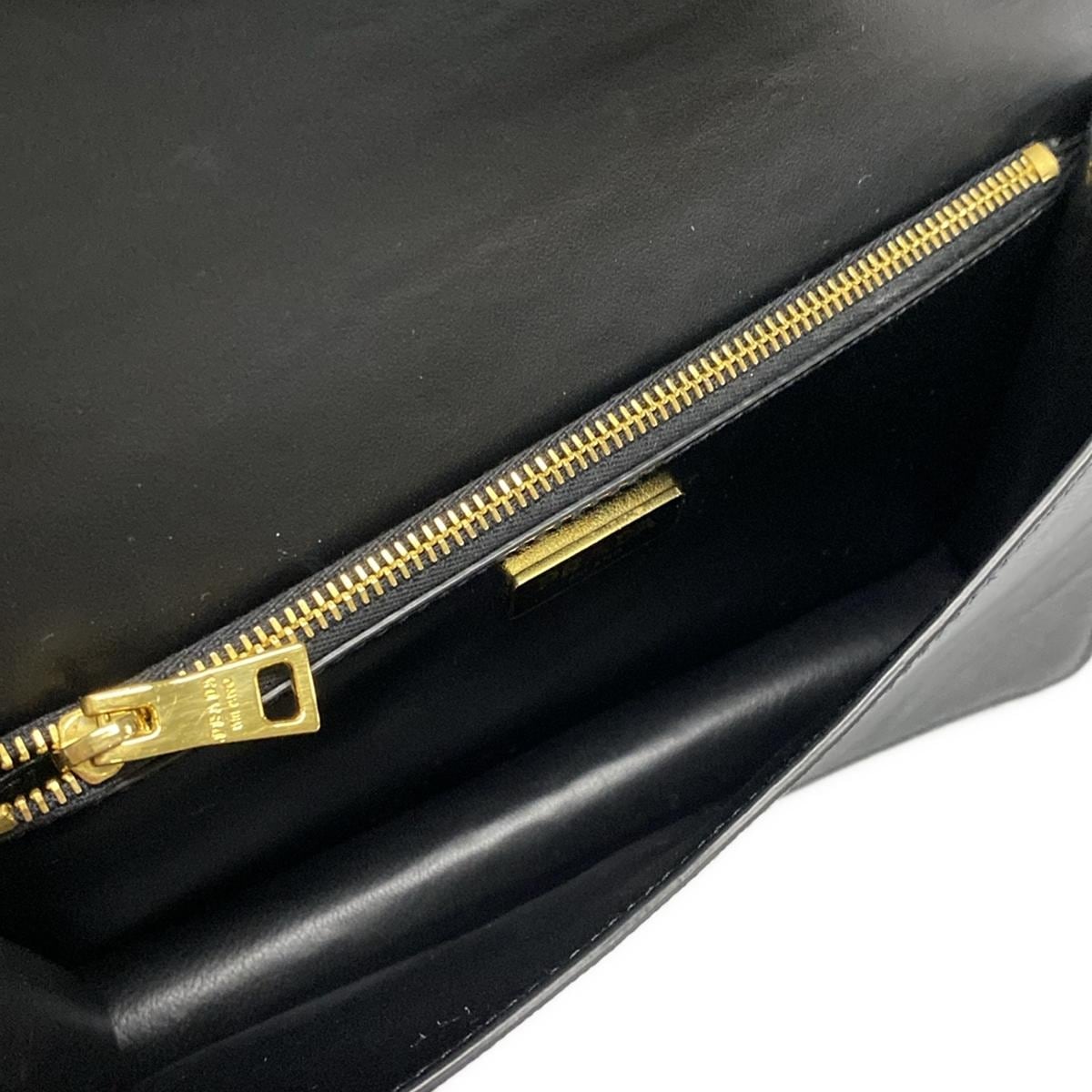 PRE-OWNED Triangle Gold Black Leather Shoulder Bag