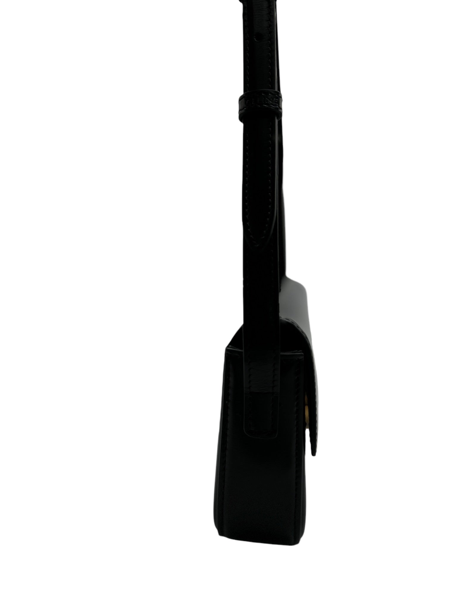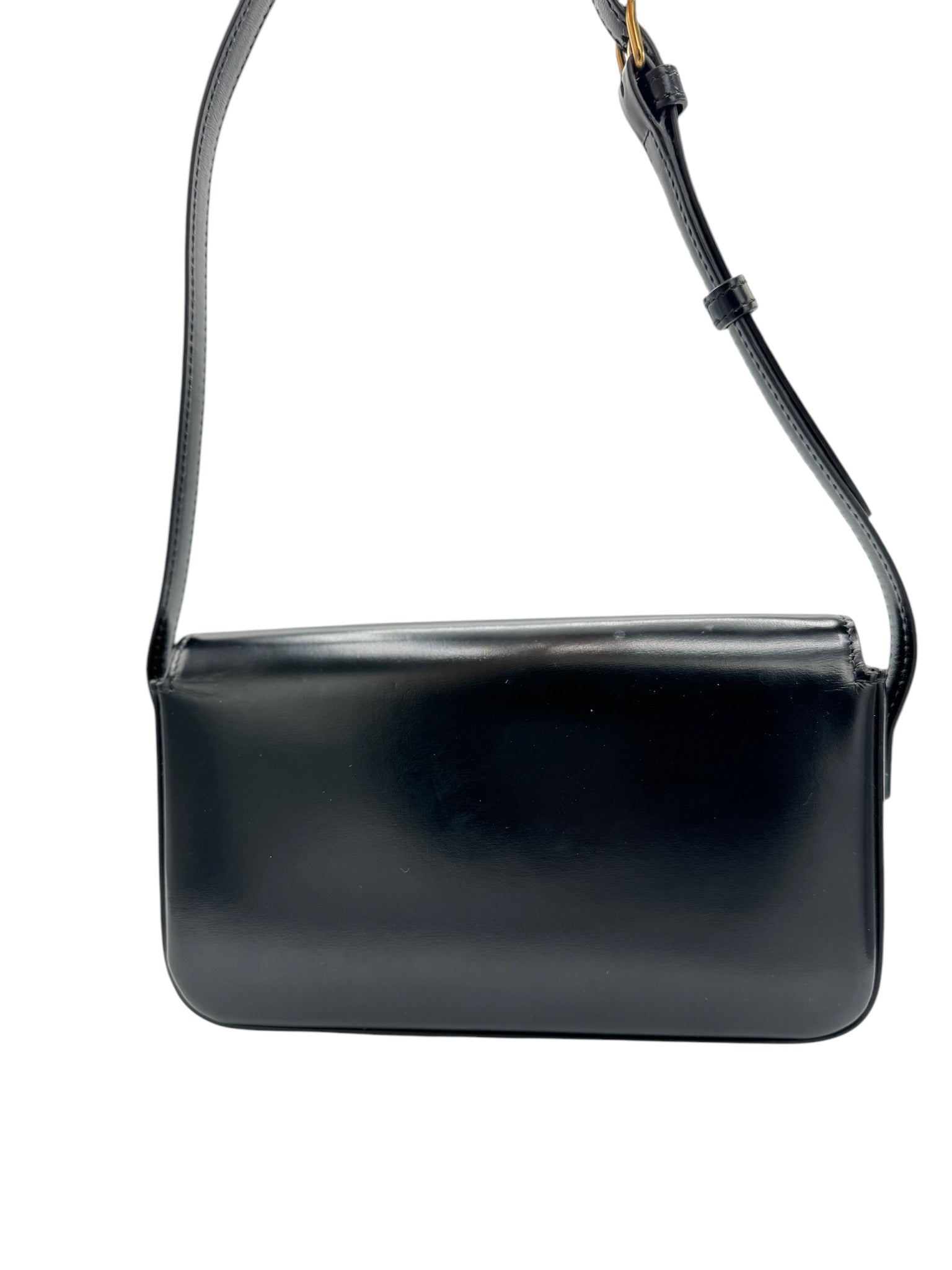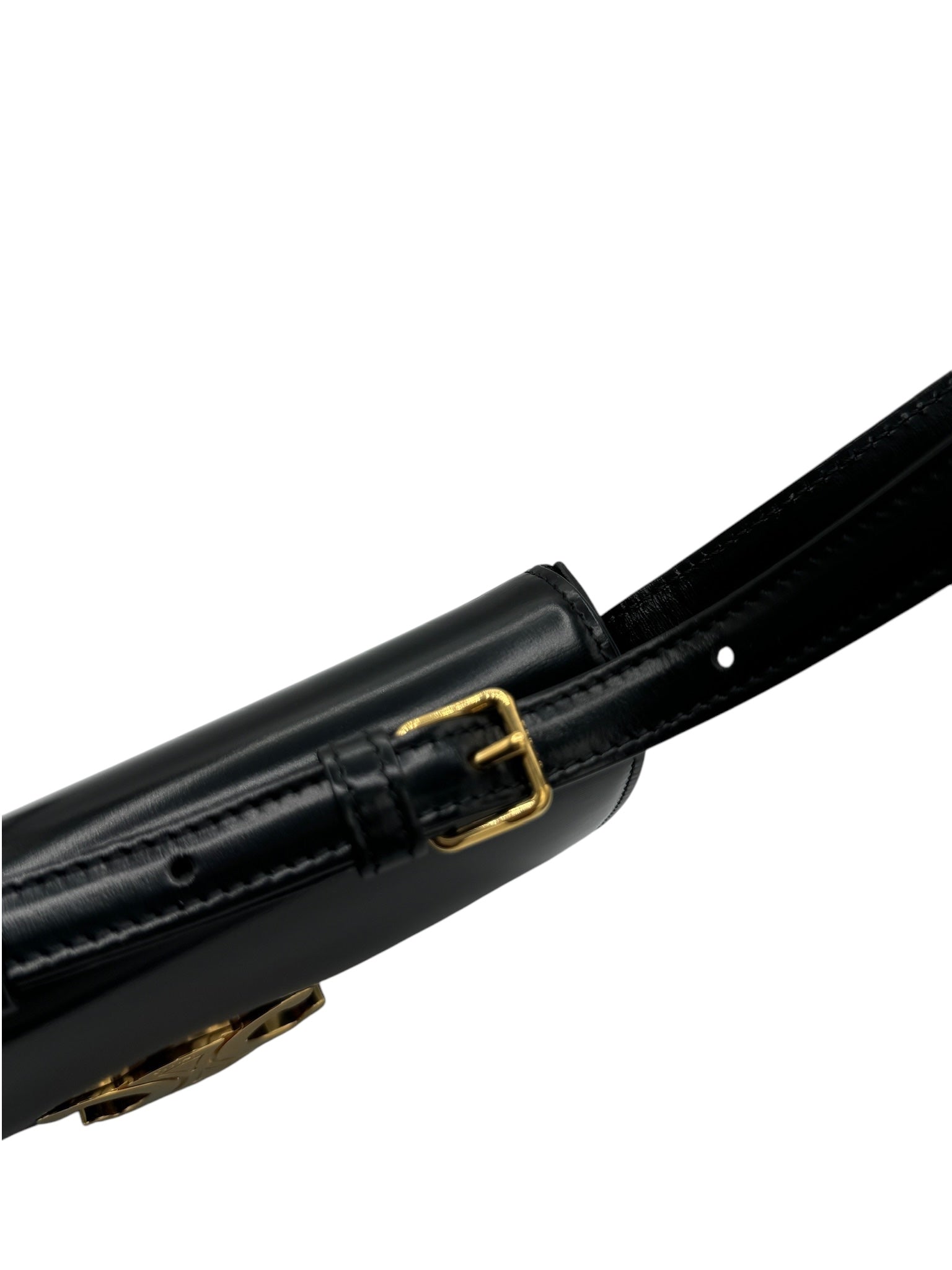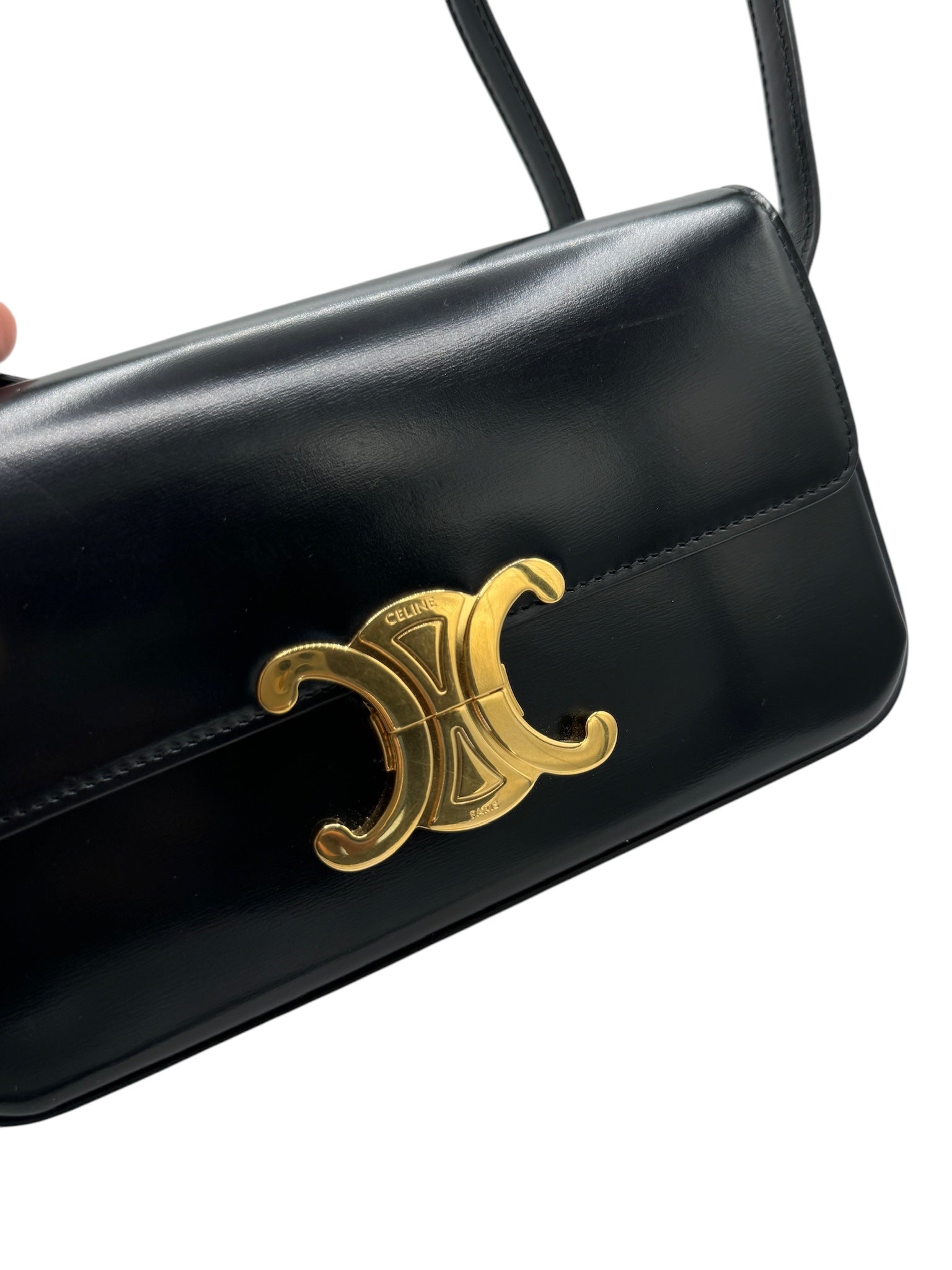 CELINE - Triomphe Black Shining Calfskin Shoulder Bag