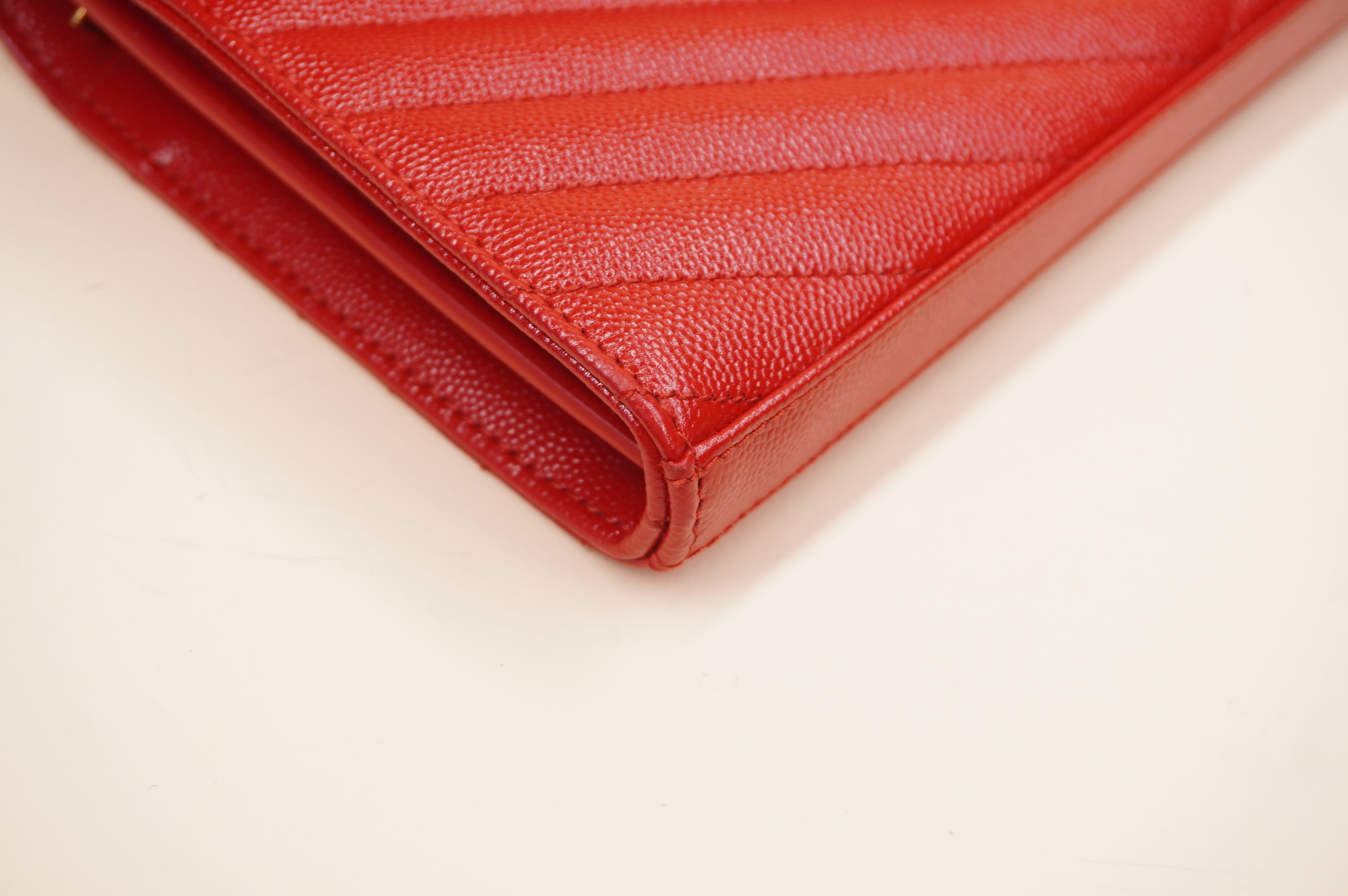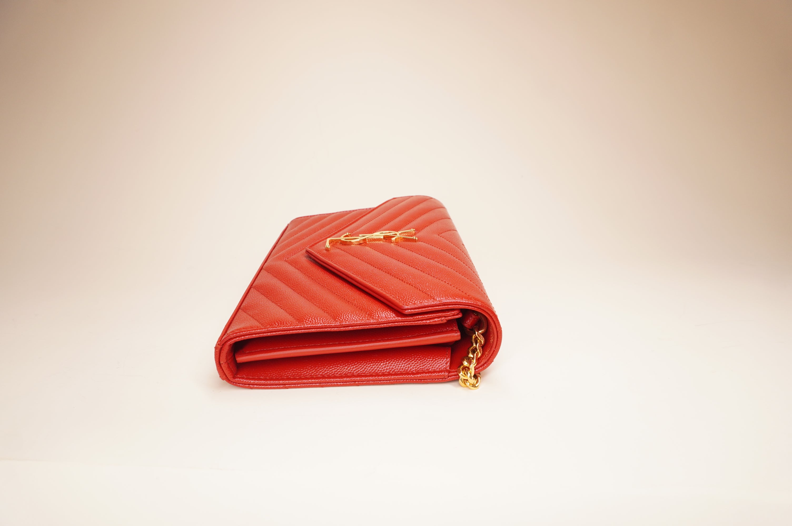 Elevate your accessory game with this stunning pre-owned YSL Red Cassandre Envelope Crossbody Bag. Featuring the iconic Cassandre design, this luxurious piece combines timeless elegance with practical functionality.