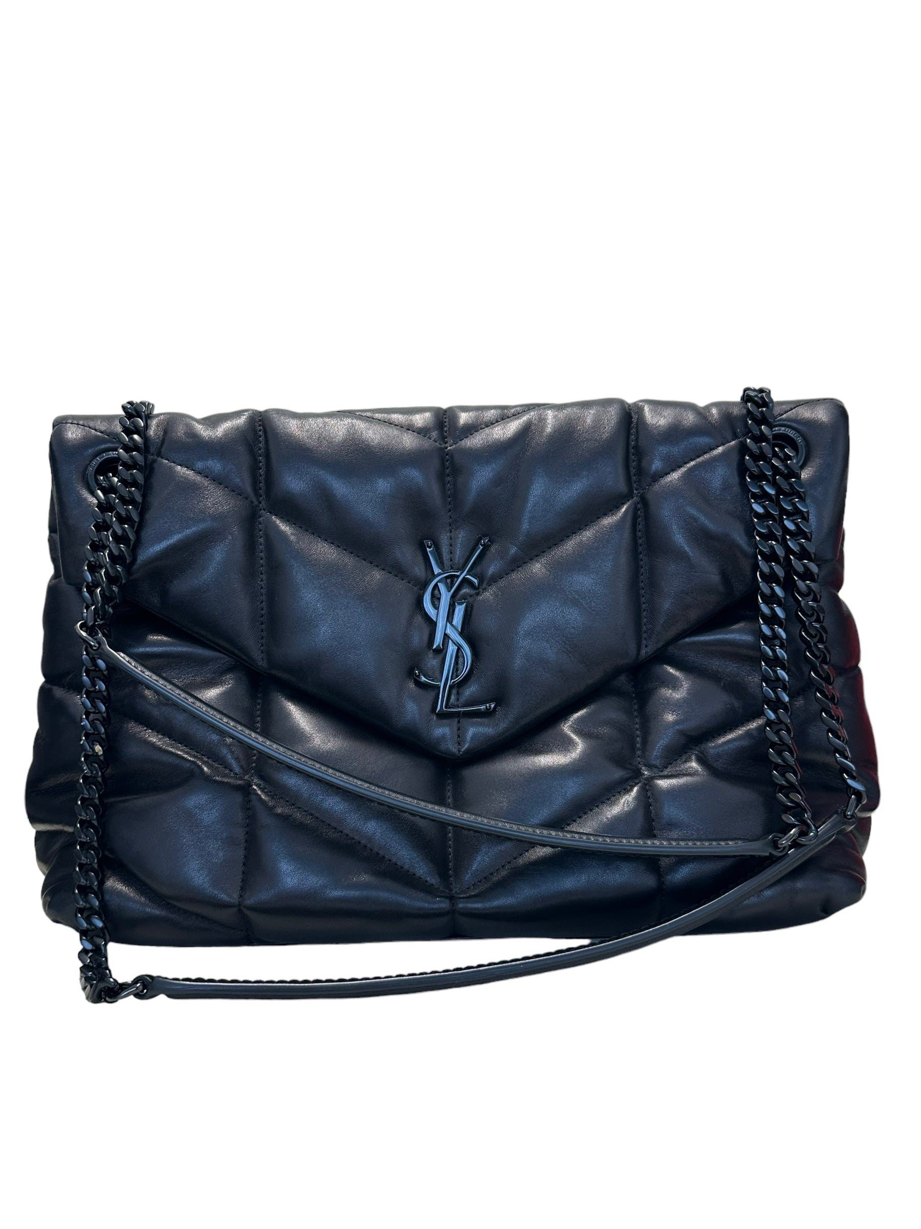 SAINT LAURENT - Black Quilted Leather Medium Loulou Puffer Bag