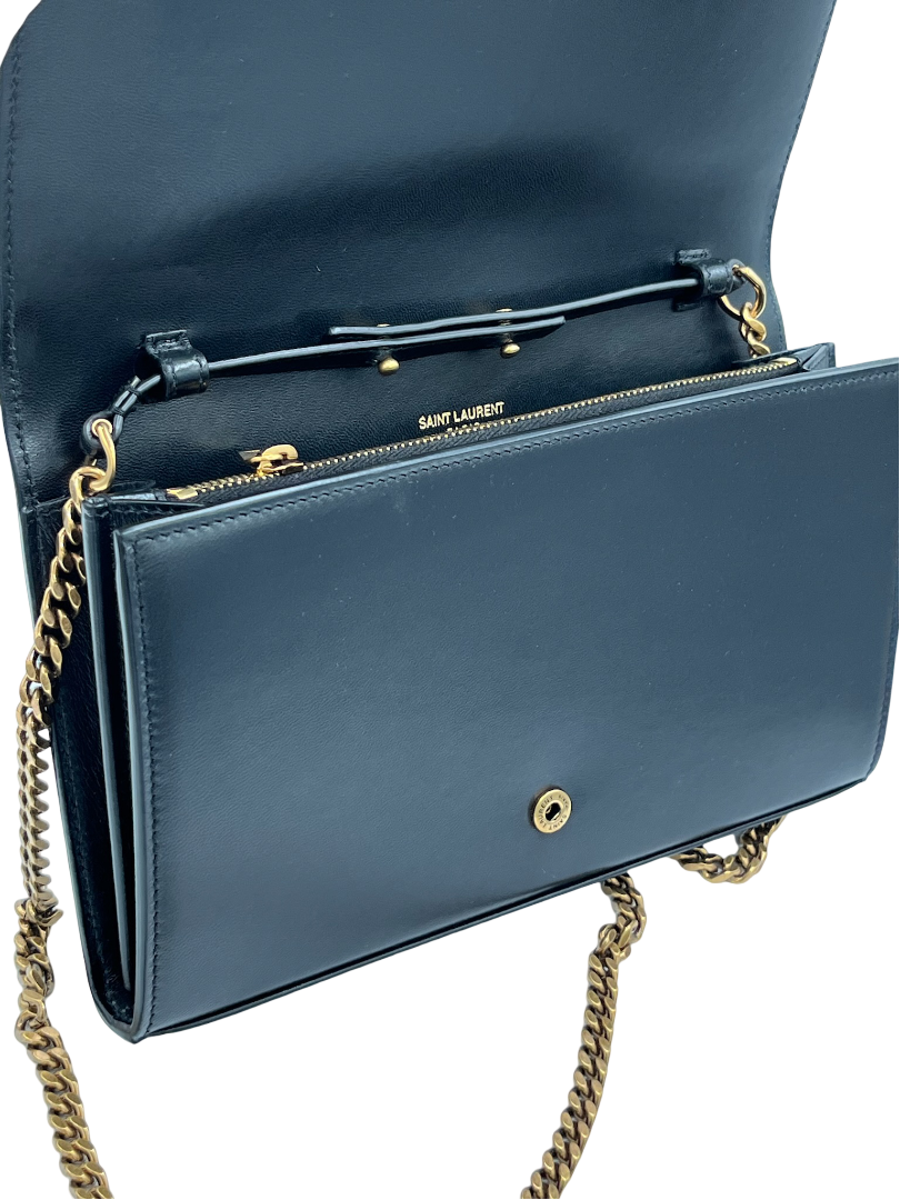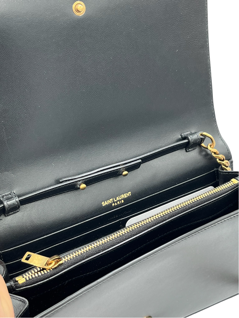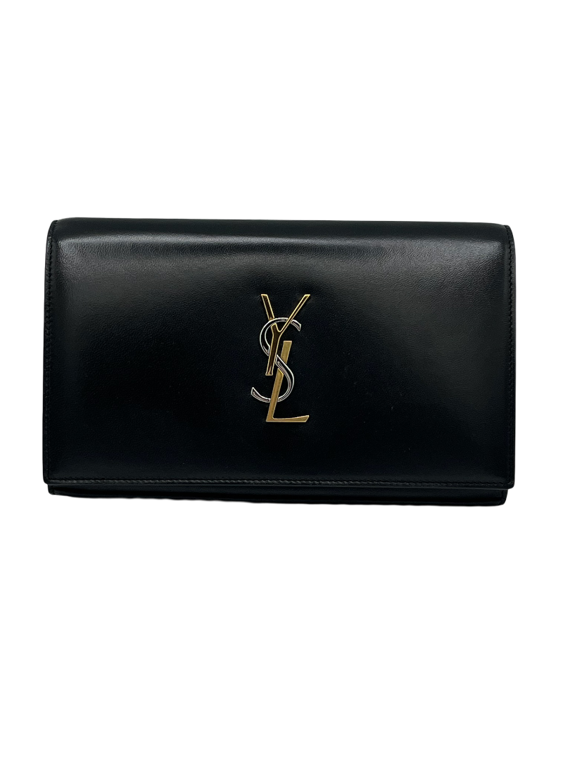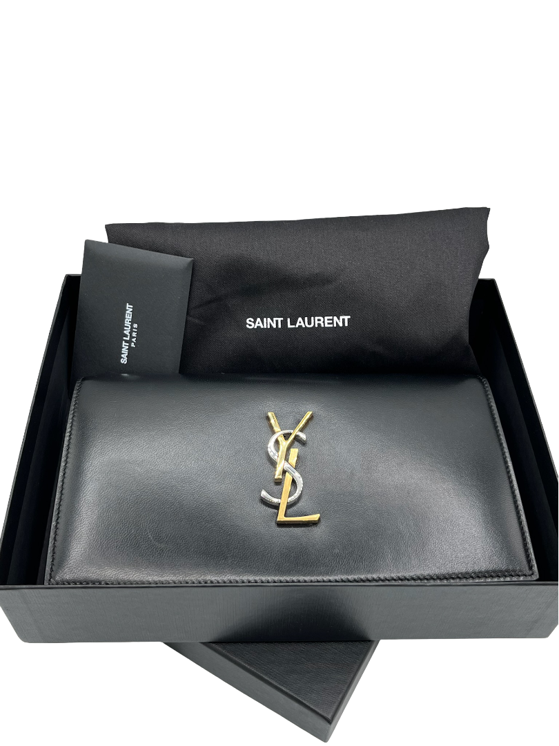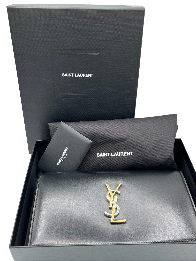 This pre-owned SAINT LAURENT black tri tones Kate crossbody bag is a must-have for any fashion-forward individual looking for a stylish and practical accessory.