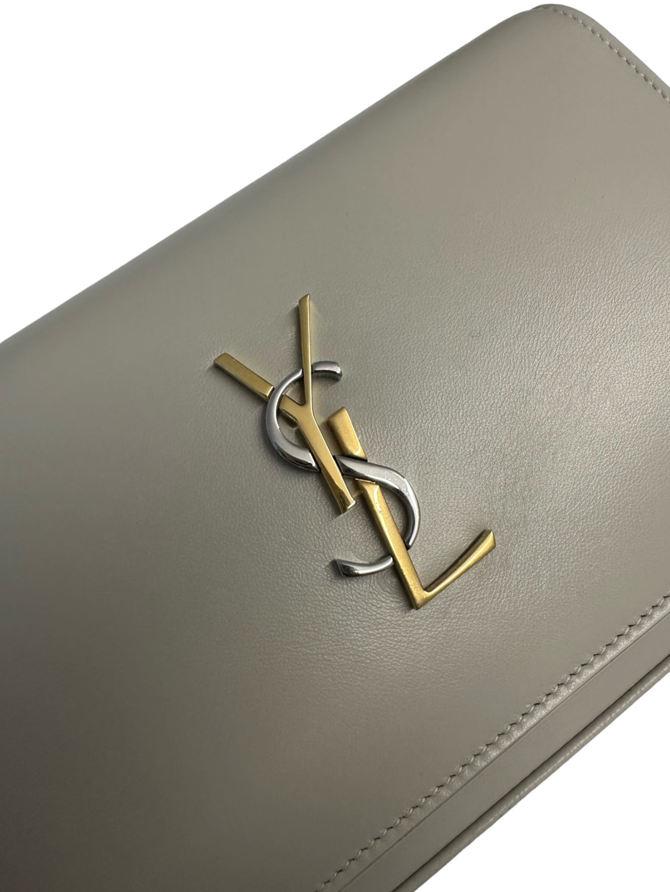 SAINT LAURENT - Crema Leather Monogram Tri Tone Kate Chain Wallet