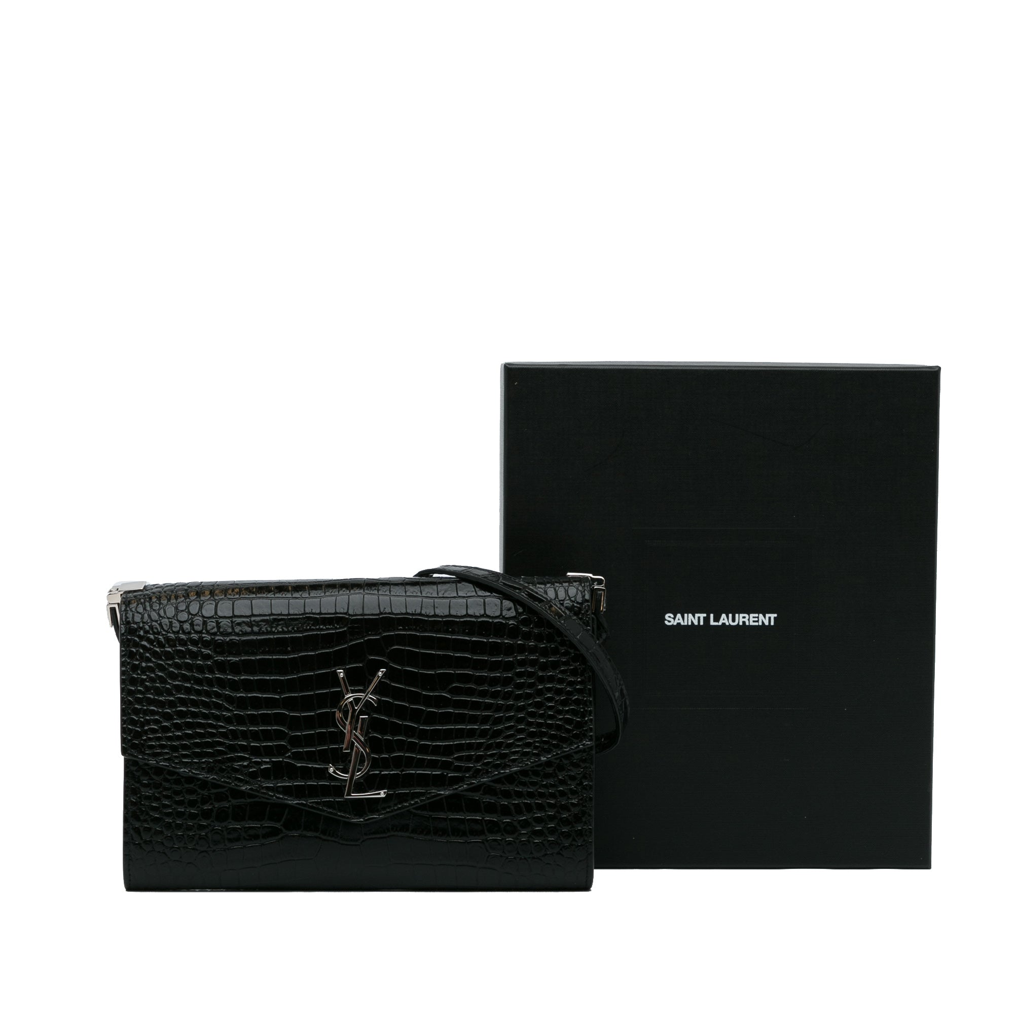 Upgrade your style statement with this Pre-Owned SAINT LAURENT Embossed Uptown Crossbody Bag.