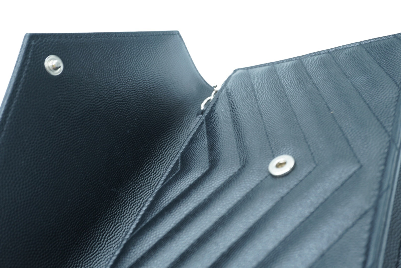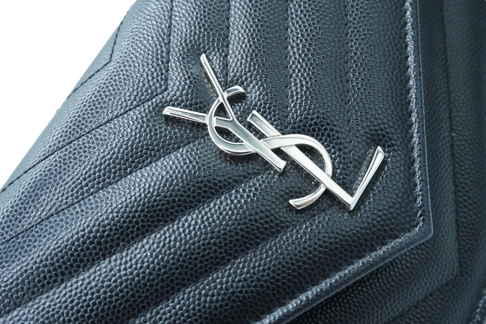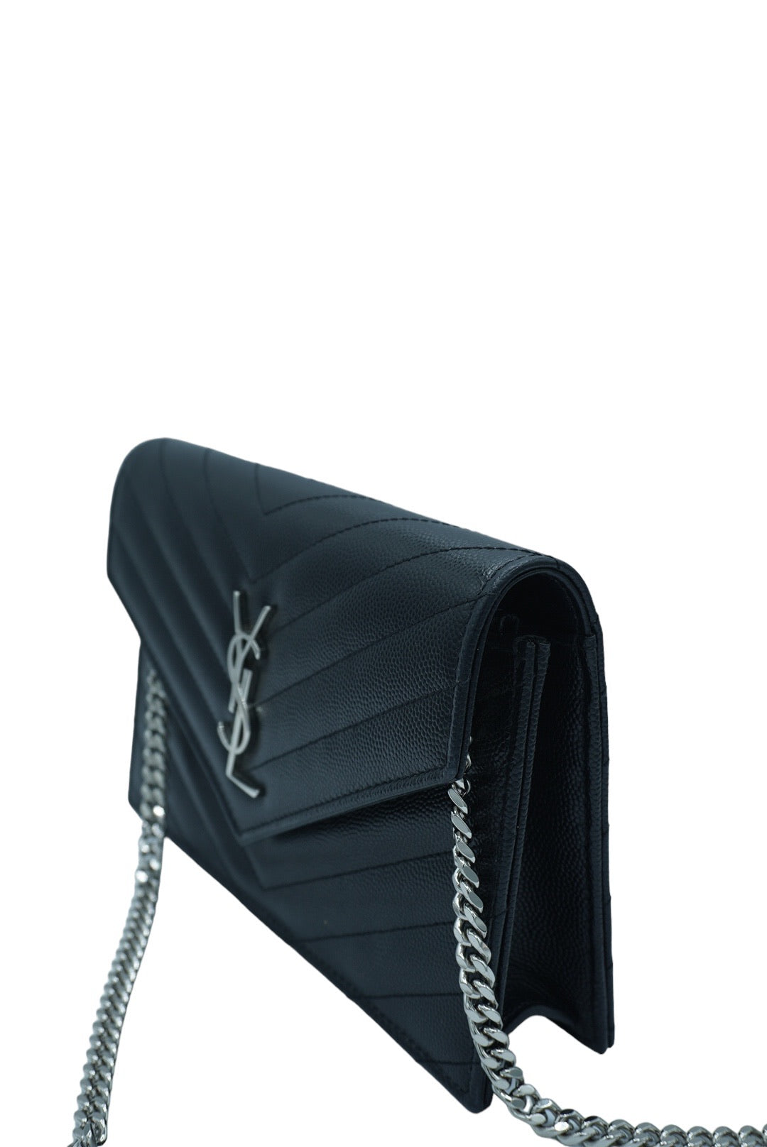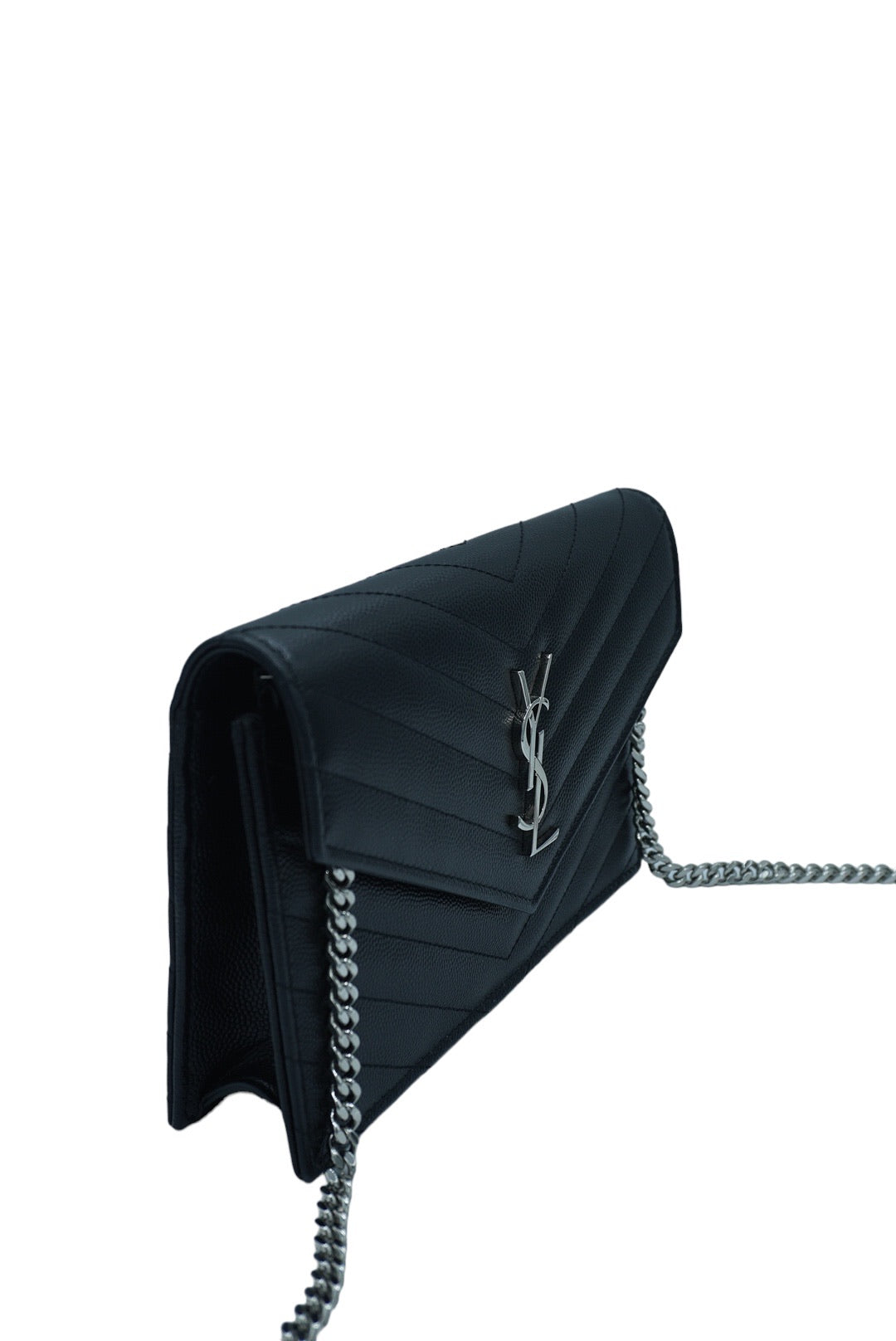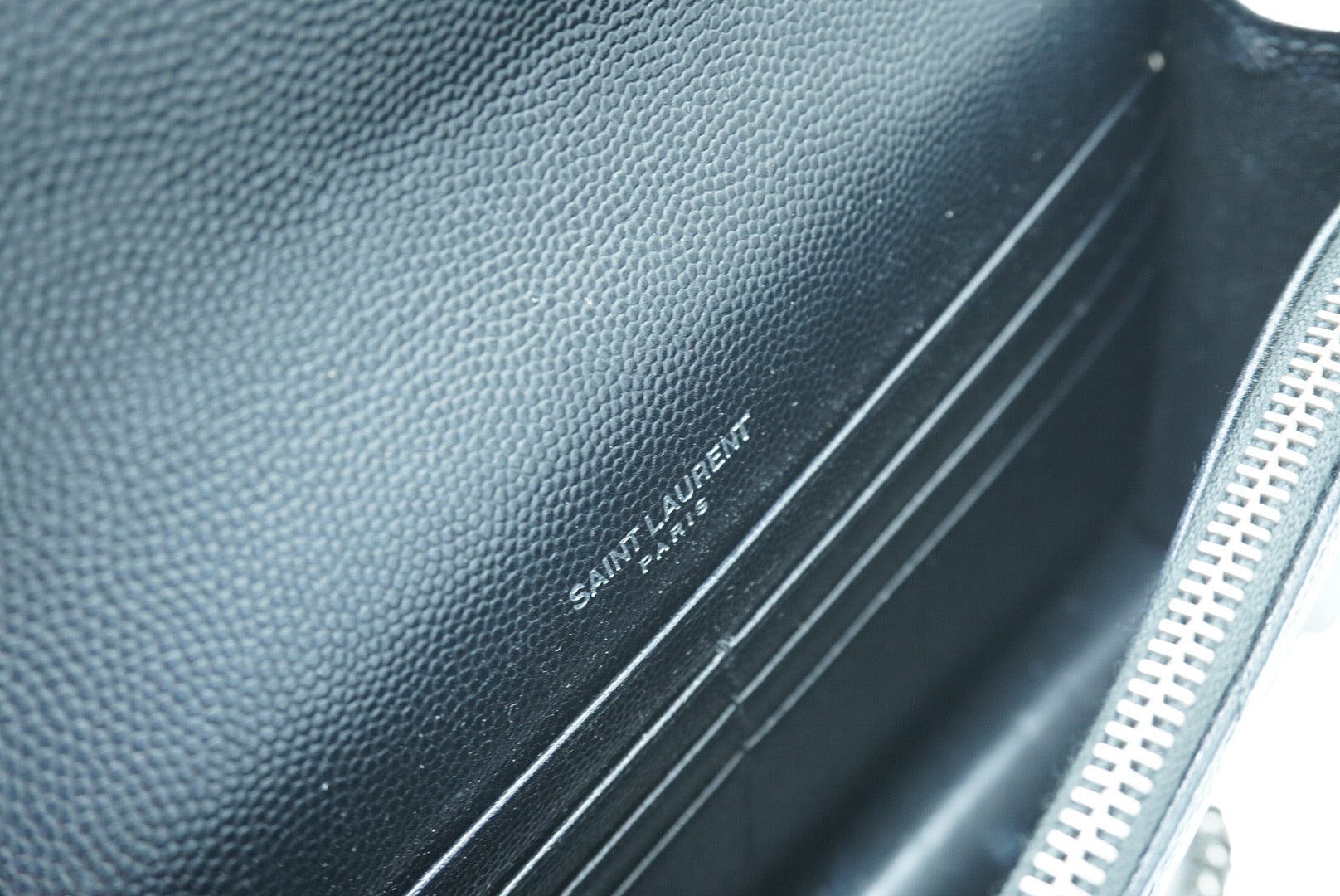 SAINT LAURENT - Grain De Poudre Wallet Black Matelasse Crossbody Bag