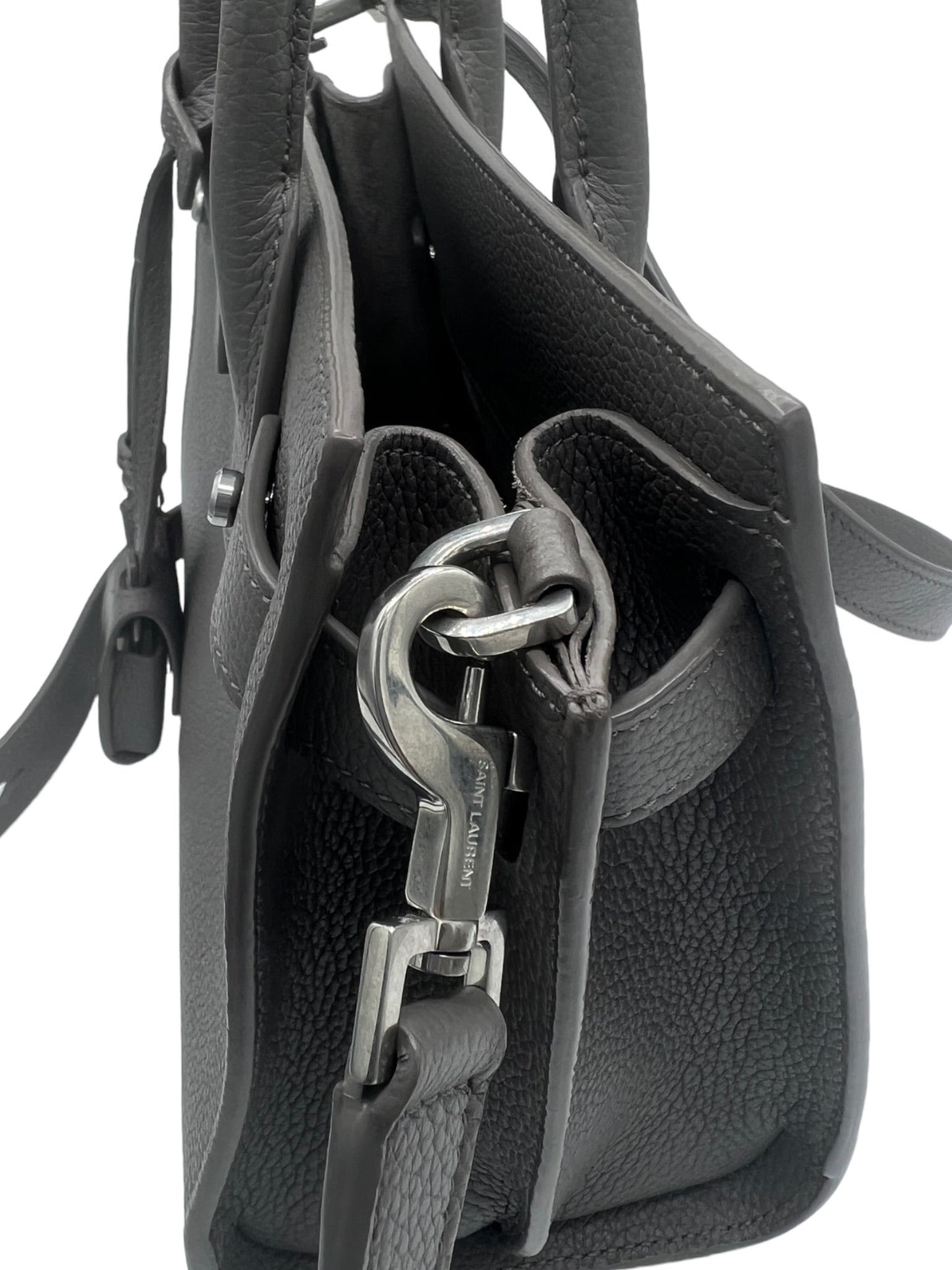This Pre-Owned SAINT LAURENT Grey Nano Sac de Jour Souple Handbag is a stylish and sophisticated top handle bag that is perfect for any occasion.