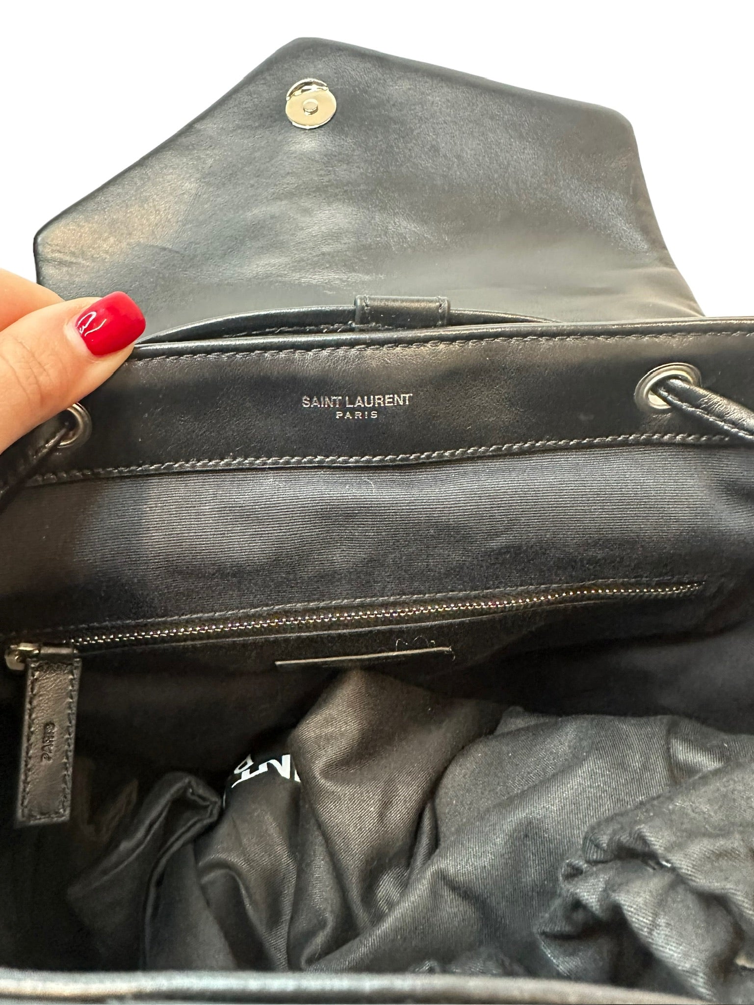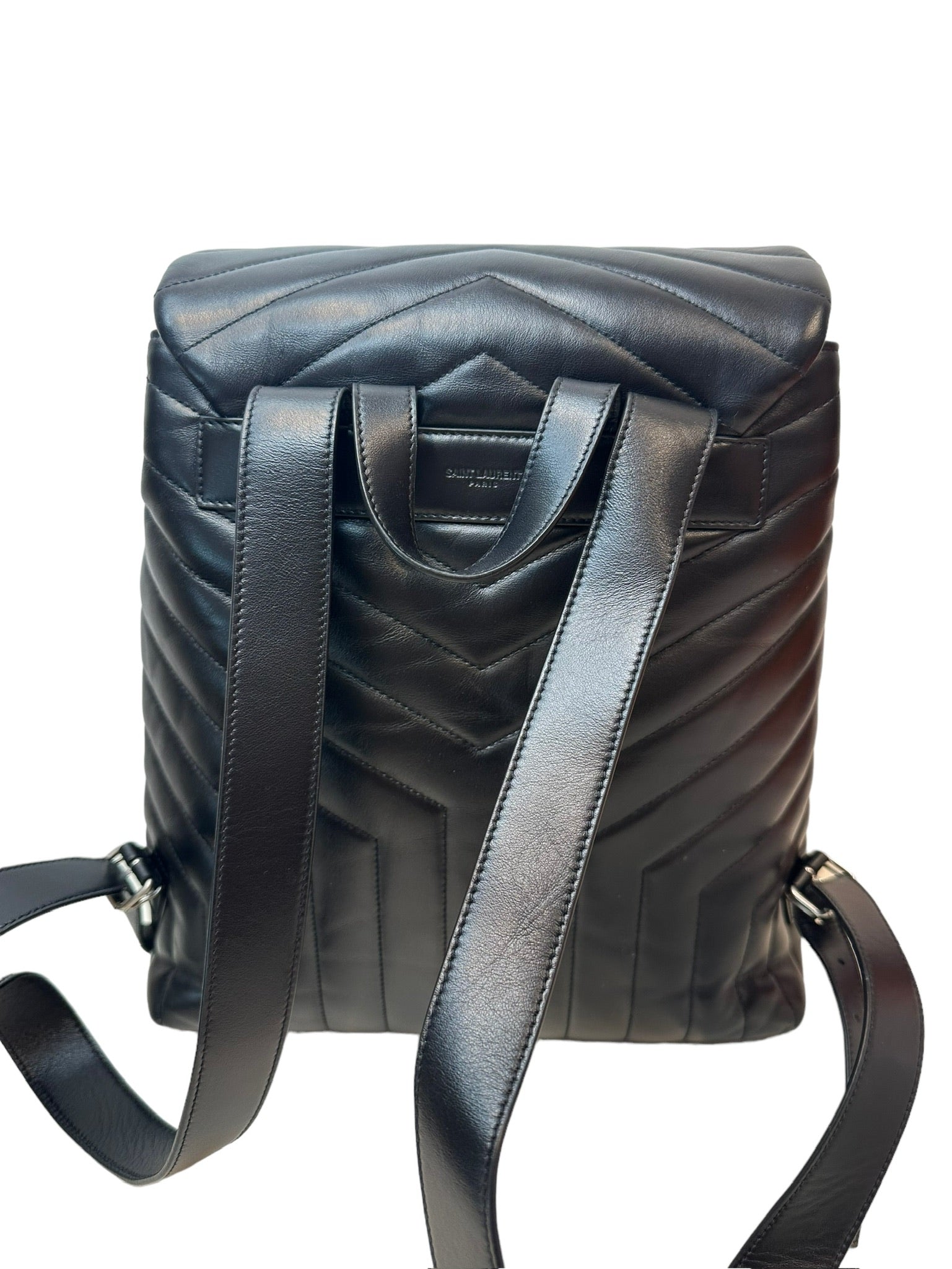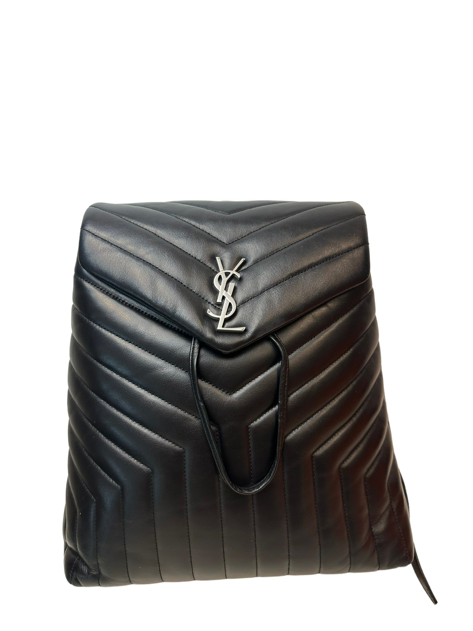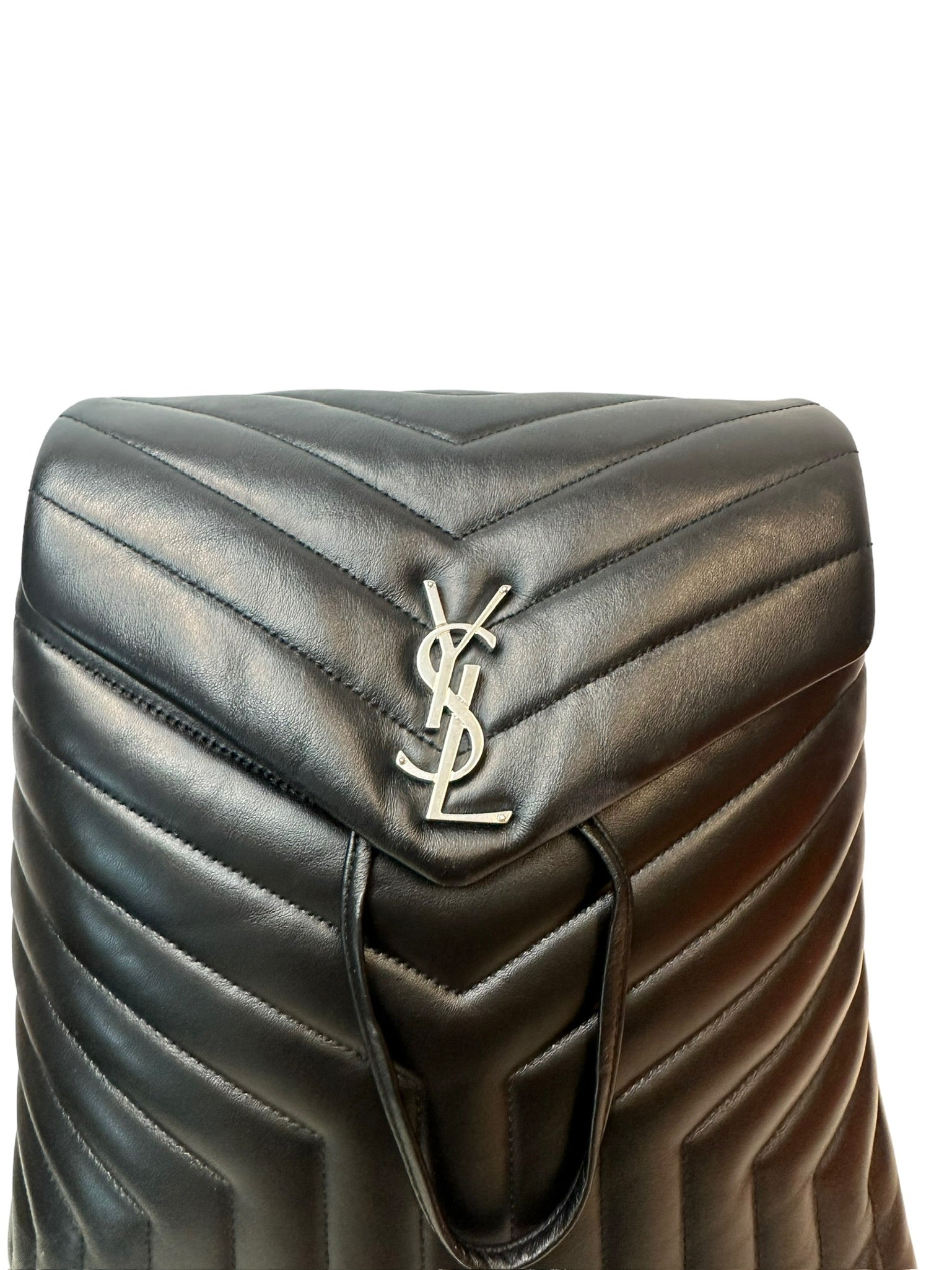Experience luxury and convenience with the SAINT LAURENT Medium Supple Monogram LouLou Backpack. Perfect for any occasion, this backpack features sleek silver hardware that adds a touch of elegance. Carry your essentials in style and make a statement with this must-have accessory.