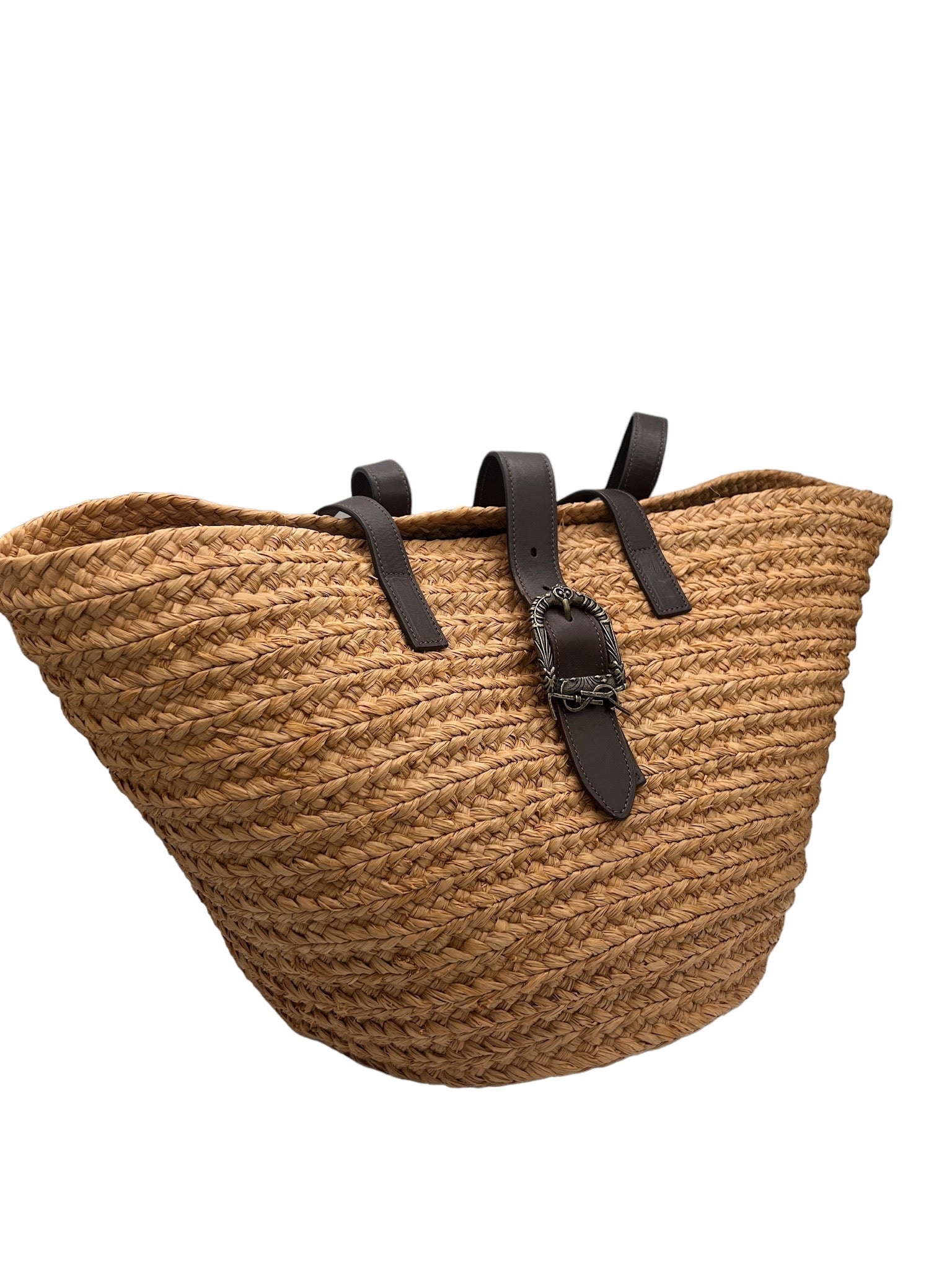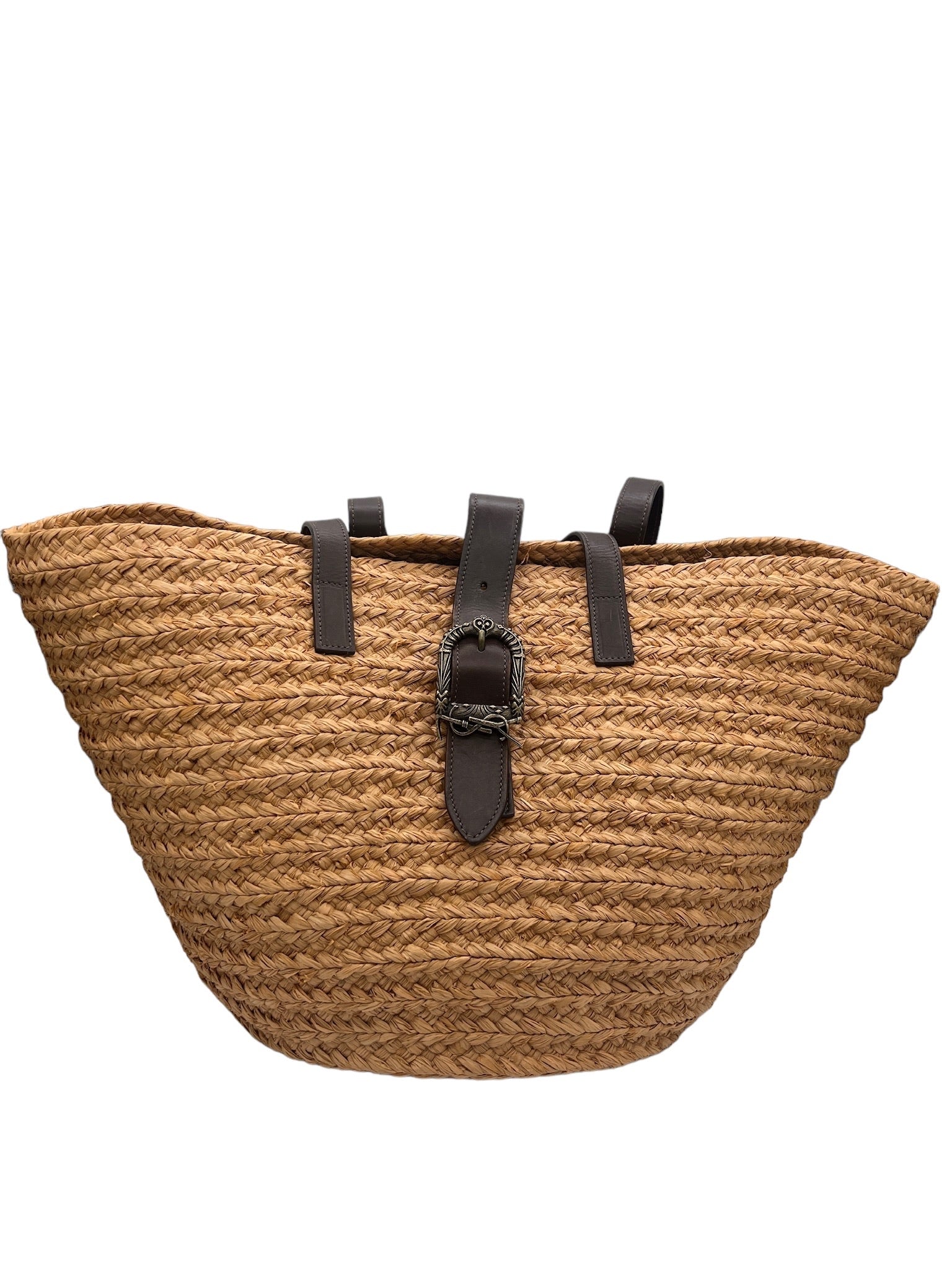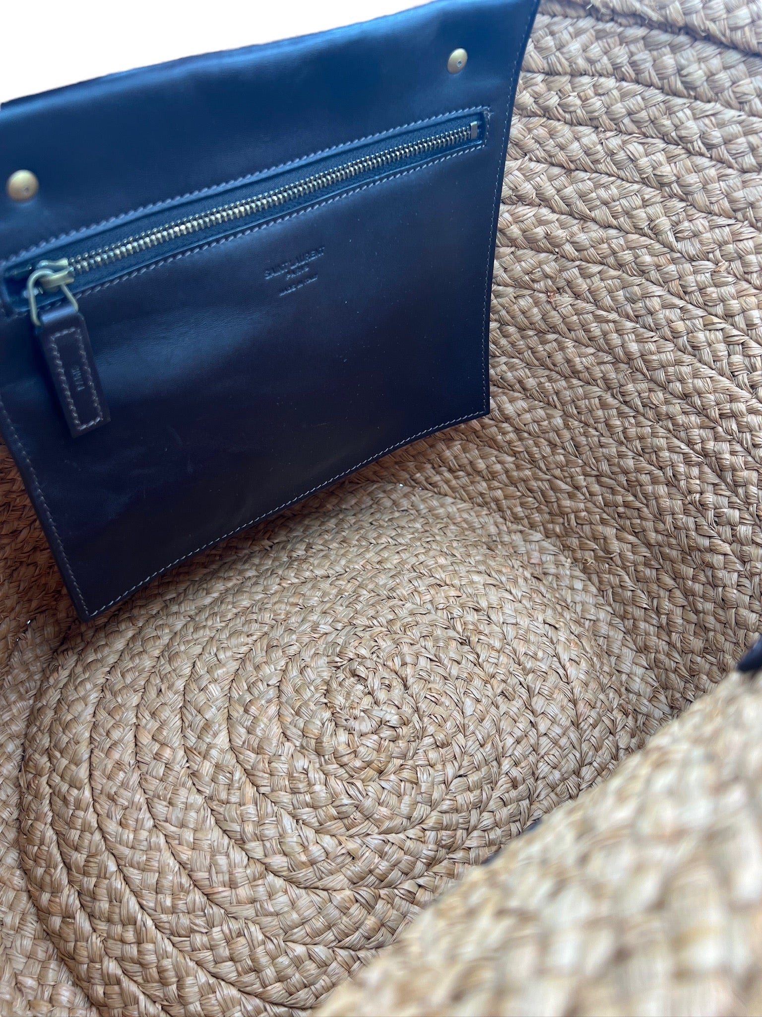This Pre-Owned SAINT LAURENT Panier Basket Raffia Tote is the perfect addition to your summer wardrobe.