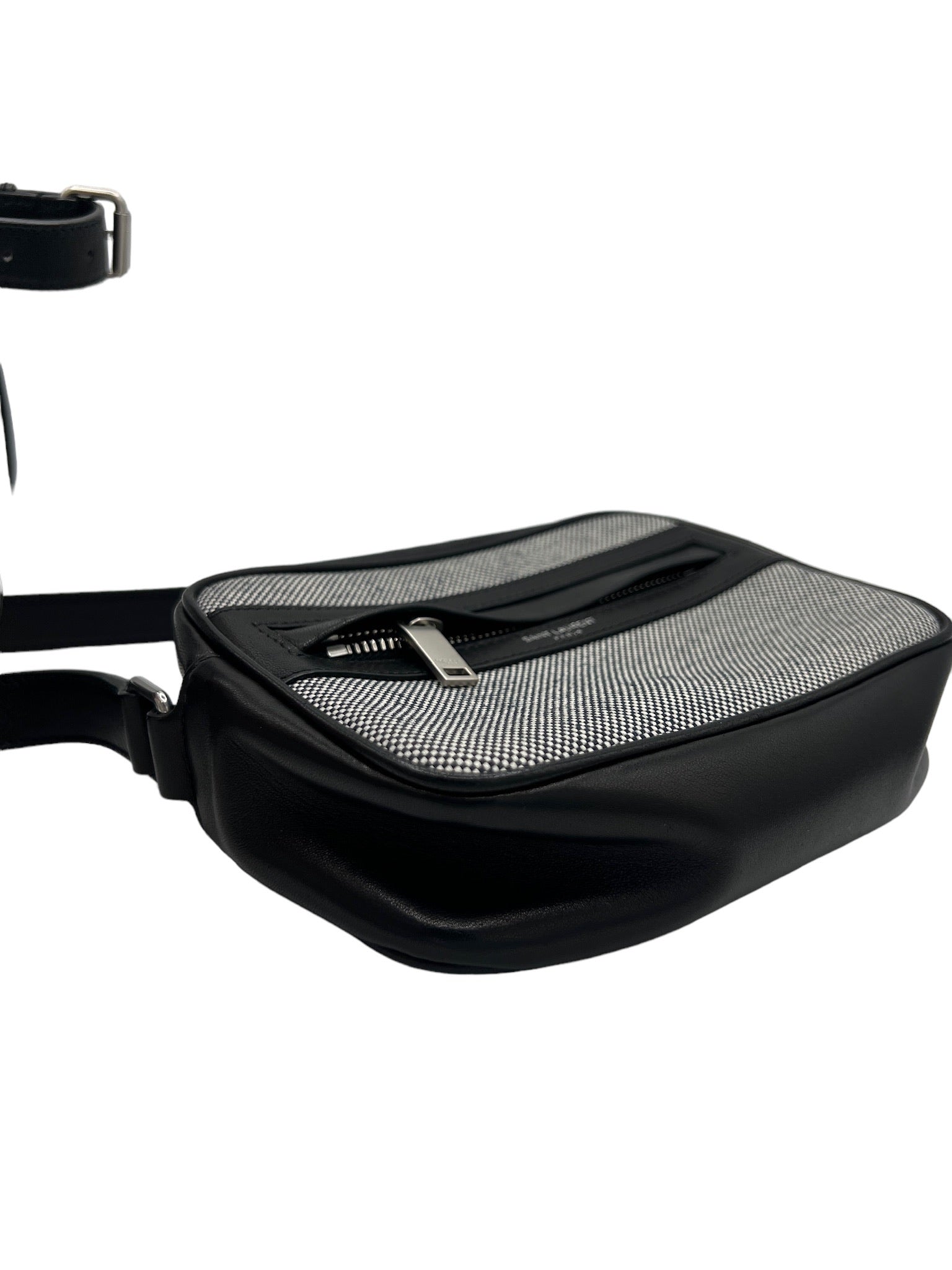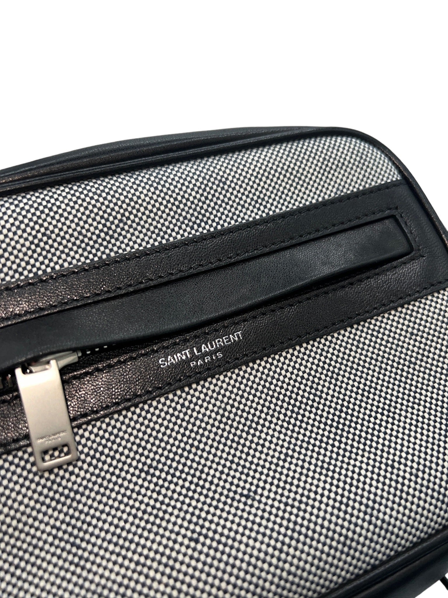 SAINT LAURENT - PARIS Camping Black Cream Canvas Leather Small Camera Bag