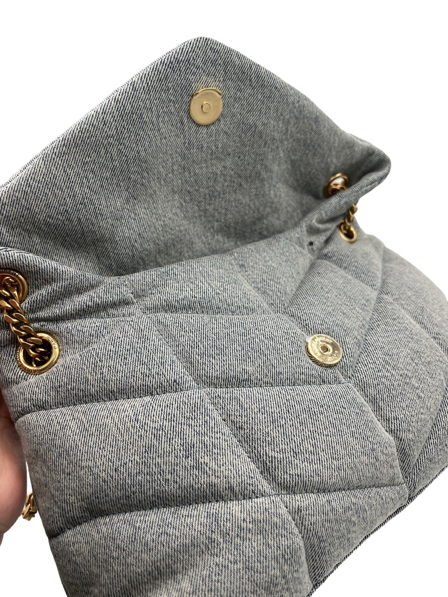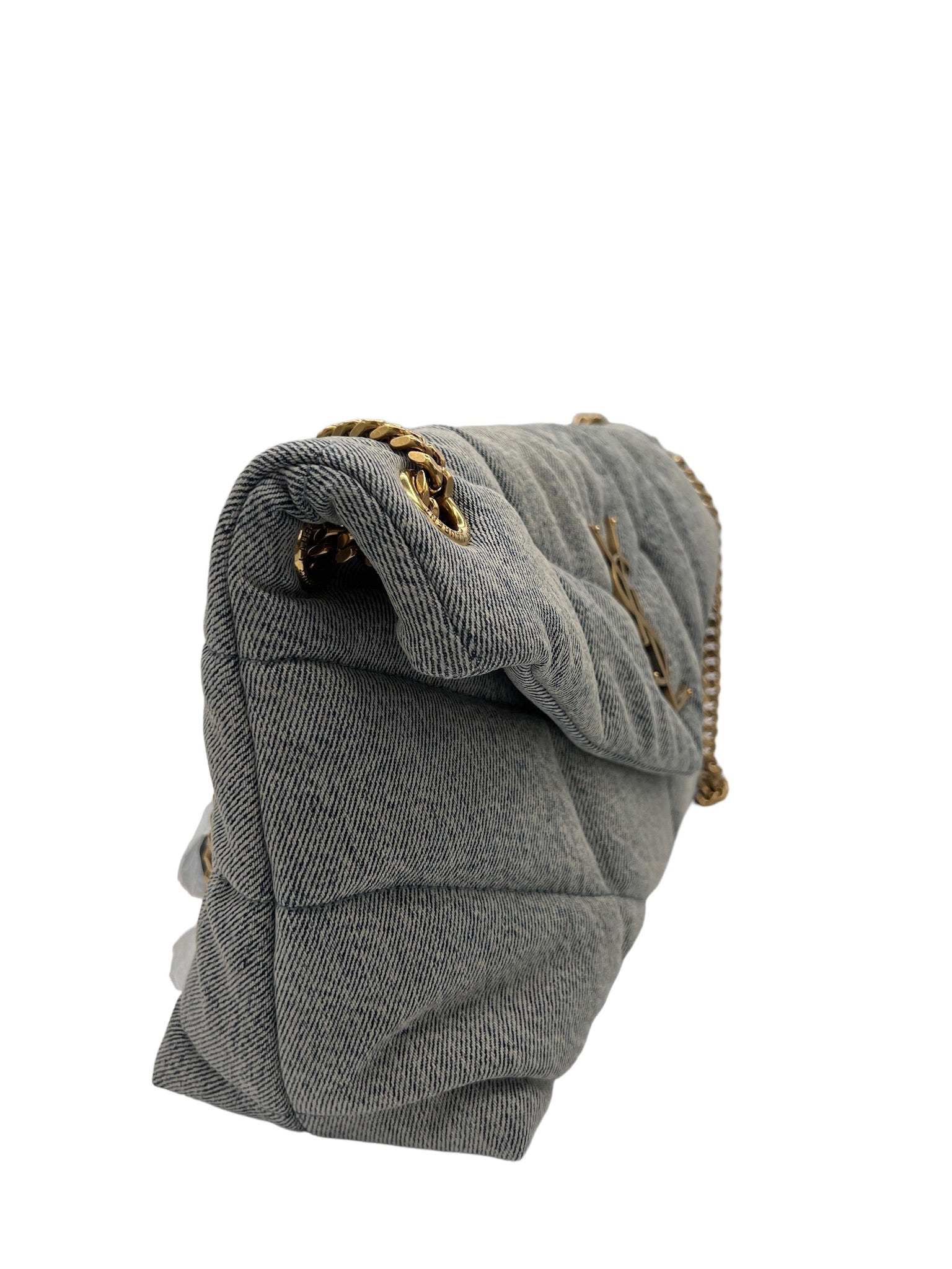 SAINT LAURENT - Small Puffer Monogramme Denim Chain Bag
