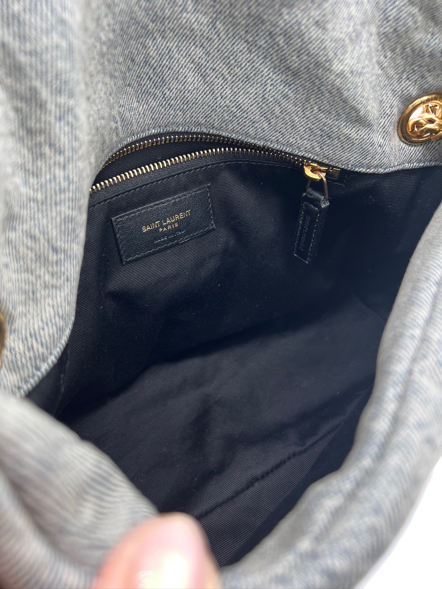 Made in Italy, the quilted denim with grosgrain lining and bronze-tone hardware further adds to its durability and charm. The interlaced YSL hardware at the front makes it stand out from other bags in its category.