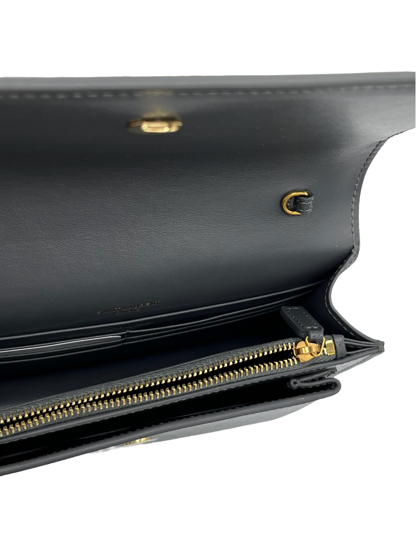 SAINT LAURENT - Sunset Chain Wallet in Coated Bark Leather