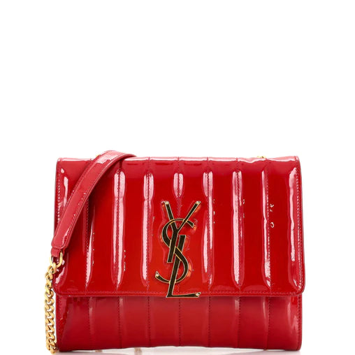 SAINT LAURENT - Vicky Wallet on Chain Vertical Quilted Patent
