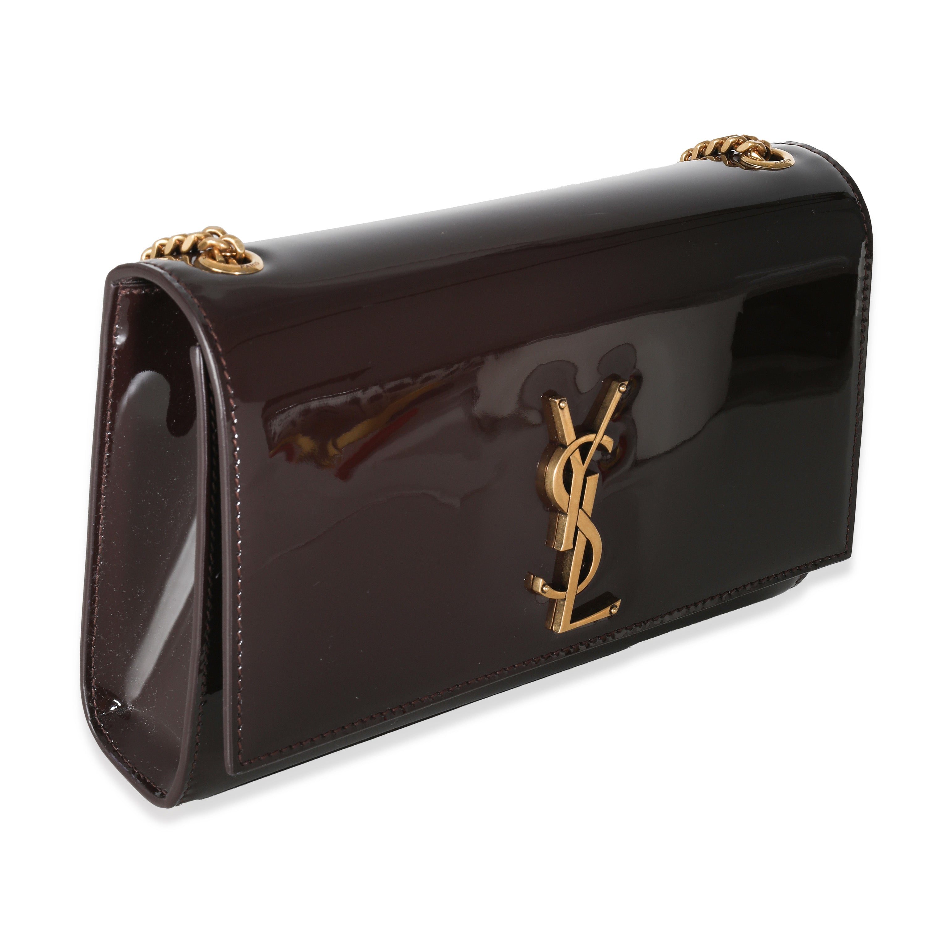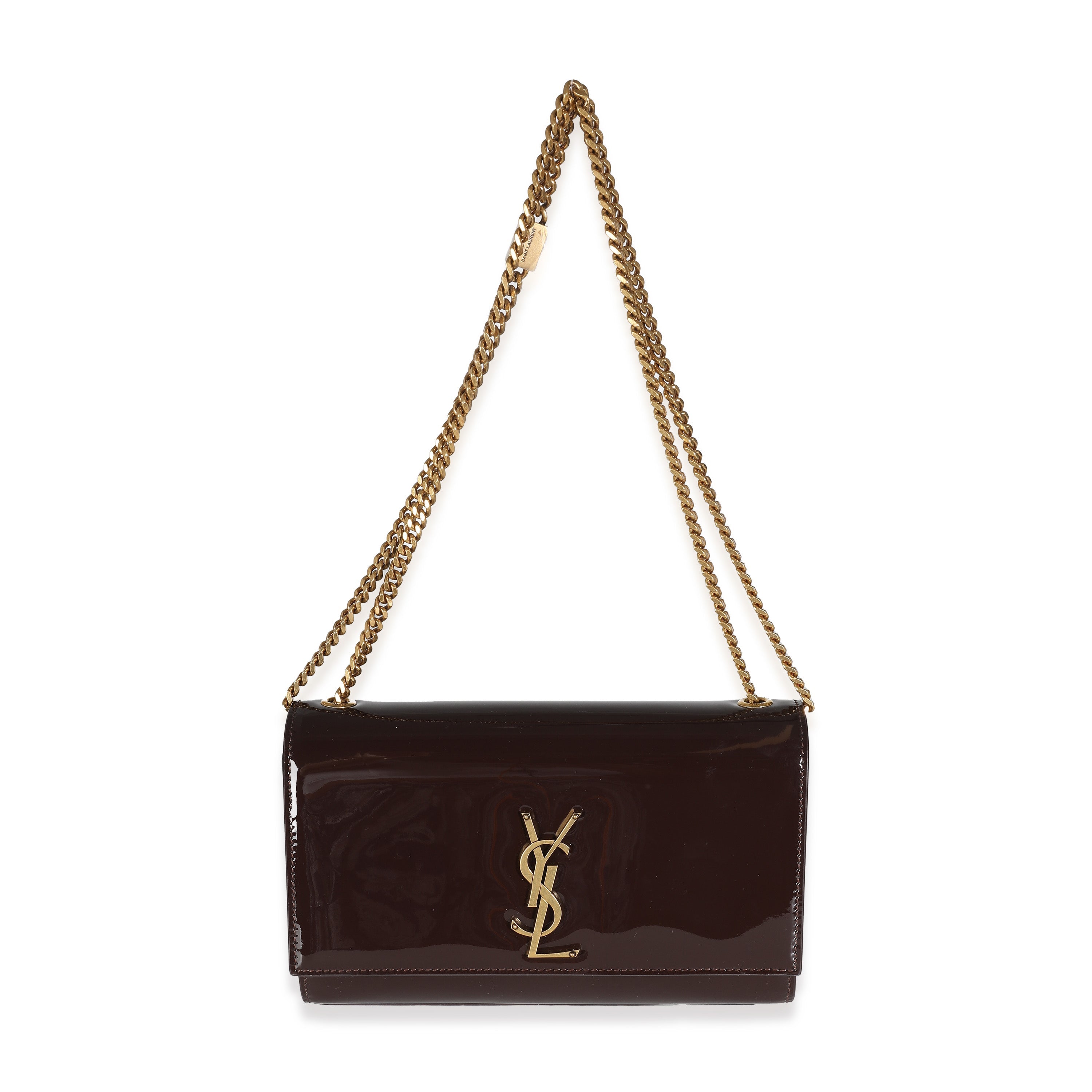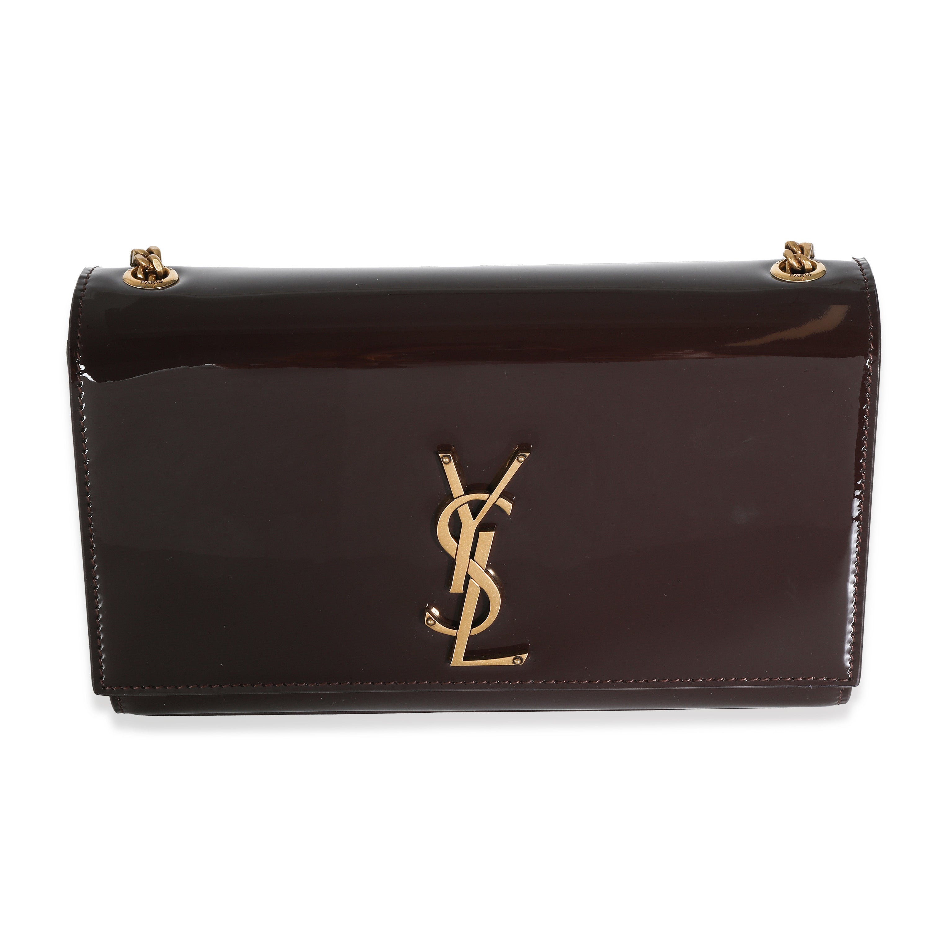SAINT LAURENT - Spicy Chocolate Patent Medium Kate Chain Bag Crossbody Bag