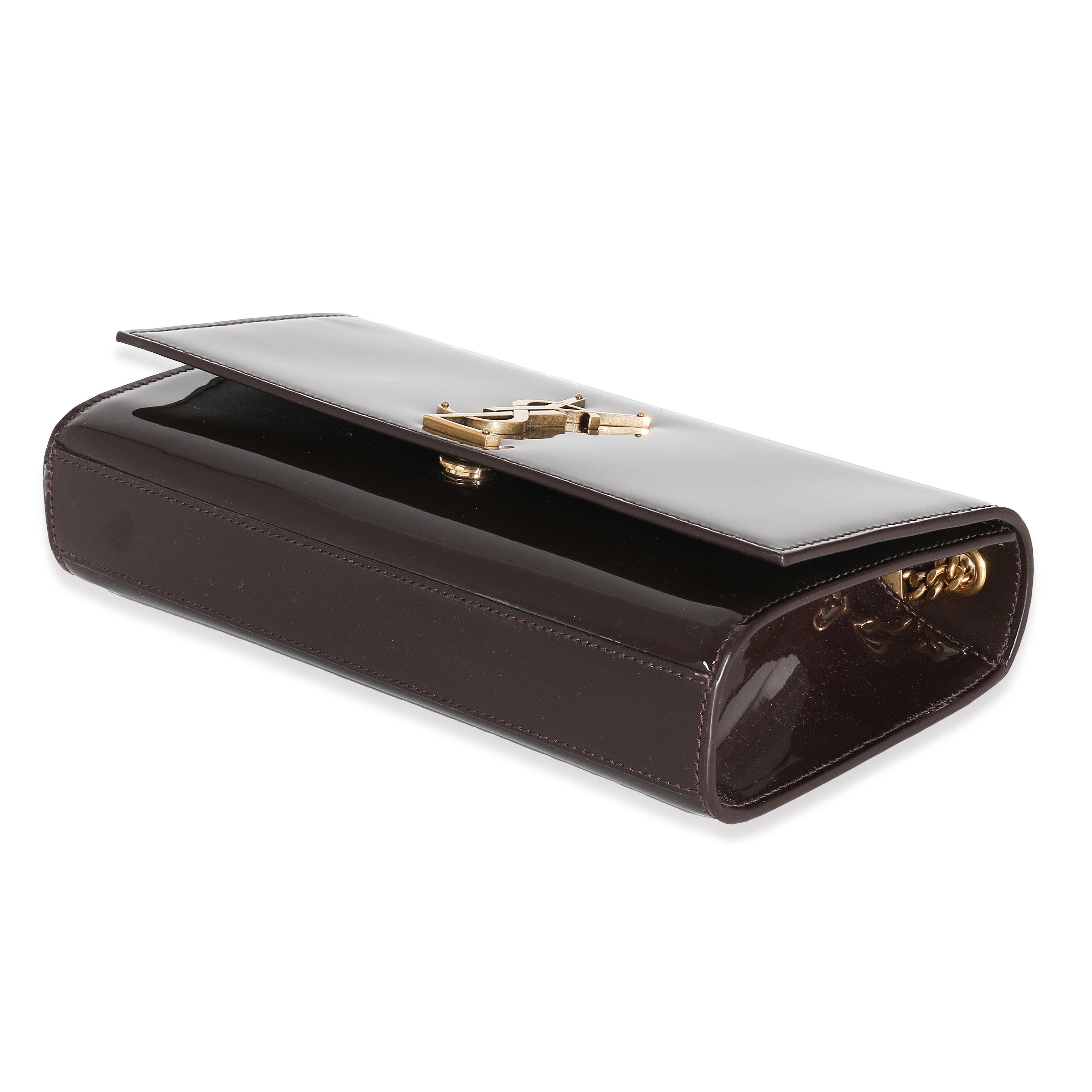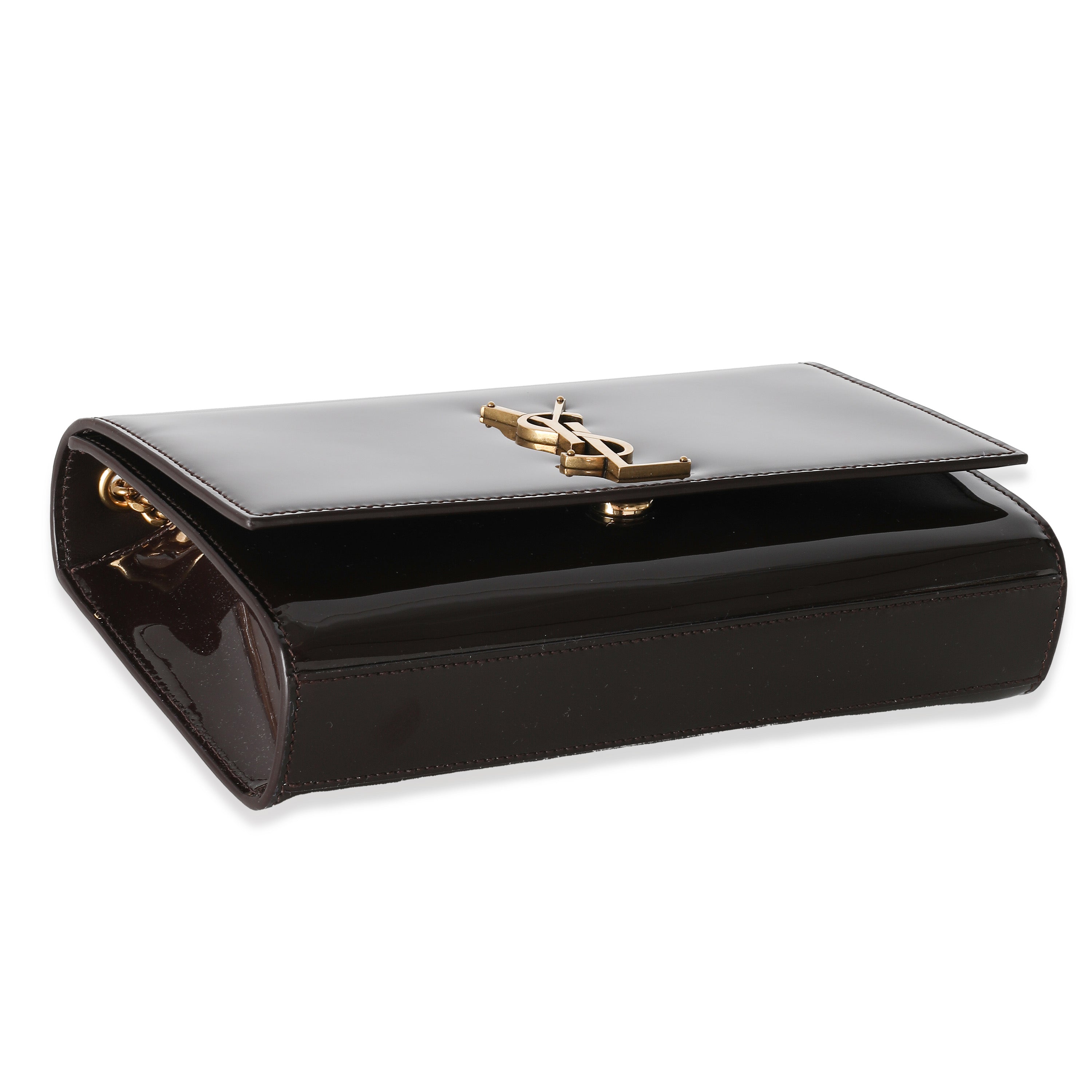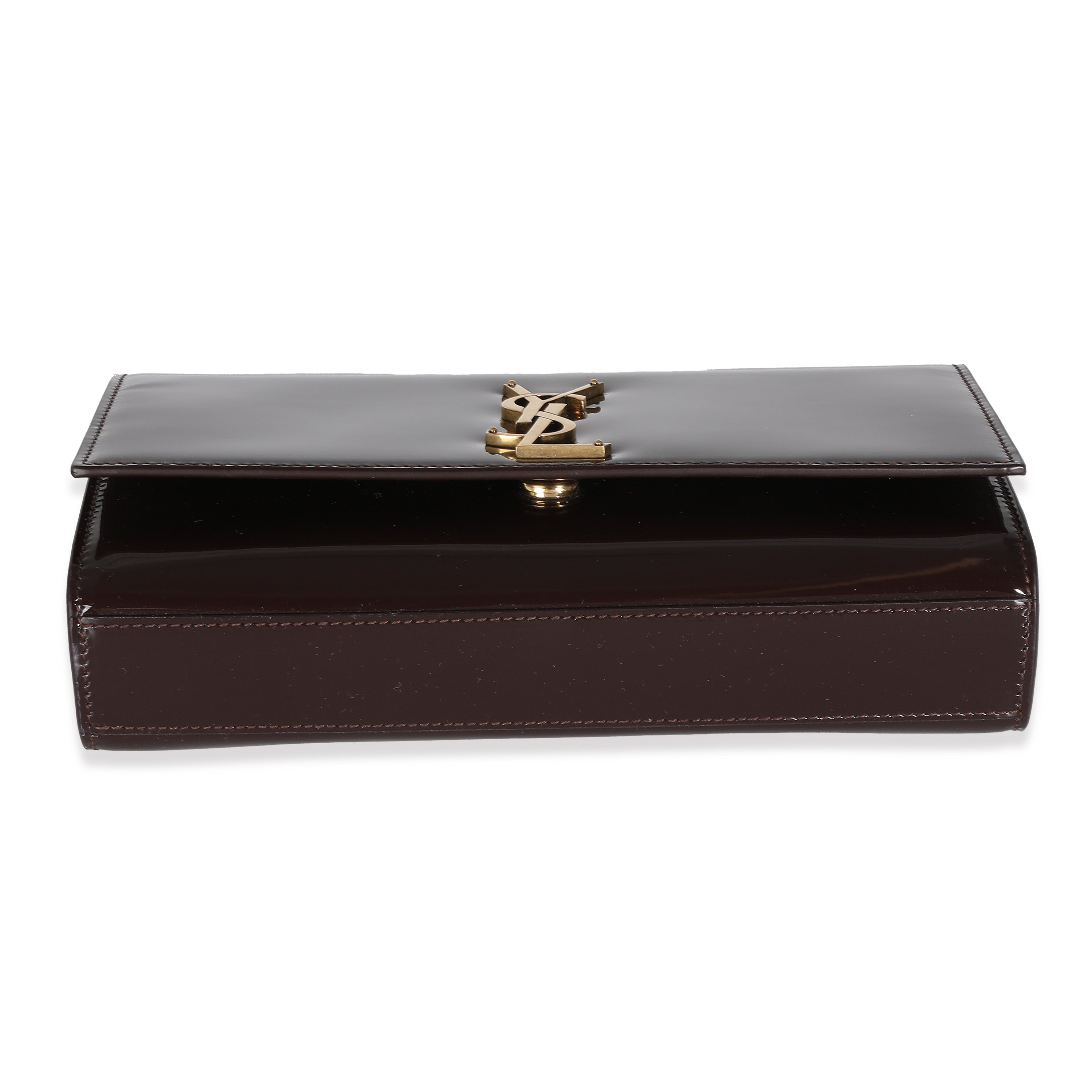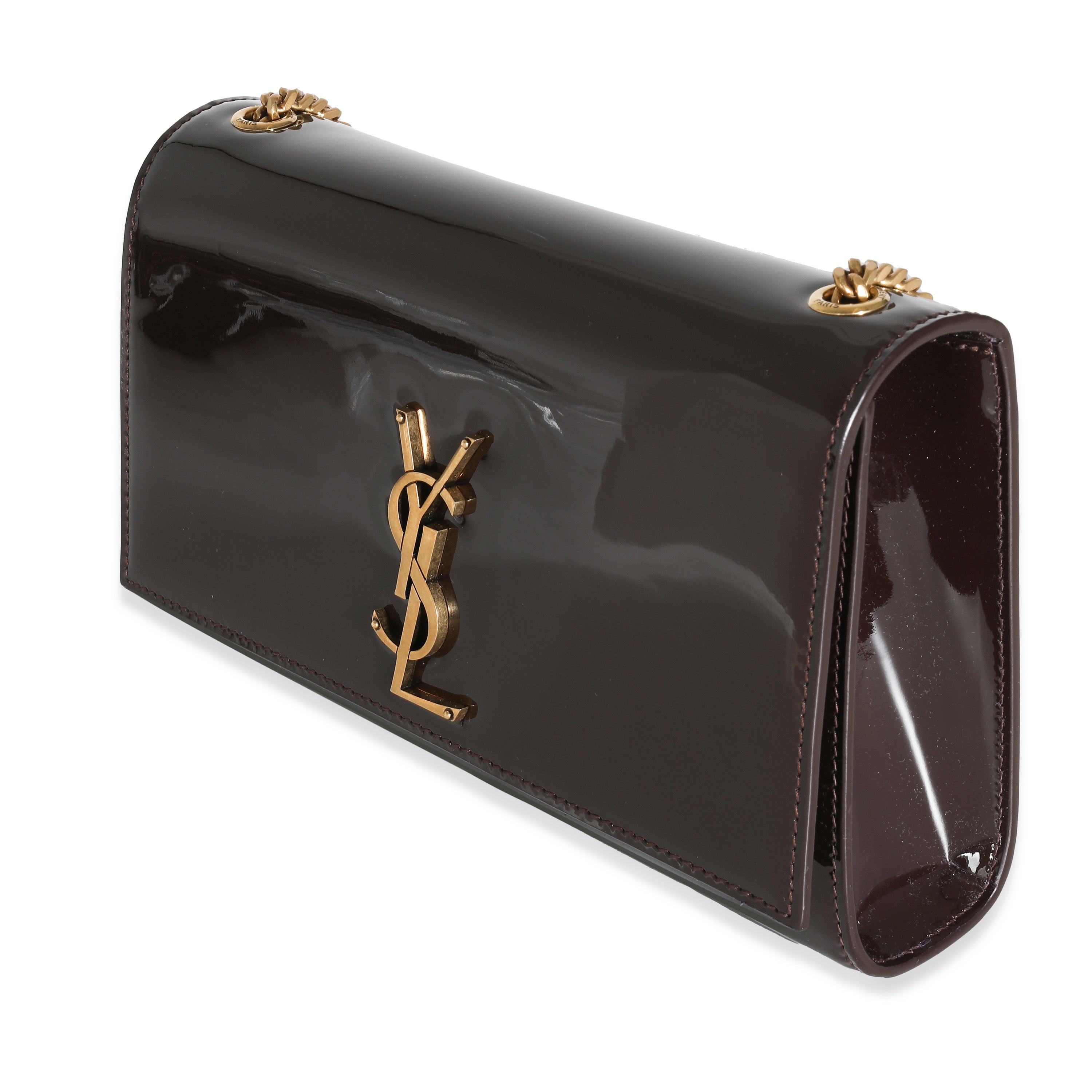 SAINT LAURENT - Spicy Chocolate Patent Medium Kate Chain Bag Crossbody Bag