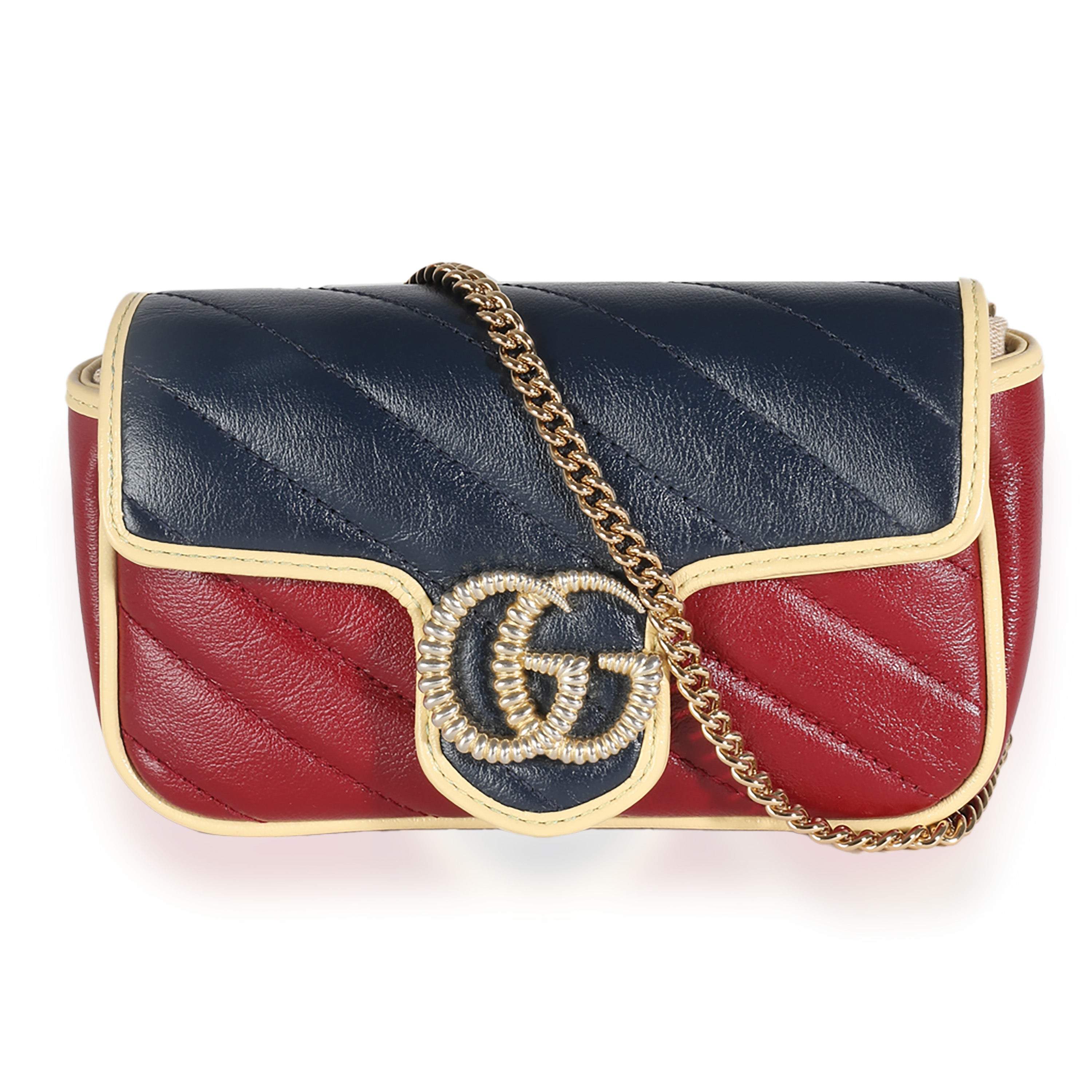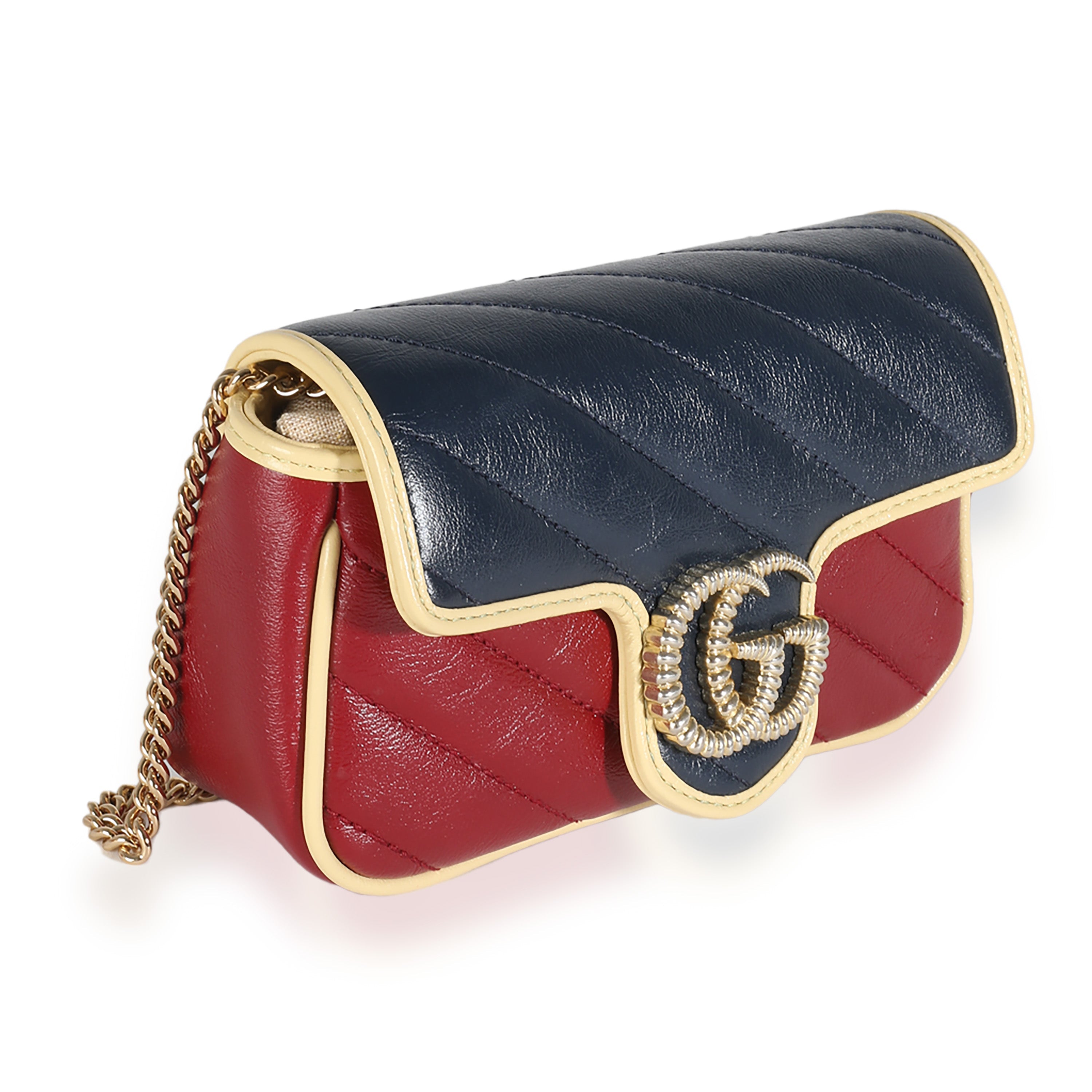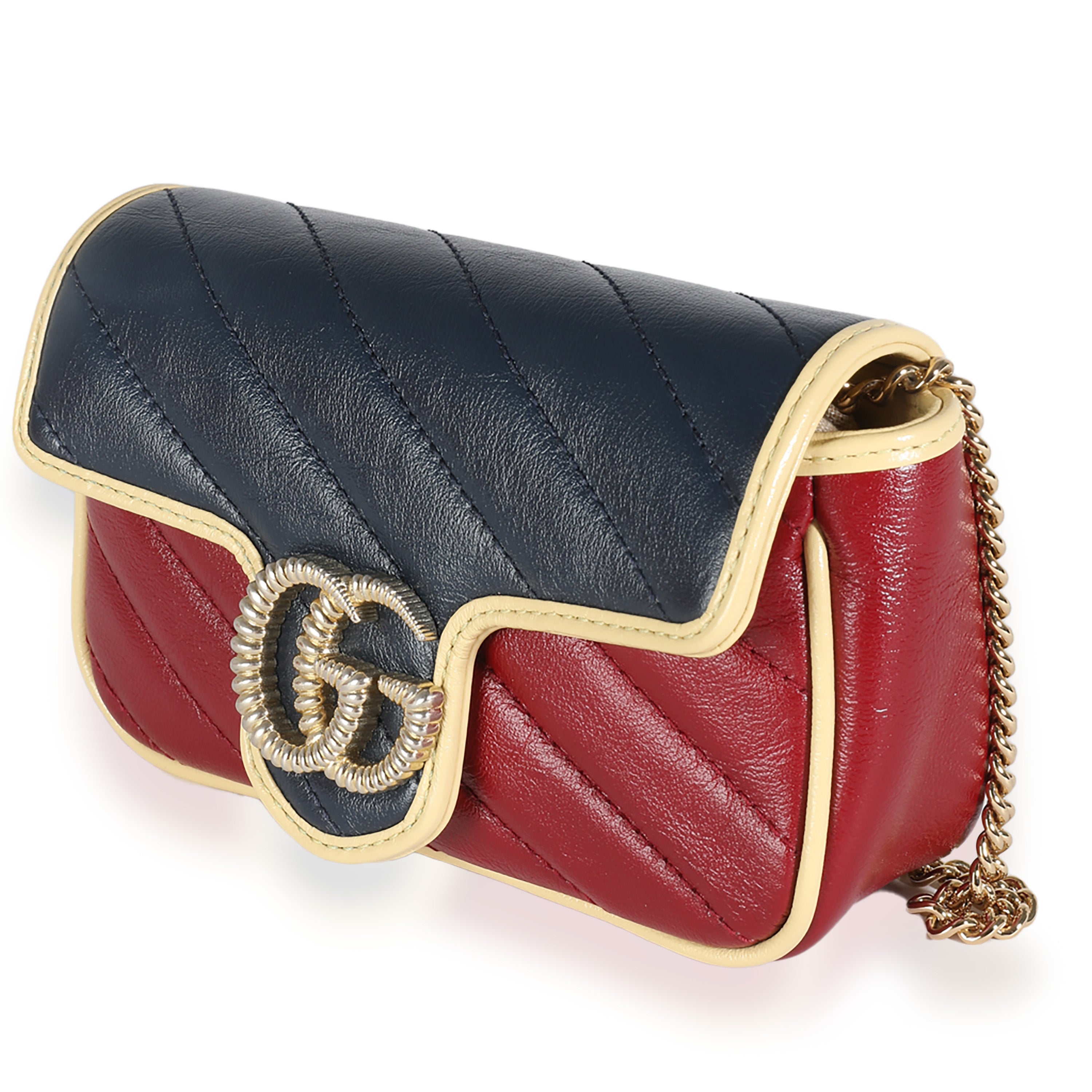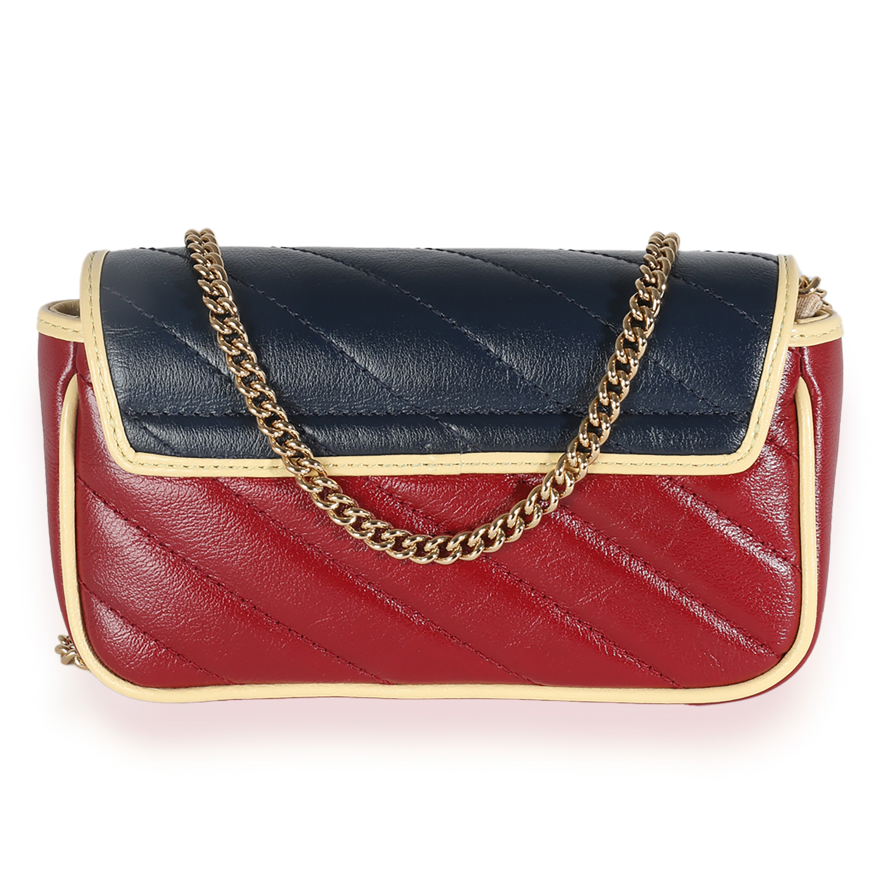 GUCCI - Tricolour Azalea Calfskin Diagonal Super Mini Torchon GG Marmont