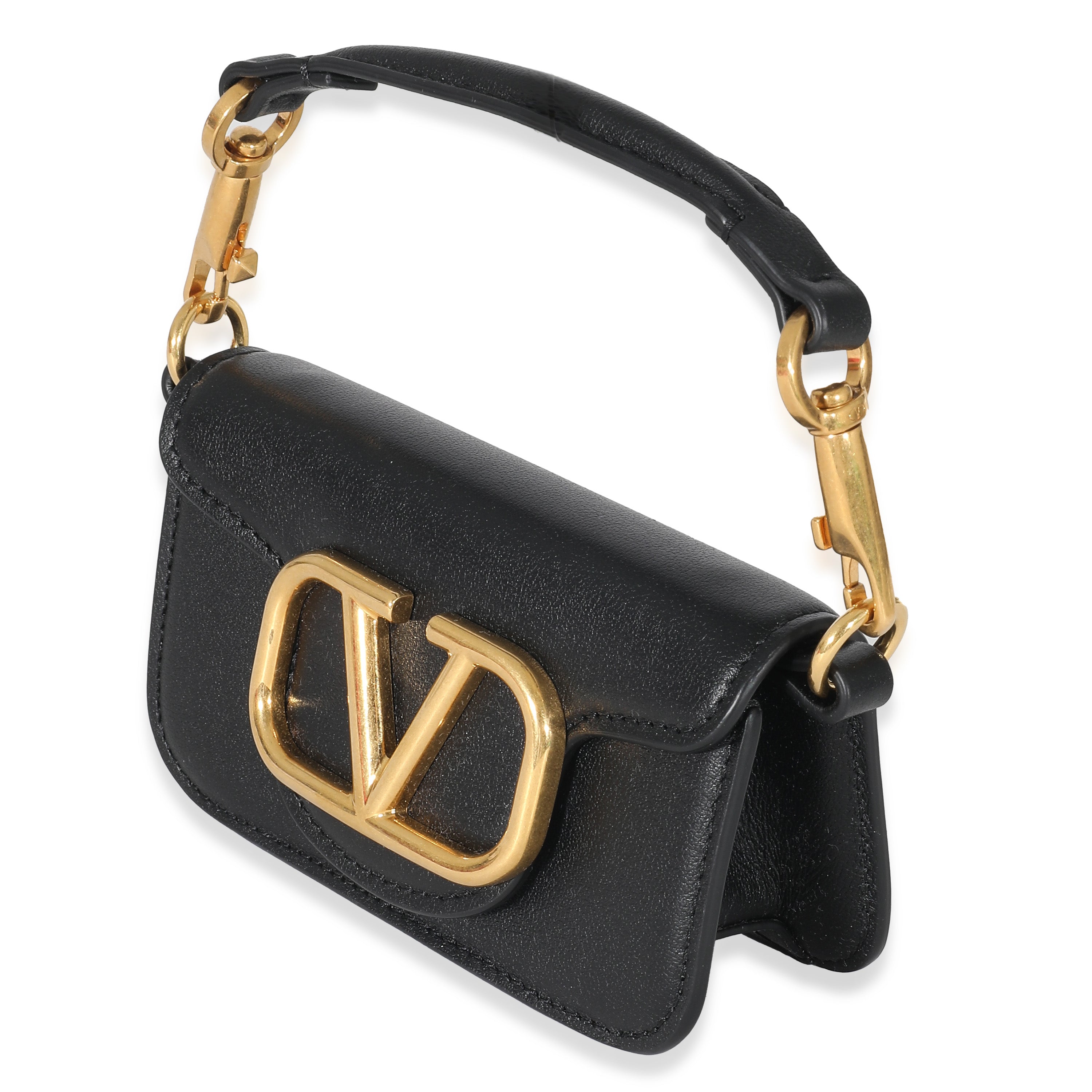 VALENTINO - Black Leather Vlogo Mini Locò Bag