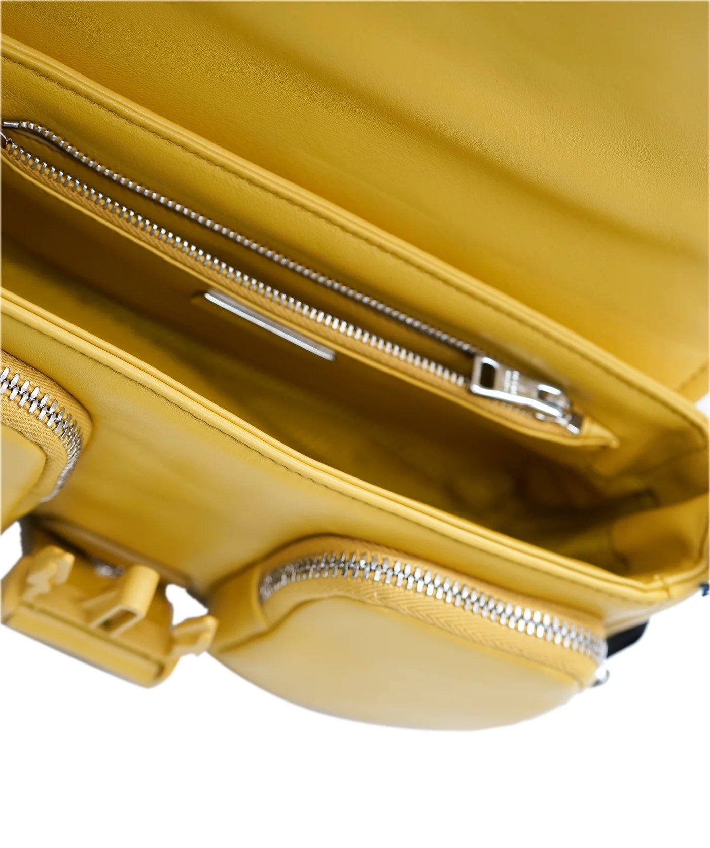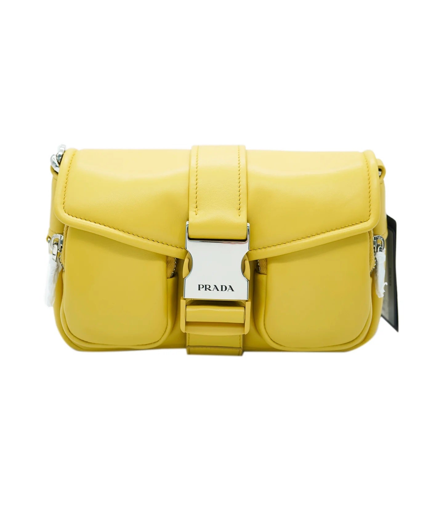 PRADA - Yellow Padded Nappa Pocket Front Buckle Bag